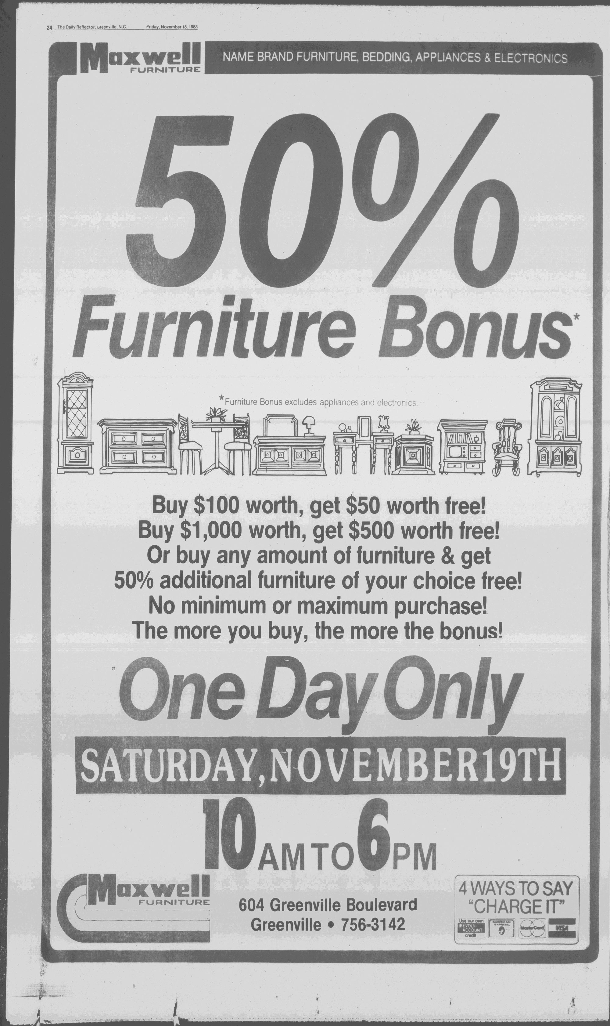 Furniture Bonus excludes appliances and electronics.