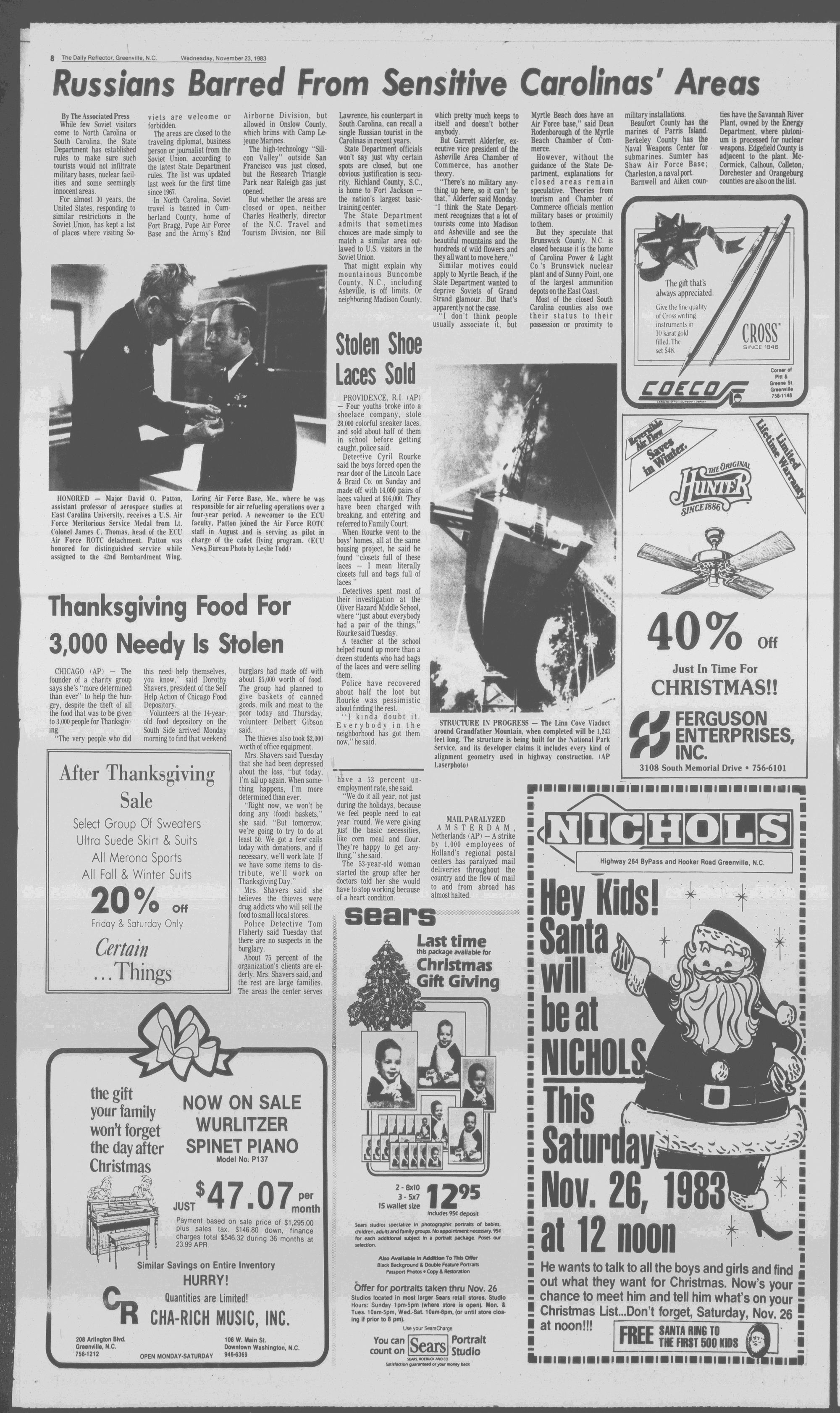 Several areas in the Carolinas are barred to Soviet visitors. Many of them sensitive, others perhaps so attractive they might induce a wave of tourists. (Page 8)