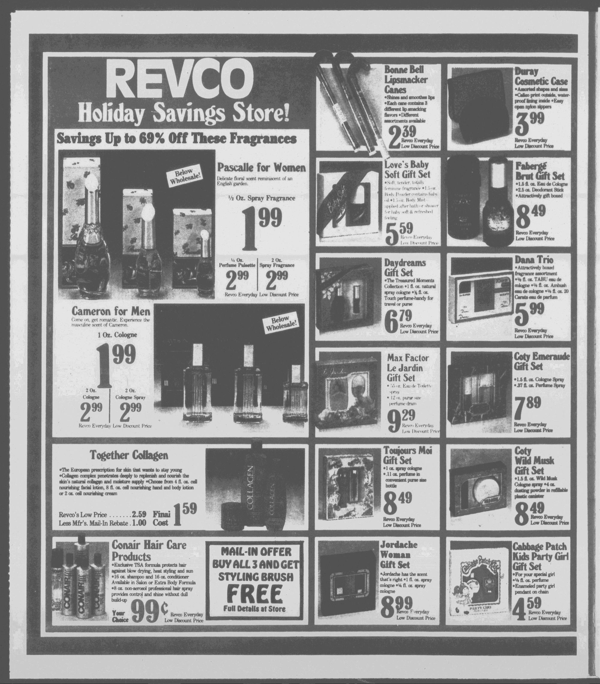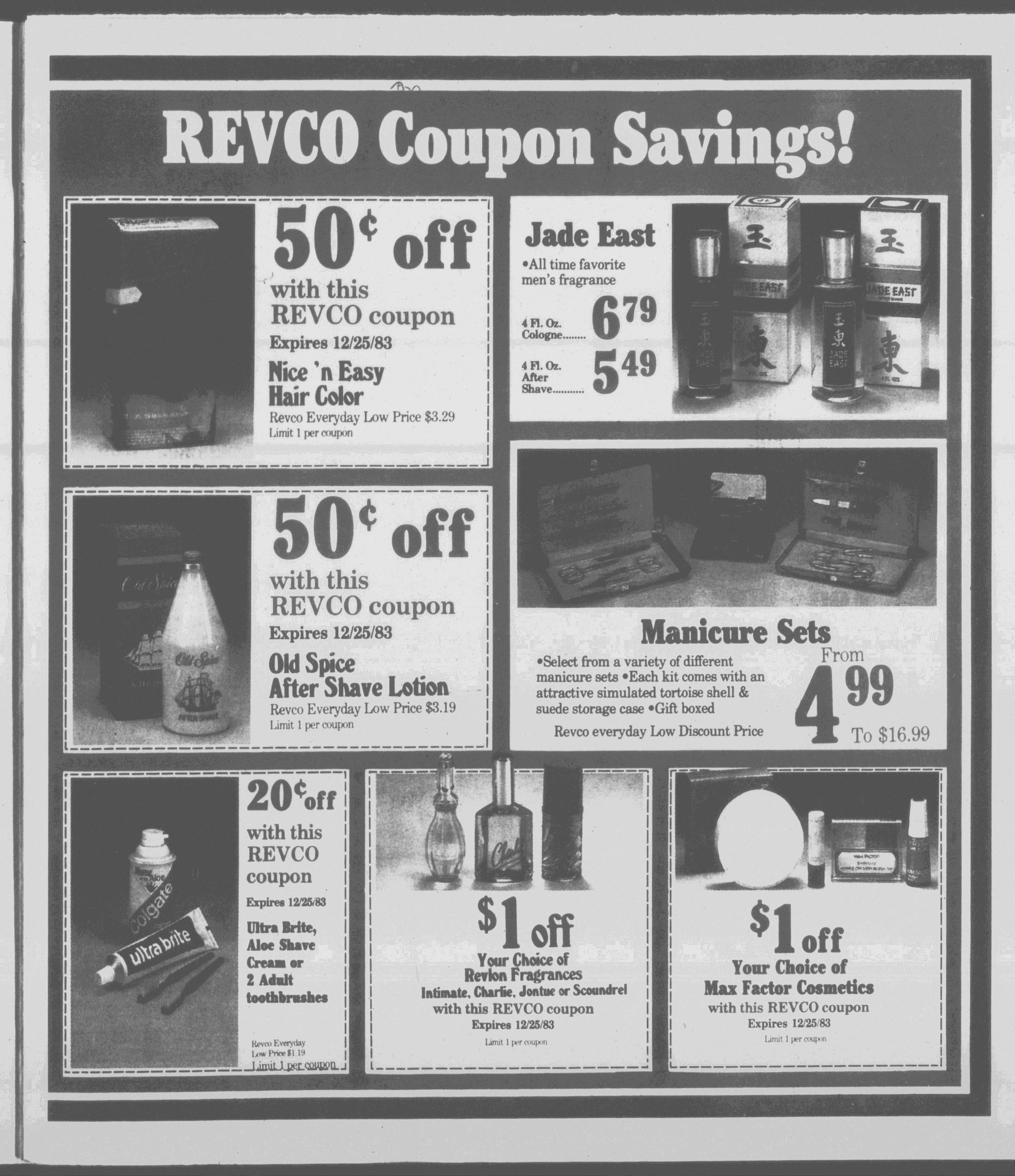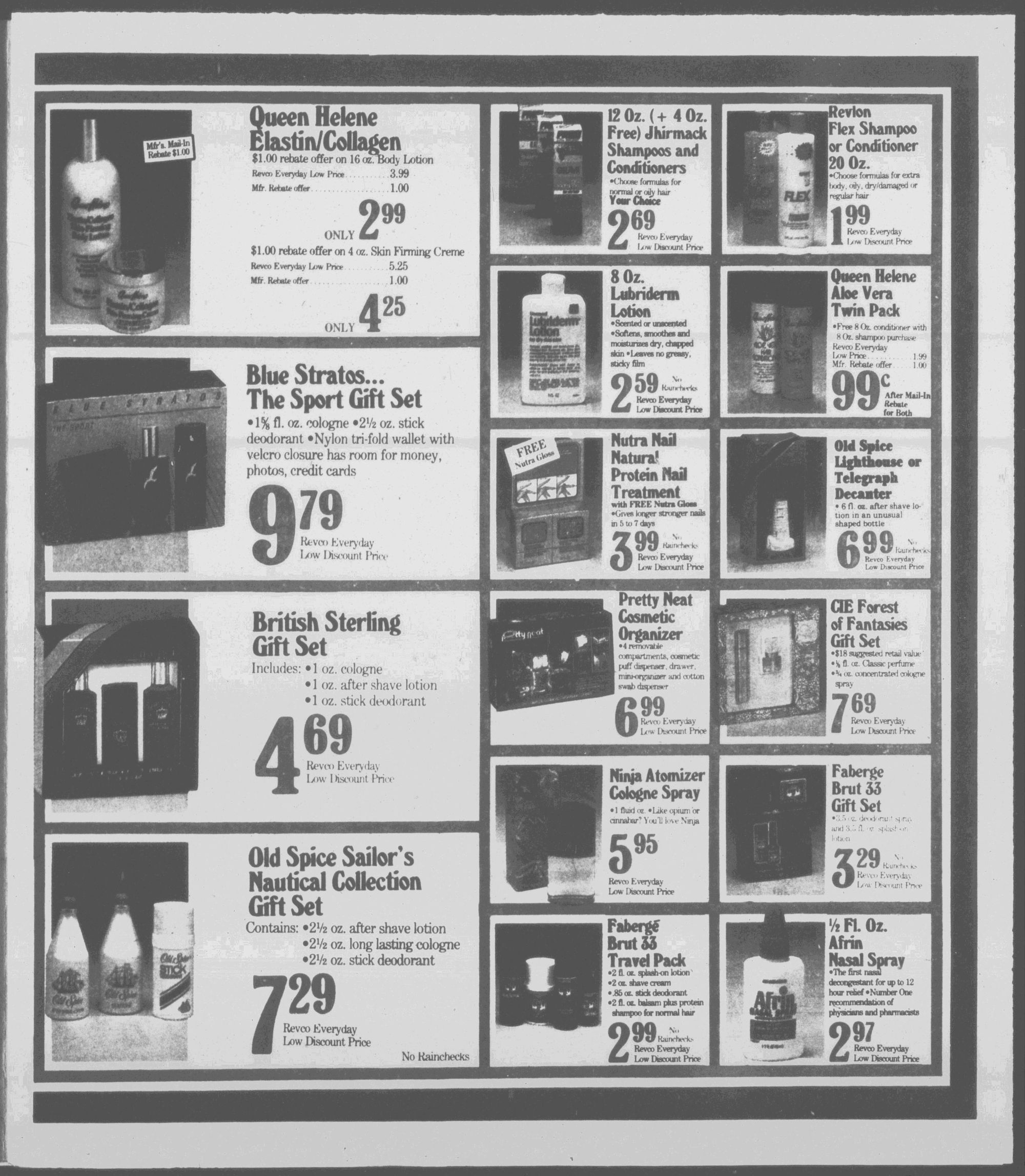 A. After Shave 2 oz.. Cologne 2 oz. Deodorant Stick 2.75 oz. Set Reg. 8.50.................................7.97