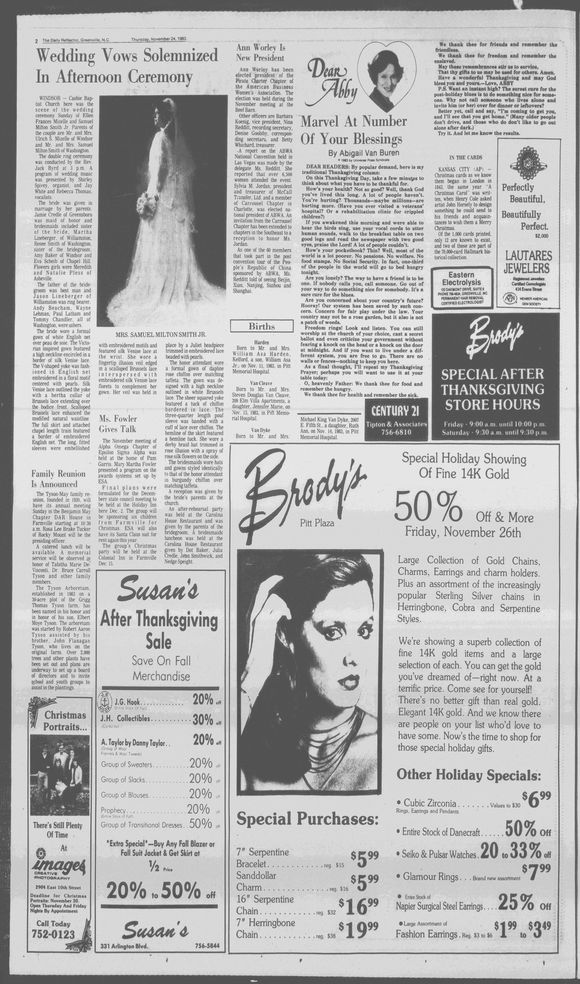 arrangement either. Whats better than sharing freshly baked bread, turkey, mashed potatoes oozing with butter and homemade blackberry pie with your best friends? (Reflector Photo by Sue Hinson)
