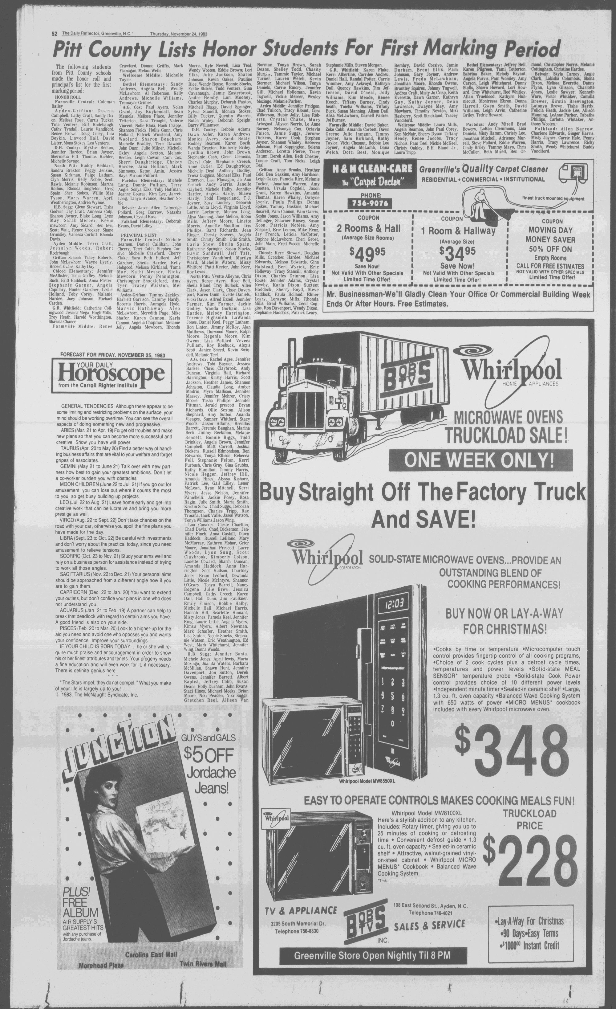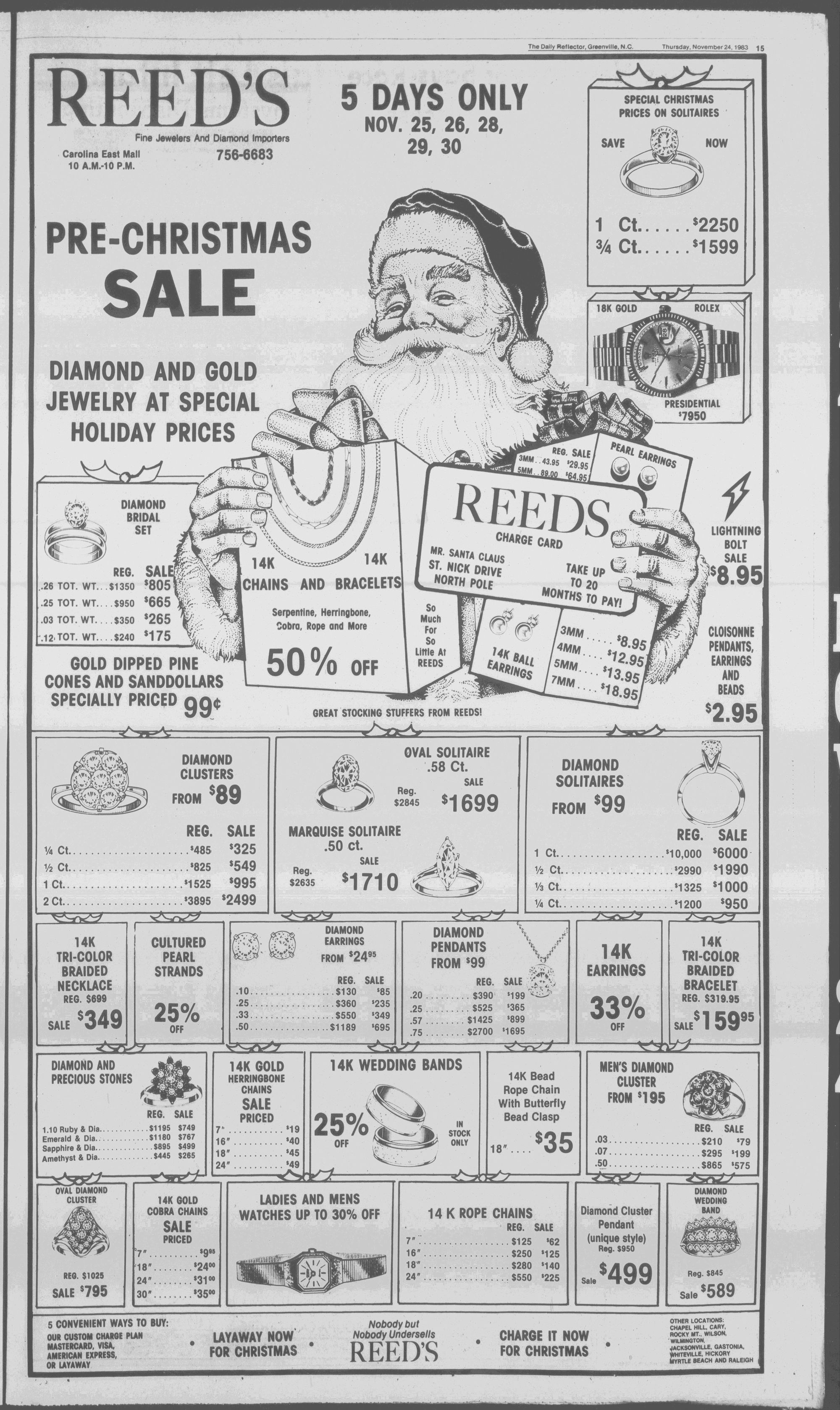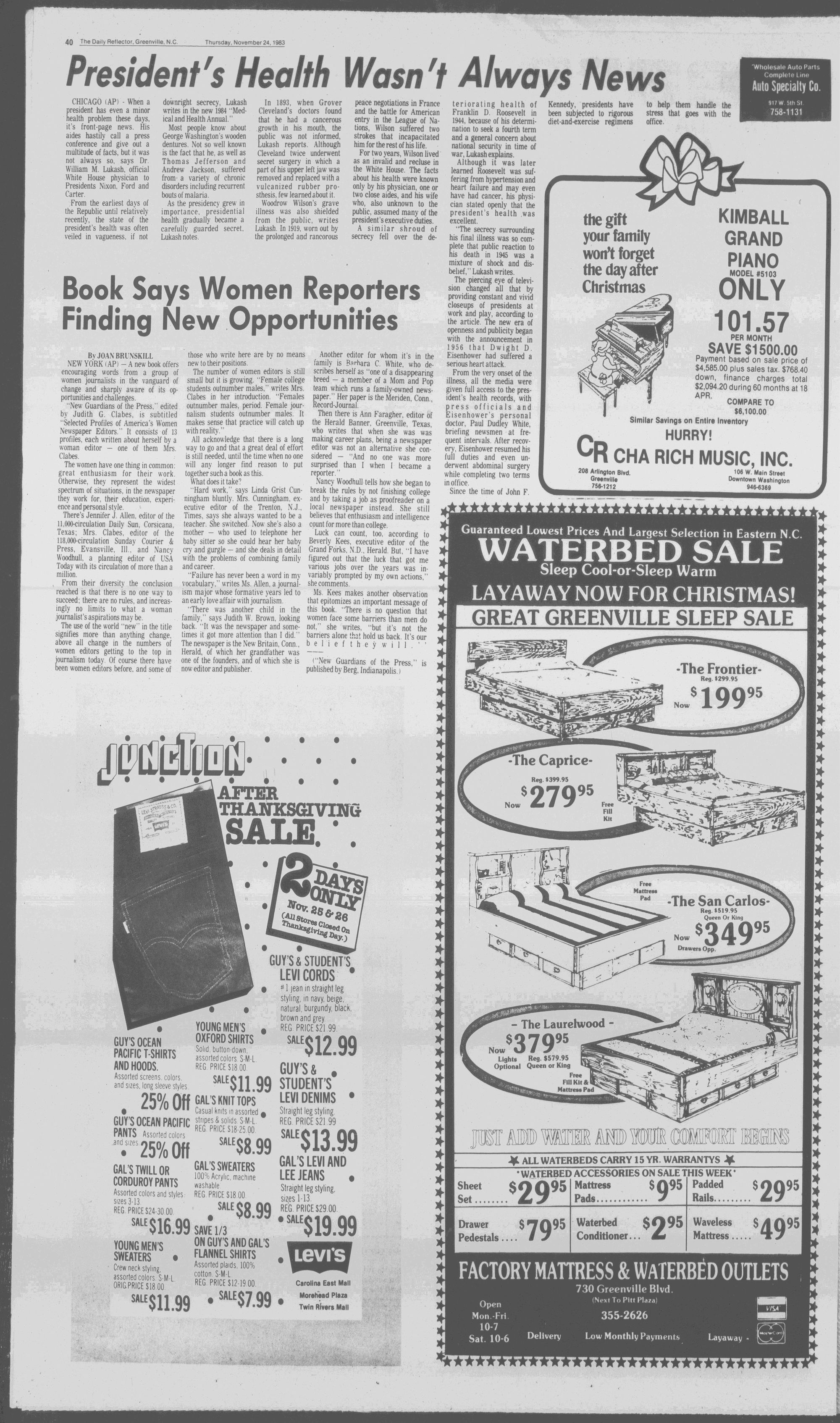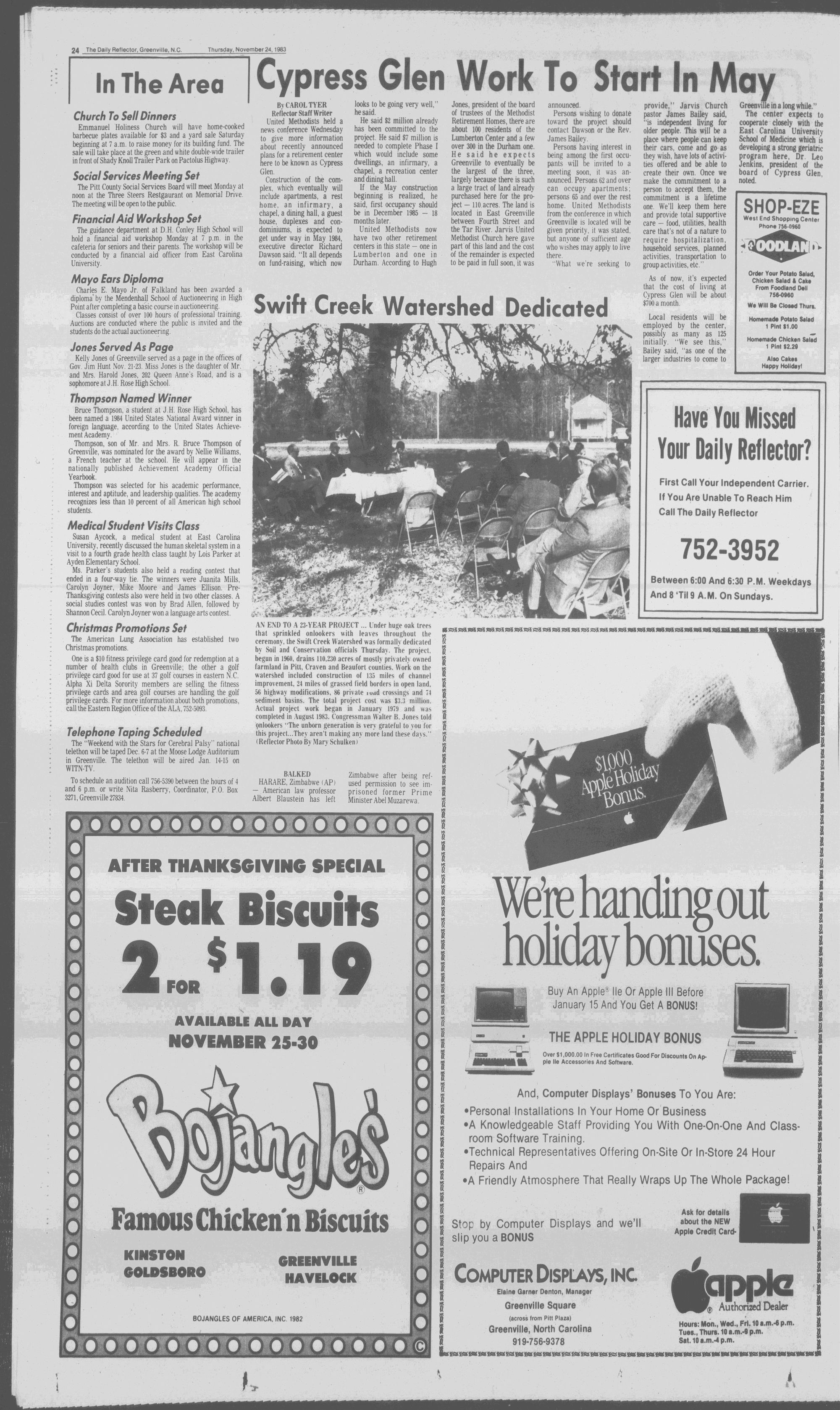 The newspaper was established in 1882, and was originally named the Eastern Reflector. It was founded by Julian Whichard and David Jordan with equipment they purchased from The Greenville Express. On December 10, 1894, it adopted the name The Reflector and began publishing every day. Cox Newspapers acquired The Daily Reflector in 1996. Creator: Daily Reflector (Greenville, N.C.)