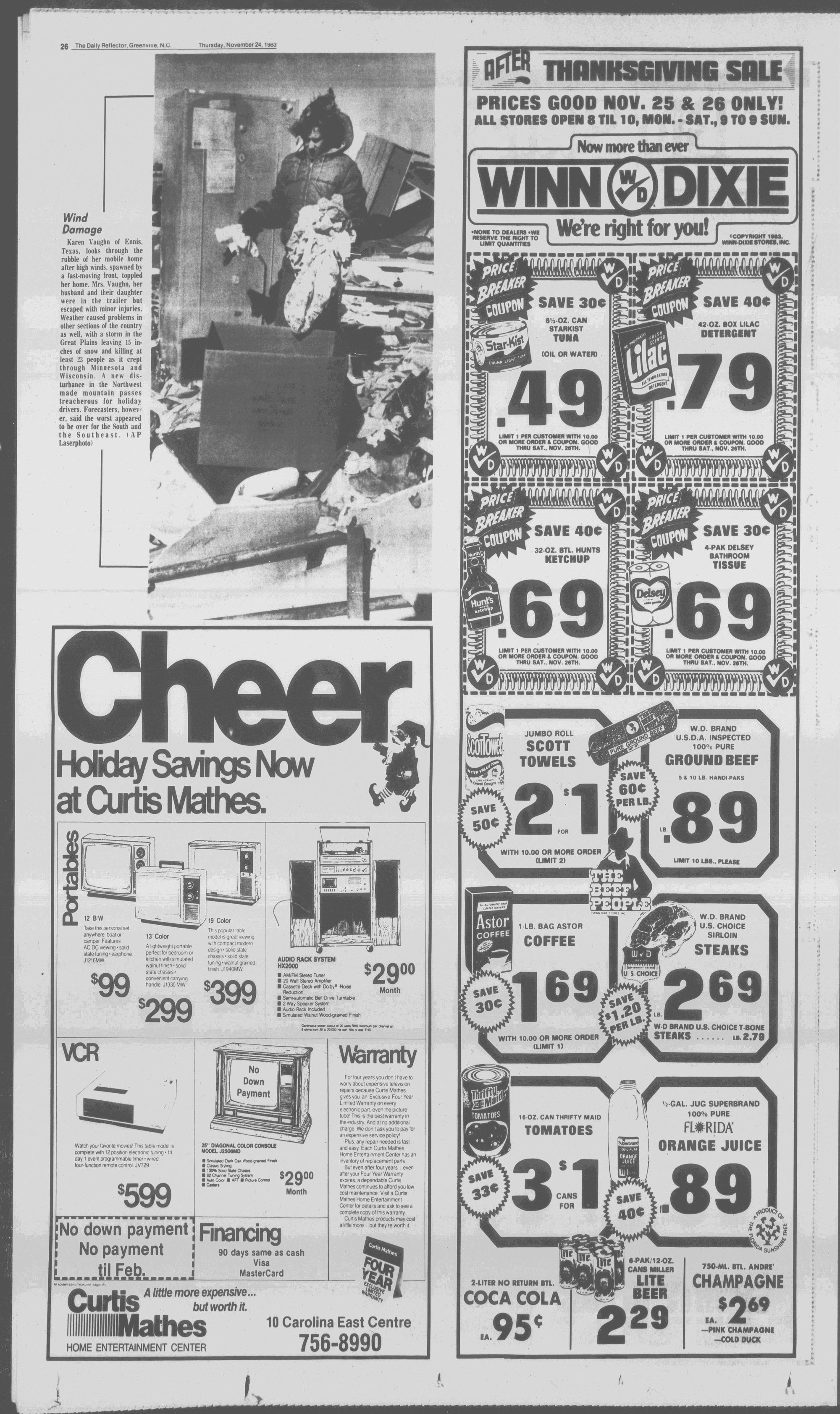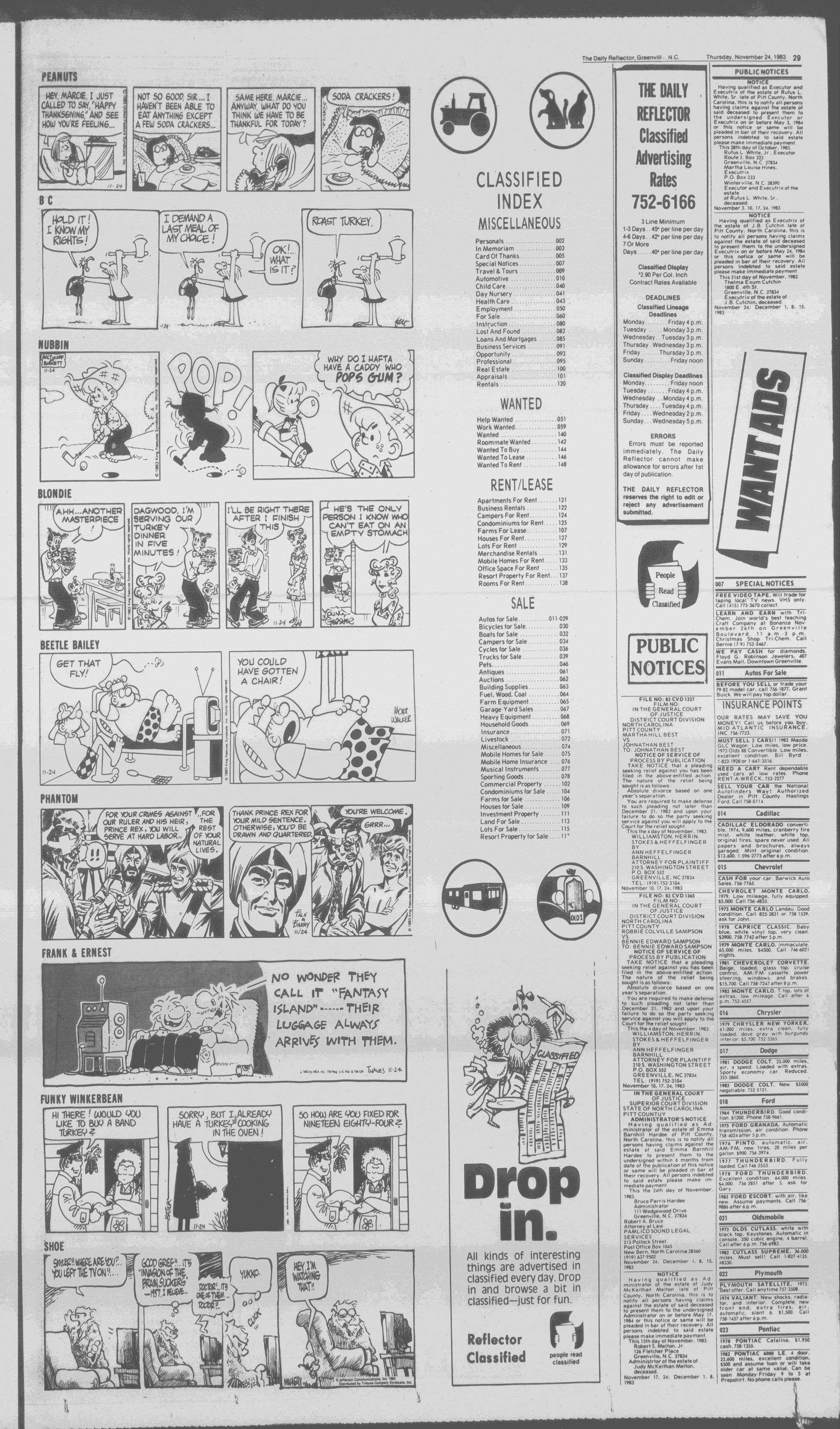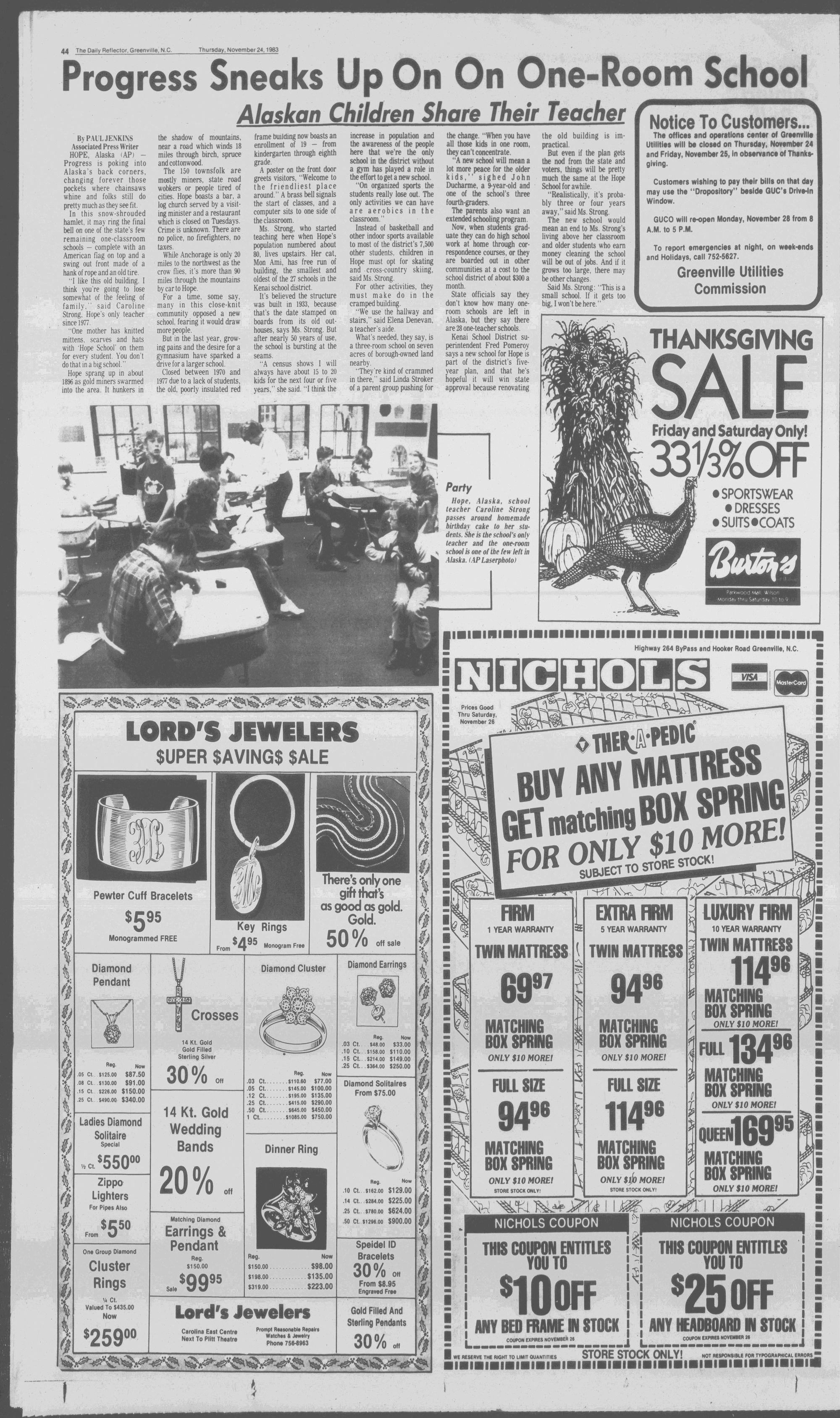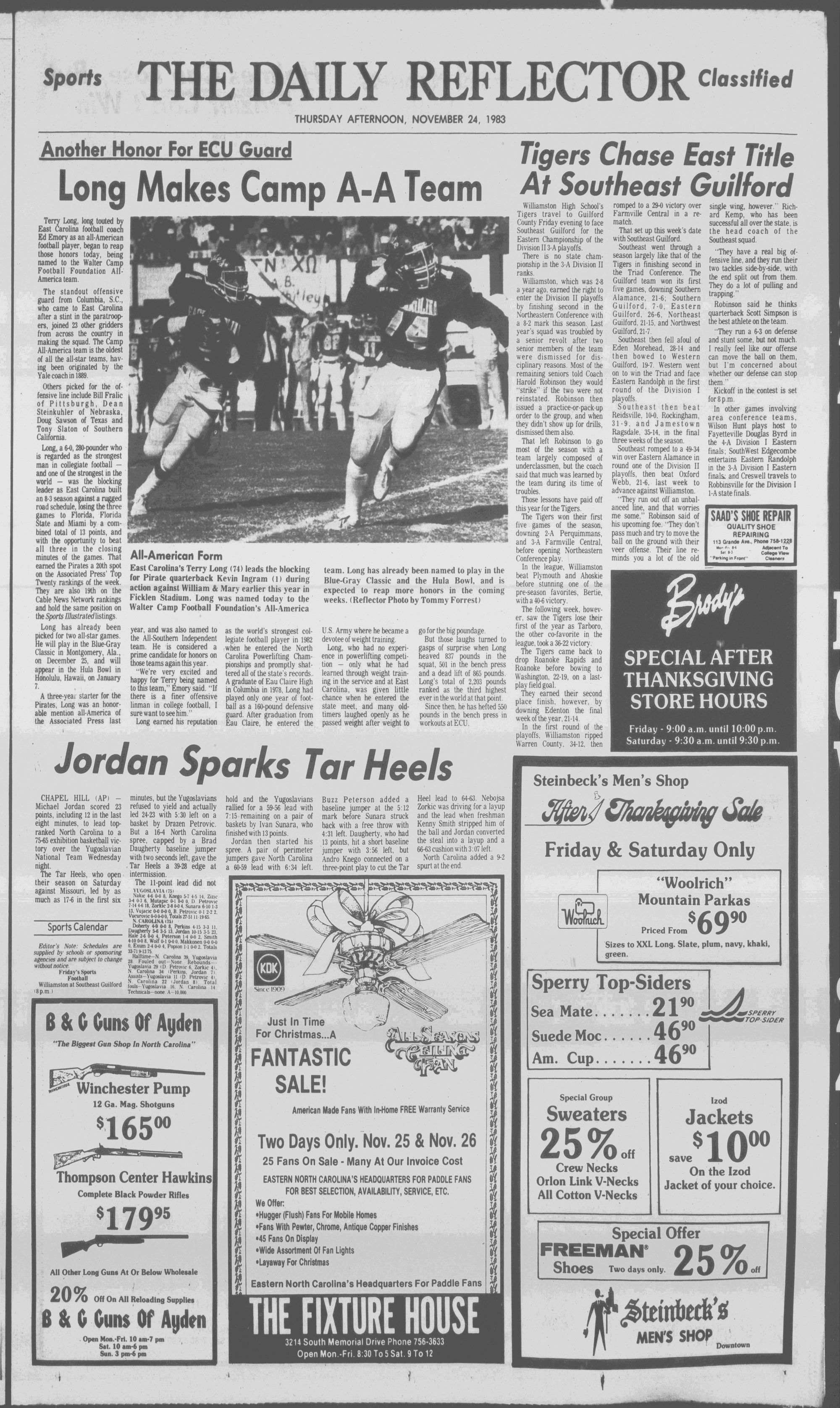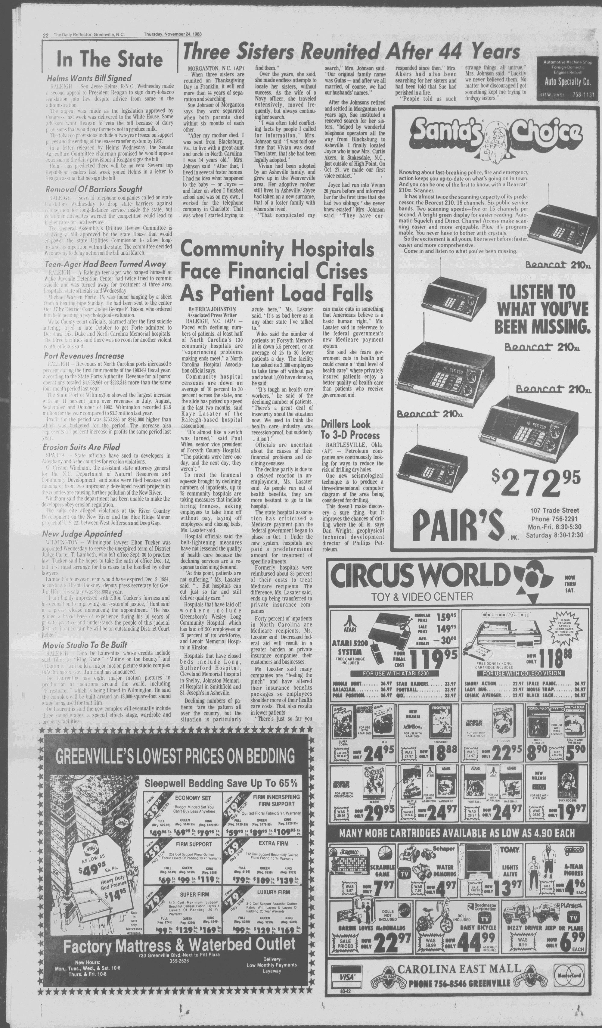 The newspaper was established in 1882, and was originally named the Eastern Reflector. It was founded by Julian Whichard and David Jordan with equipment they purchased from The Greenville Express. On December 10, 1894, it adopted the name The Reflector and began publishing every day. Cox Newspapers acquired The Daily Reflector in 1996. Creator: Daily Reflector (Greenville, N.C.)