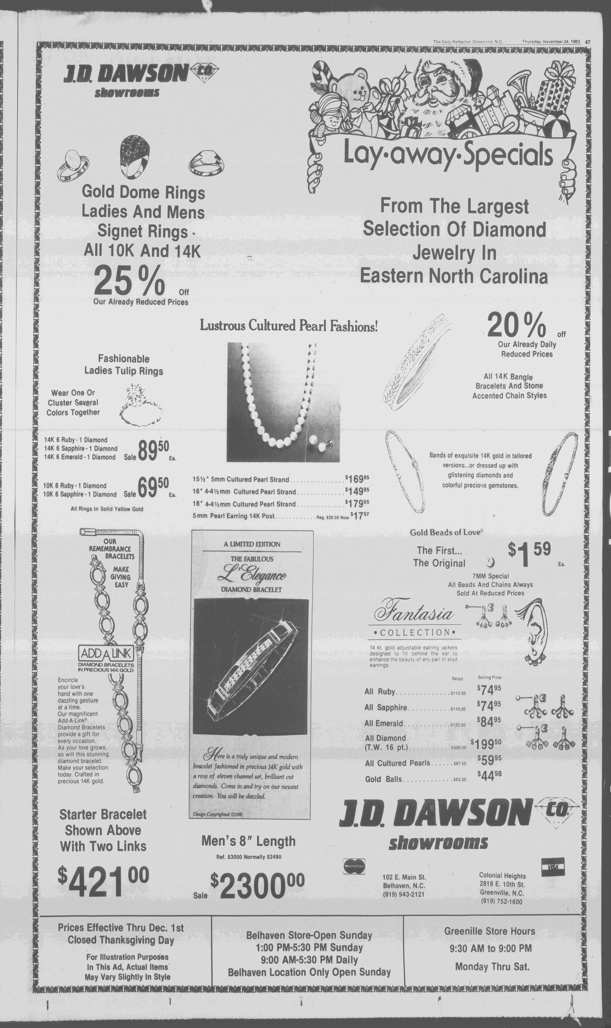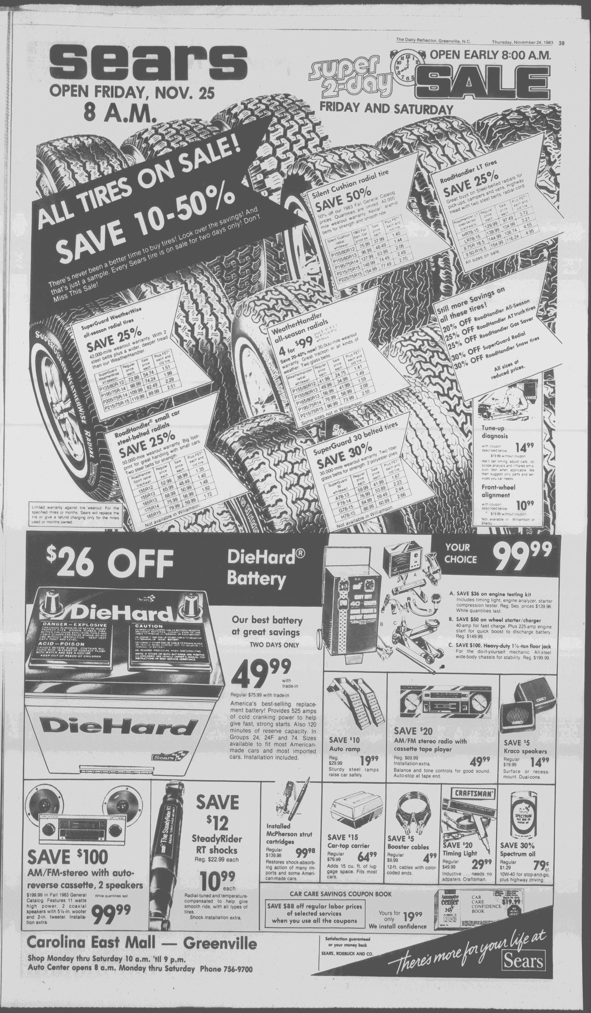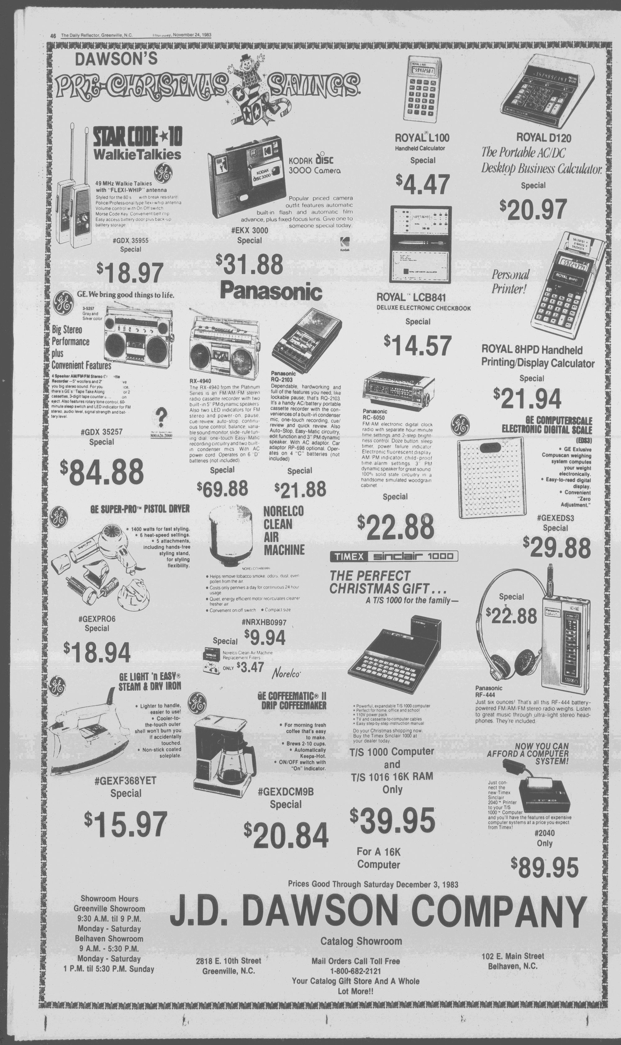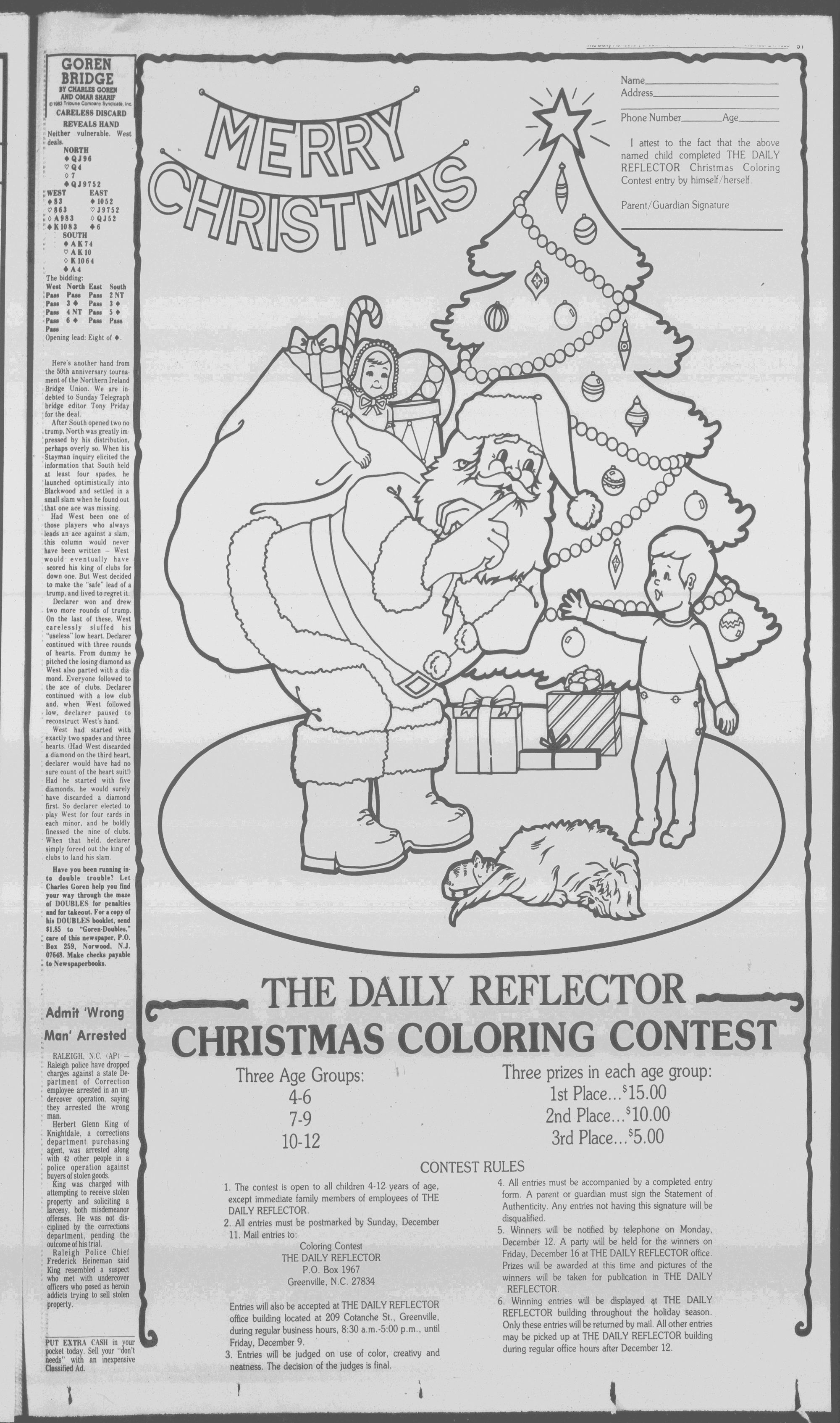 The newspaper was established in 1882, and was originally named the Eastern Reflector. It was founded by Julian Whichard and David Jordan with equipment they purchased from The Greenville Express. On December 10, 1894, it adopted the name The Reflector and began publishing every day. Cox Newspapers acquired The Daily Reflector in 1996. Creator: Daily Reflector (Greenville, N.C.)
