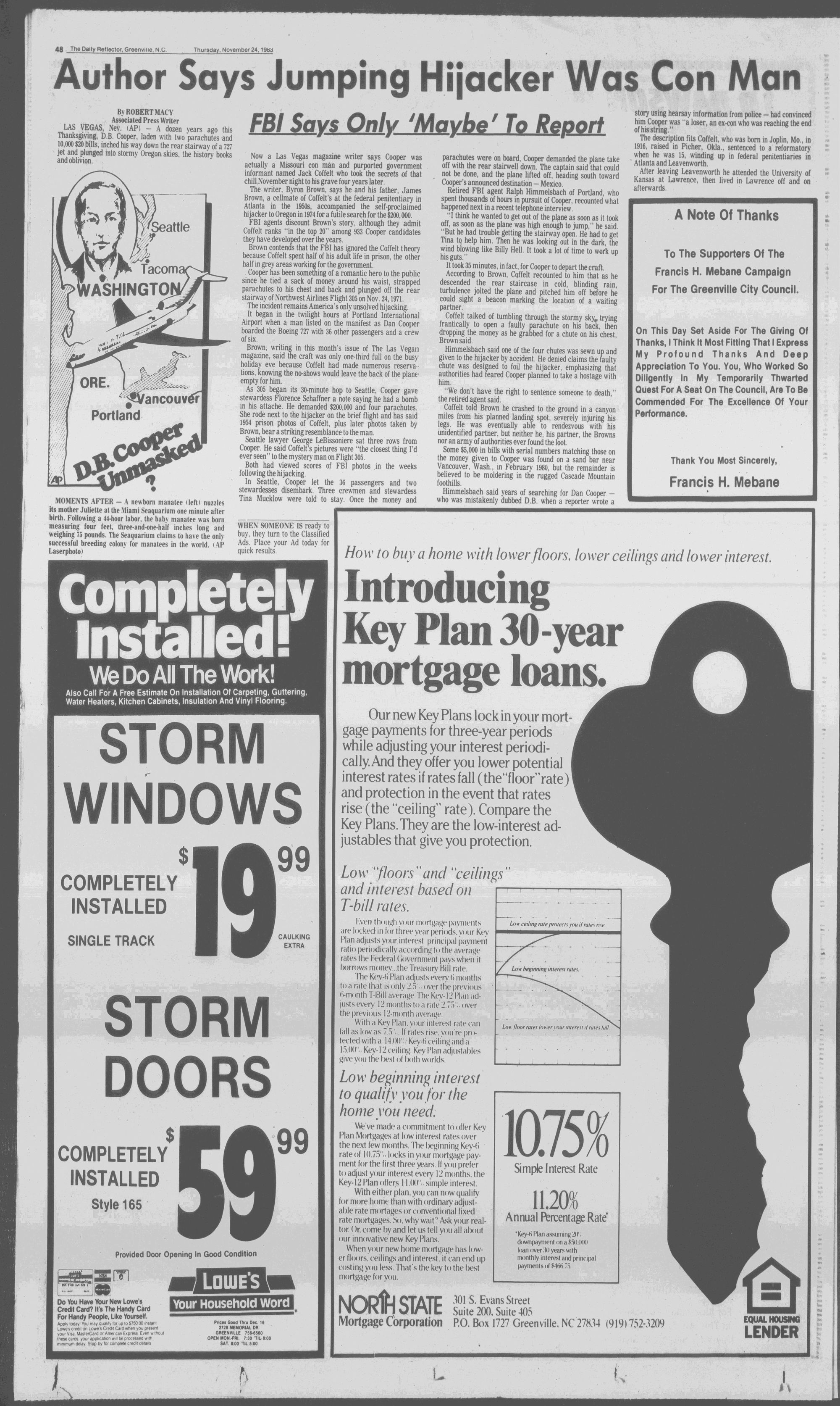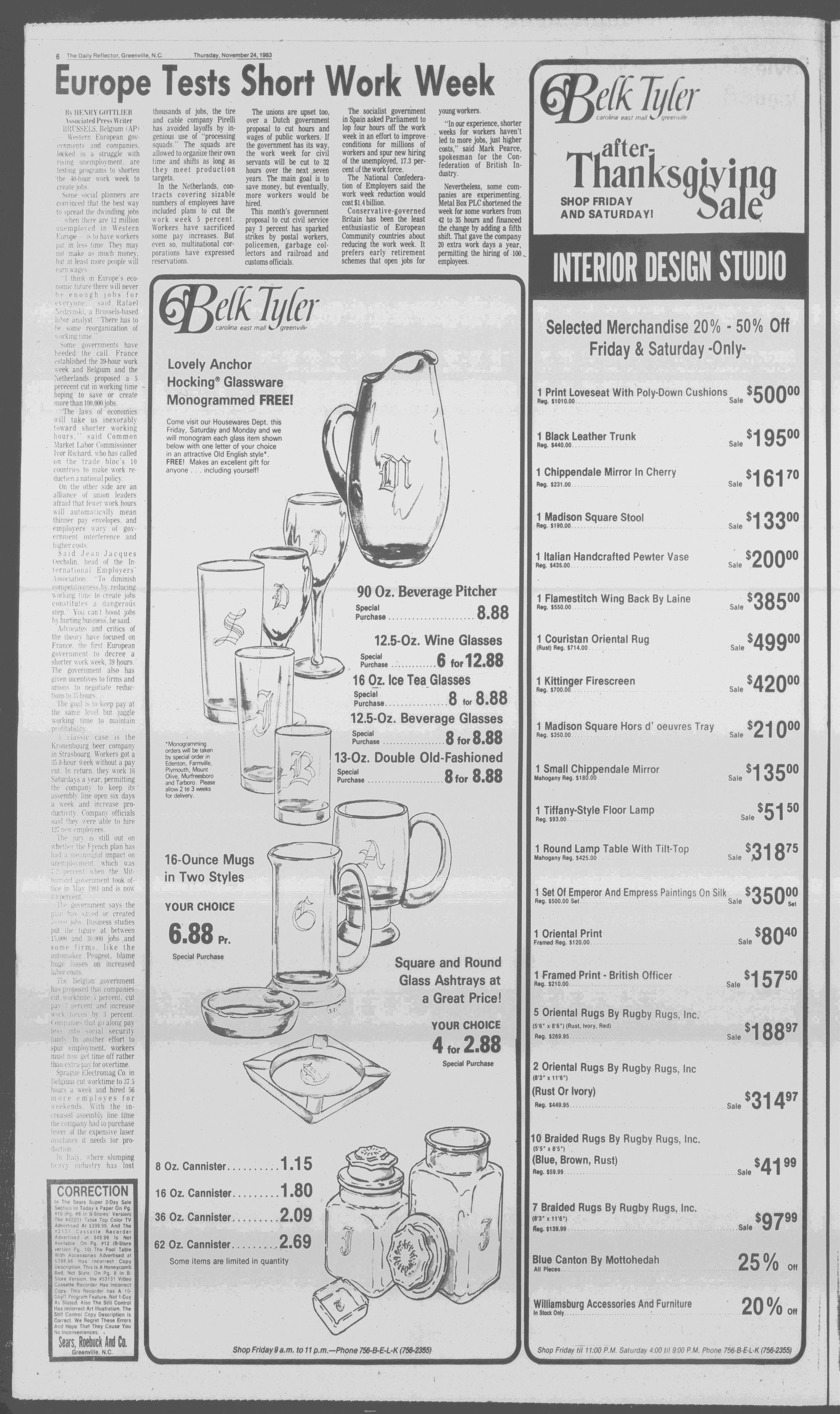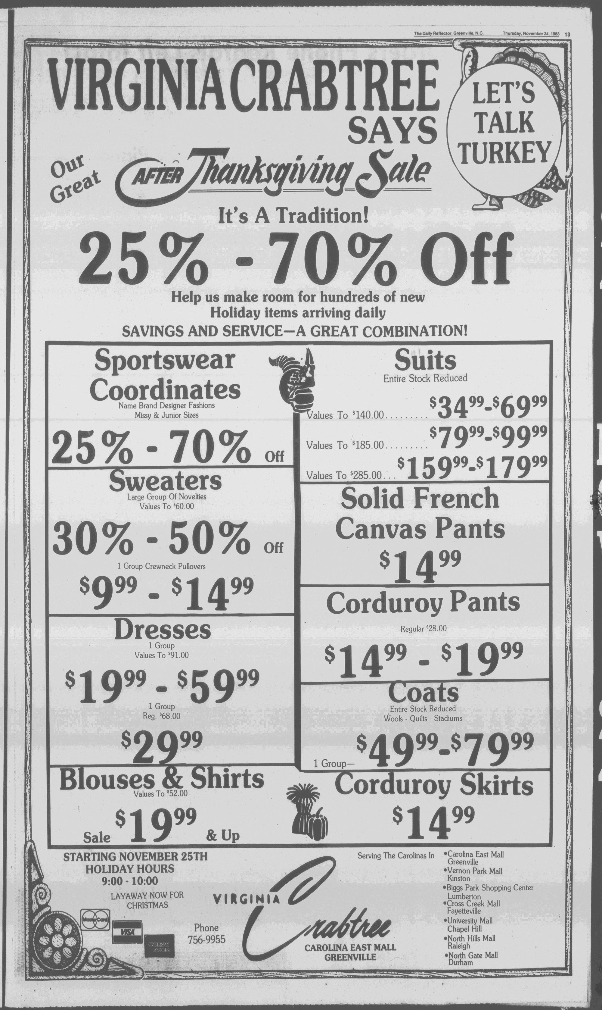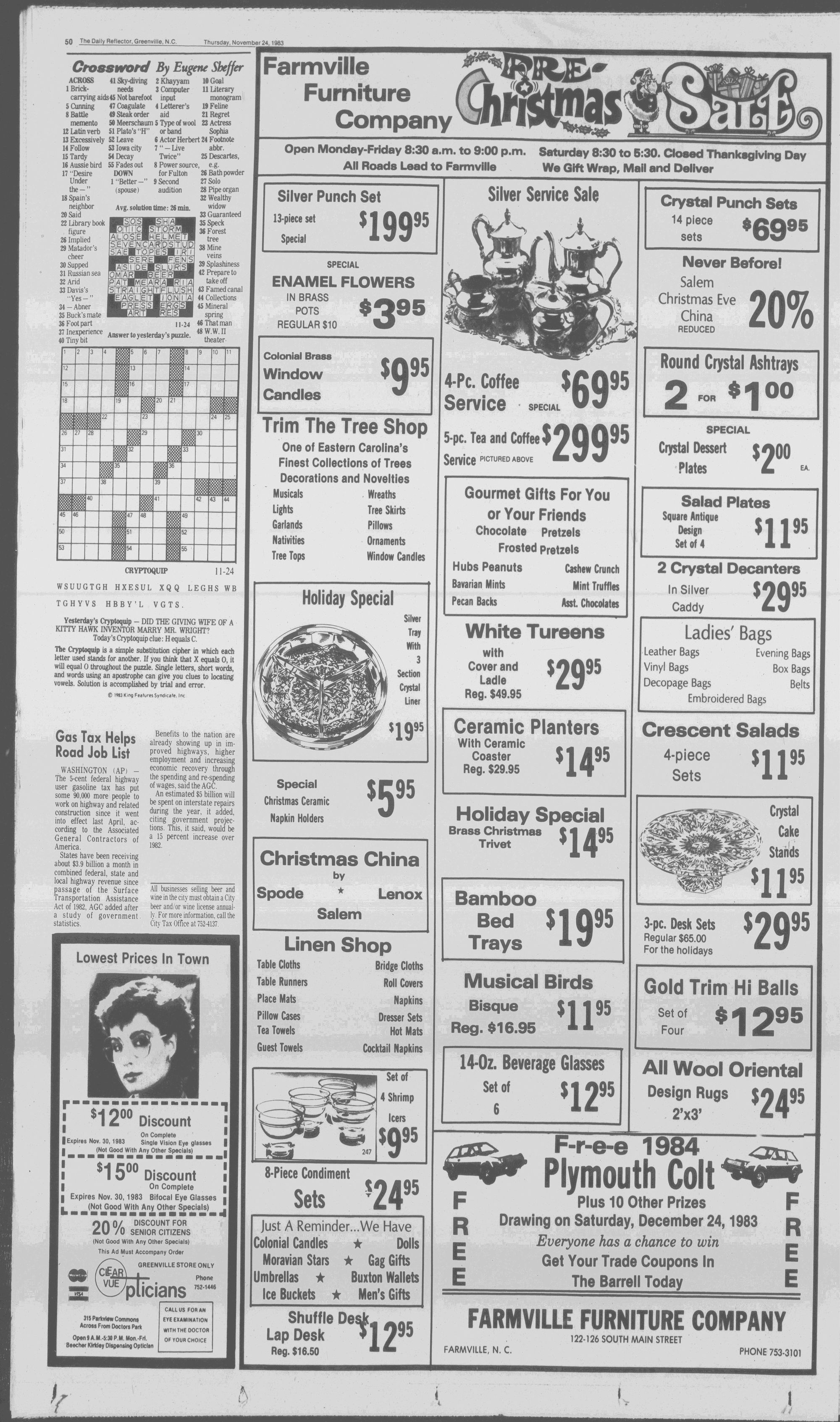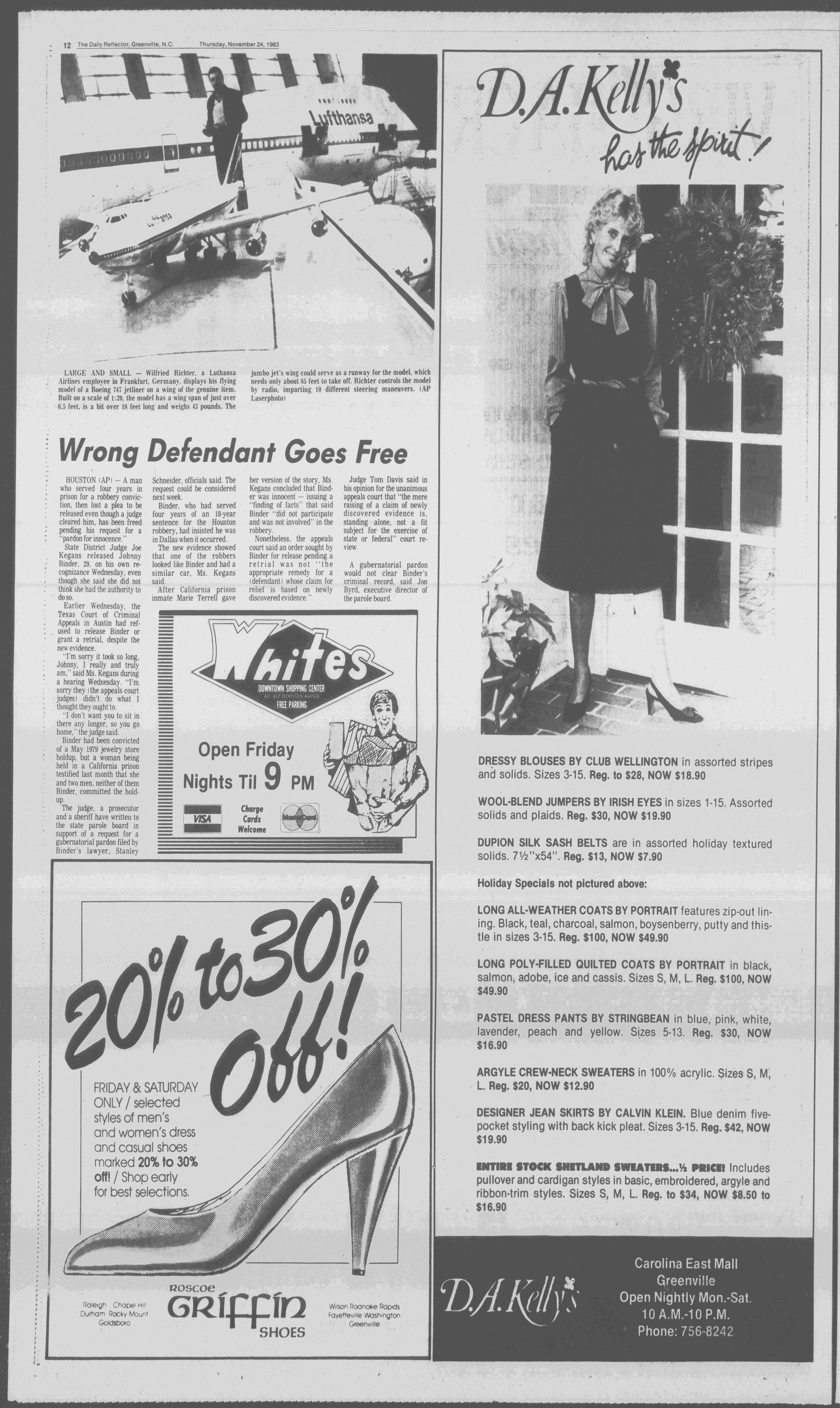 The newspaper was established in 1882, and was originally named the Eastern Reflector. It was founded by Julian Whichard and David Jordan with equipment they purchased from The Greenville Express. On December 10, 1894, it adopted the name The Reflector and began publishing every day. Cox Newspapers acquired The Daily Reflector in 1996. Creator: Daily Reflector (Greenville, N.C.)