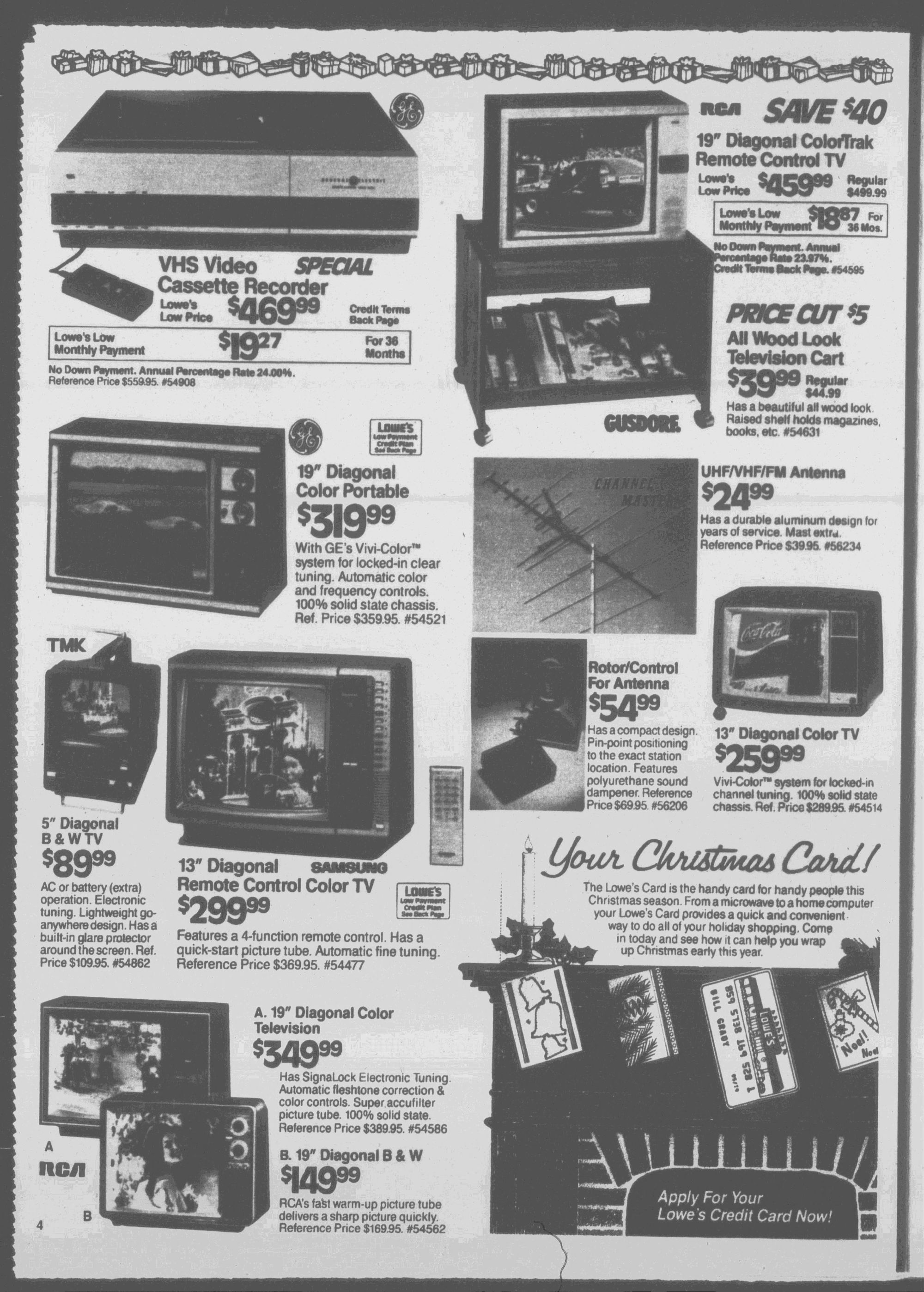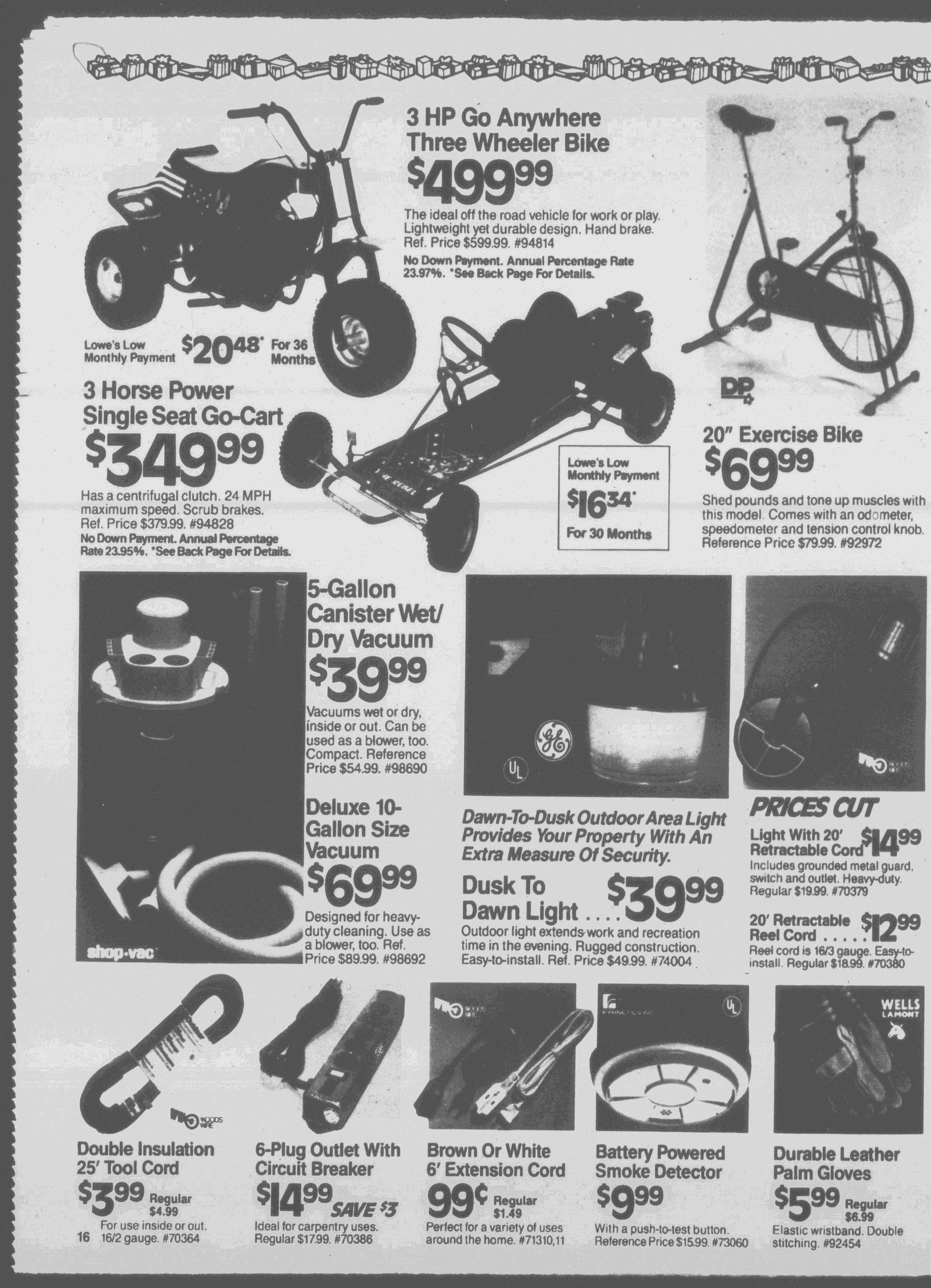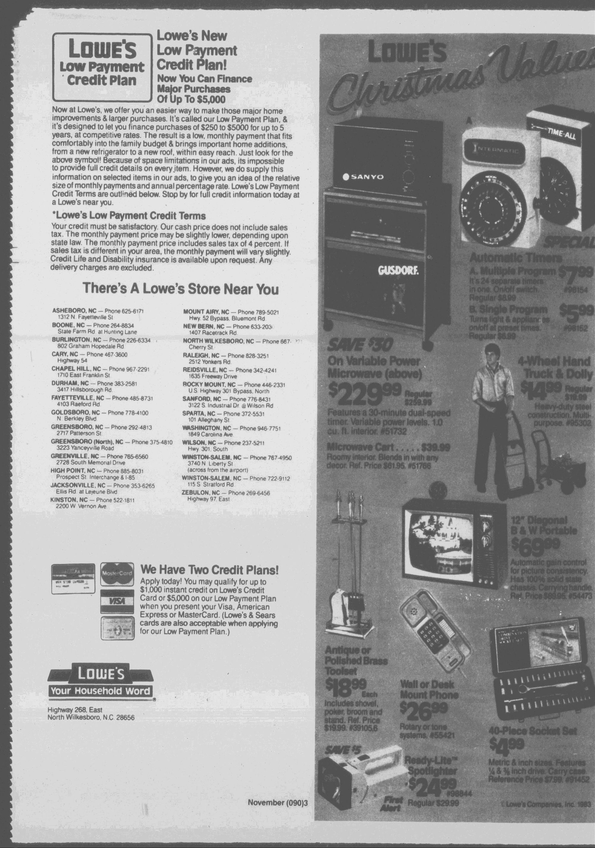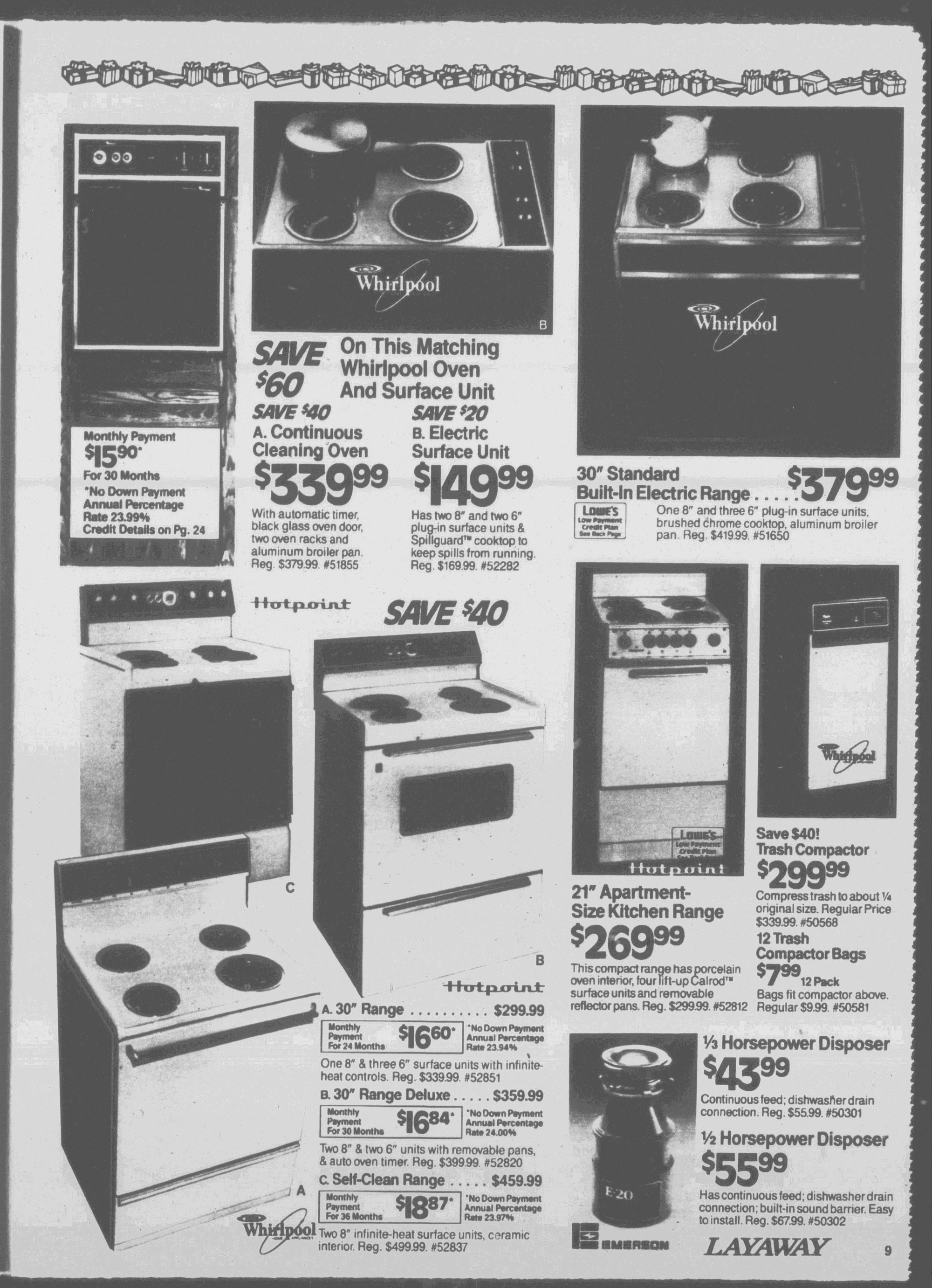 Now at Lowes, we offer you an easier way to make those major home improvements & larger ^rchases. It's called our Low Payment Plan, & its designed to let you finance purchases of $250 to $5000 for up to 5 years, at competitive rates. The result is a low, monthly payment that fits comfortably into the family budget & brings important home additions, from a new refrigerator to a new roof, within easy reach. Just look for the above symbof! Because of space limitations in our ads, its impossible to provide full credit details on every .item. However, we do supply this information on selected items in our ads, to give you an idea of the relative size of monthly payments and annual percentage rate. Lowes Low Payment Credit Terms are outlind below. Stop by for full credit information today at a Lowes near you.
