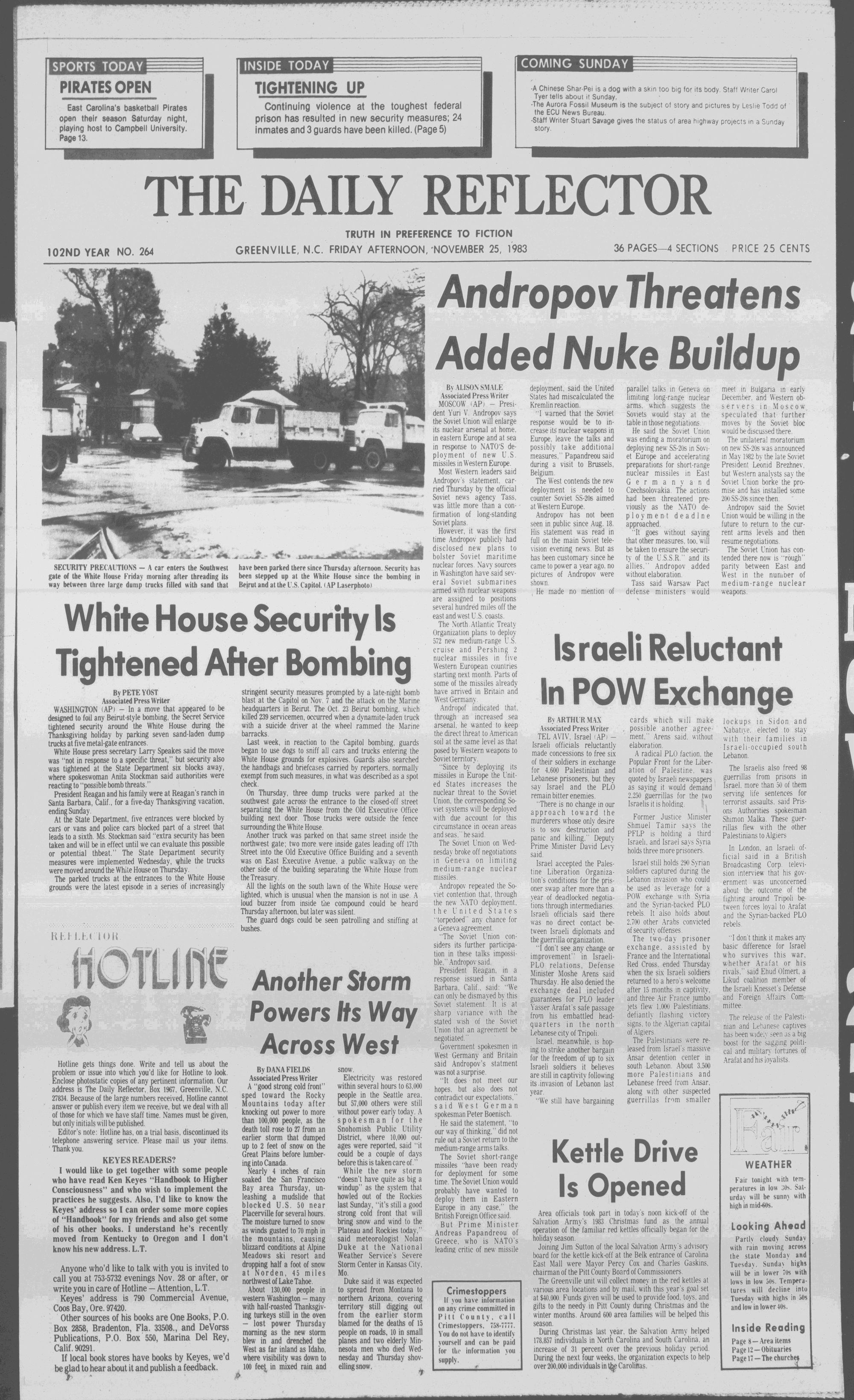It goes without saying that other measures, too. will be taken to ensure the security of the U.S.S.R." and its allies," Andropov added without elaboration.