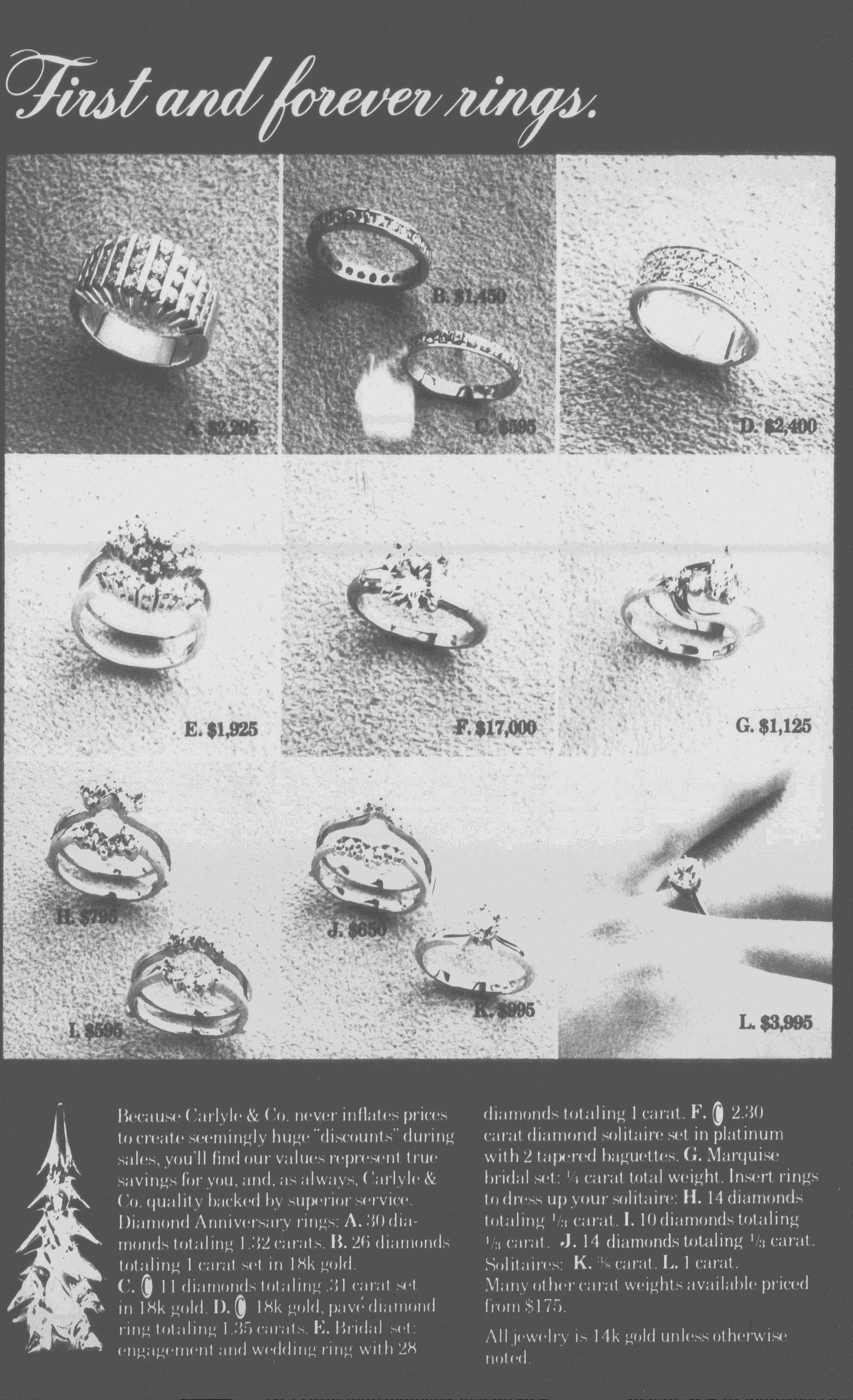AH idcJewelry purehii.sed al (lariyle & do. is backed by our six! y day unconditional ((lurTi [X)licy. To us, liieres no Ki<ul<*r yalue I ban your cotnplele sal isiaclion, and no (larlyle <Si (lo. sale is coni[)lel.e wit bout it,