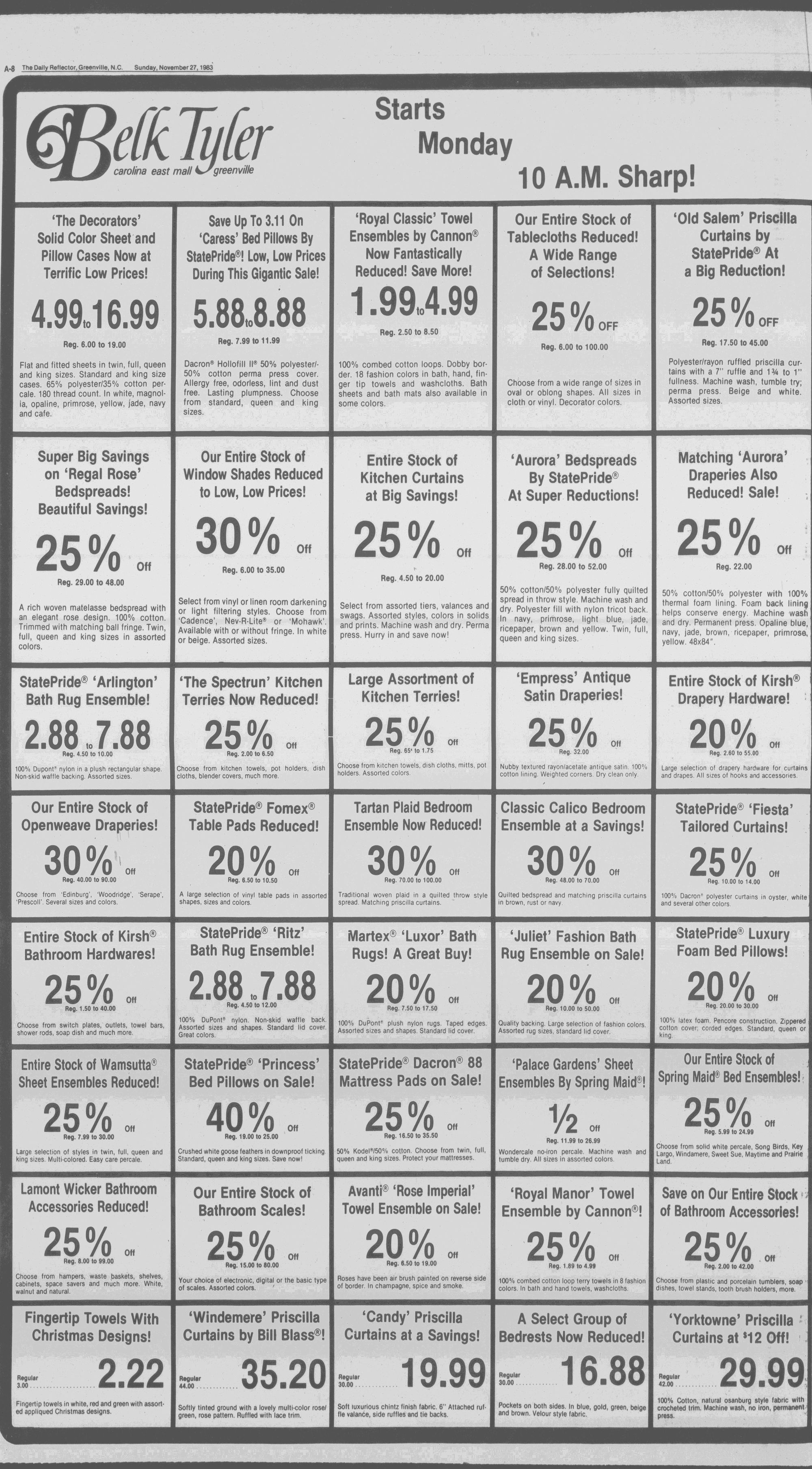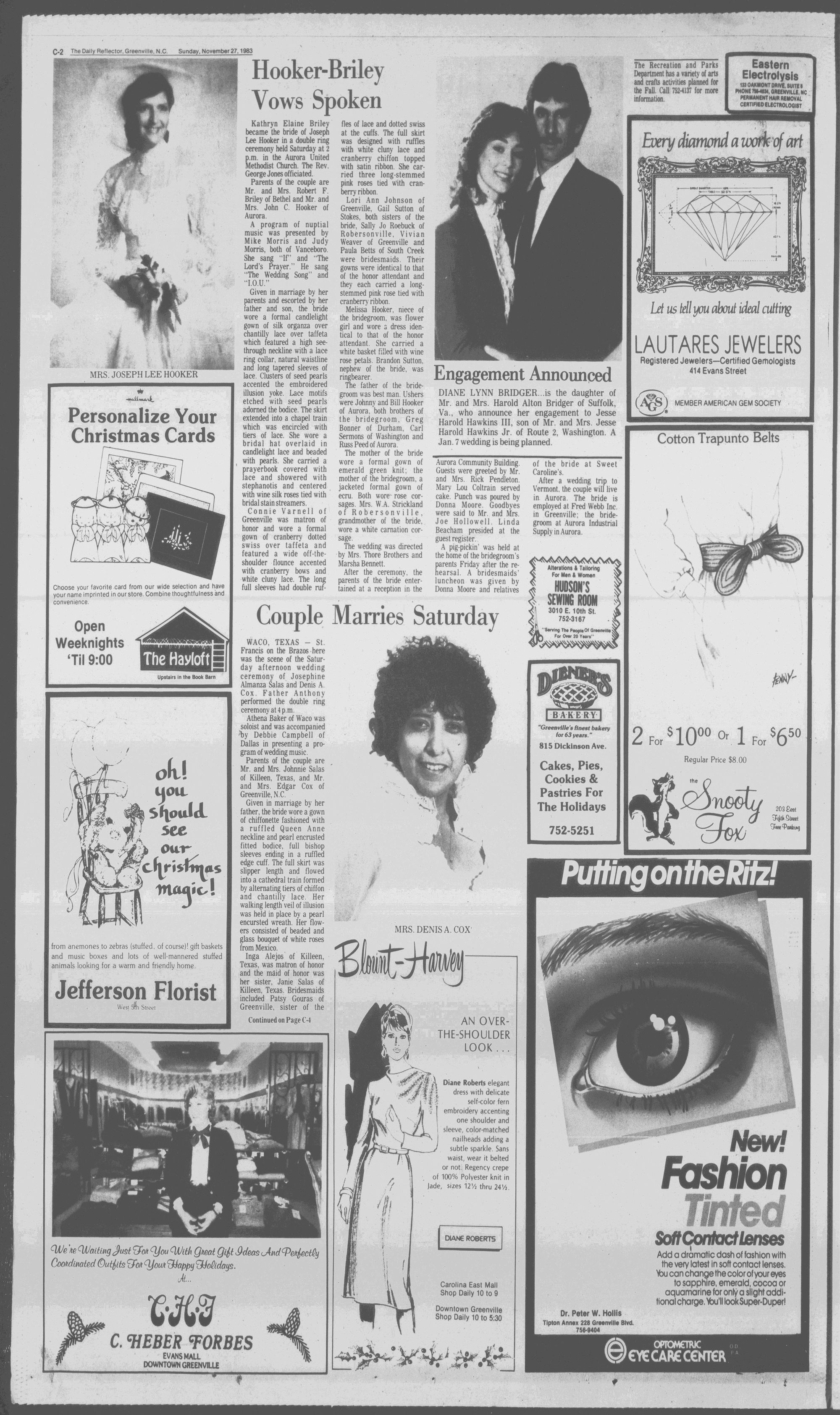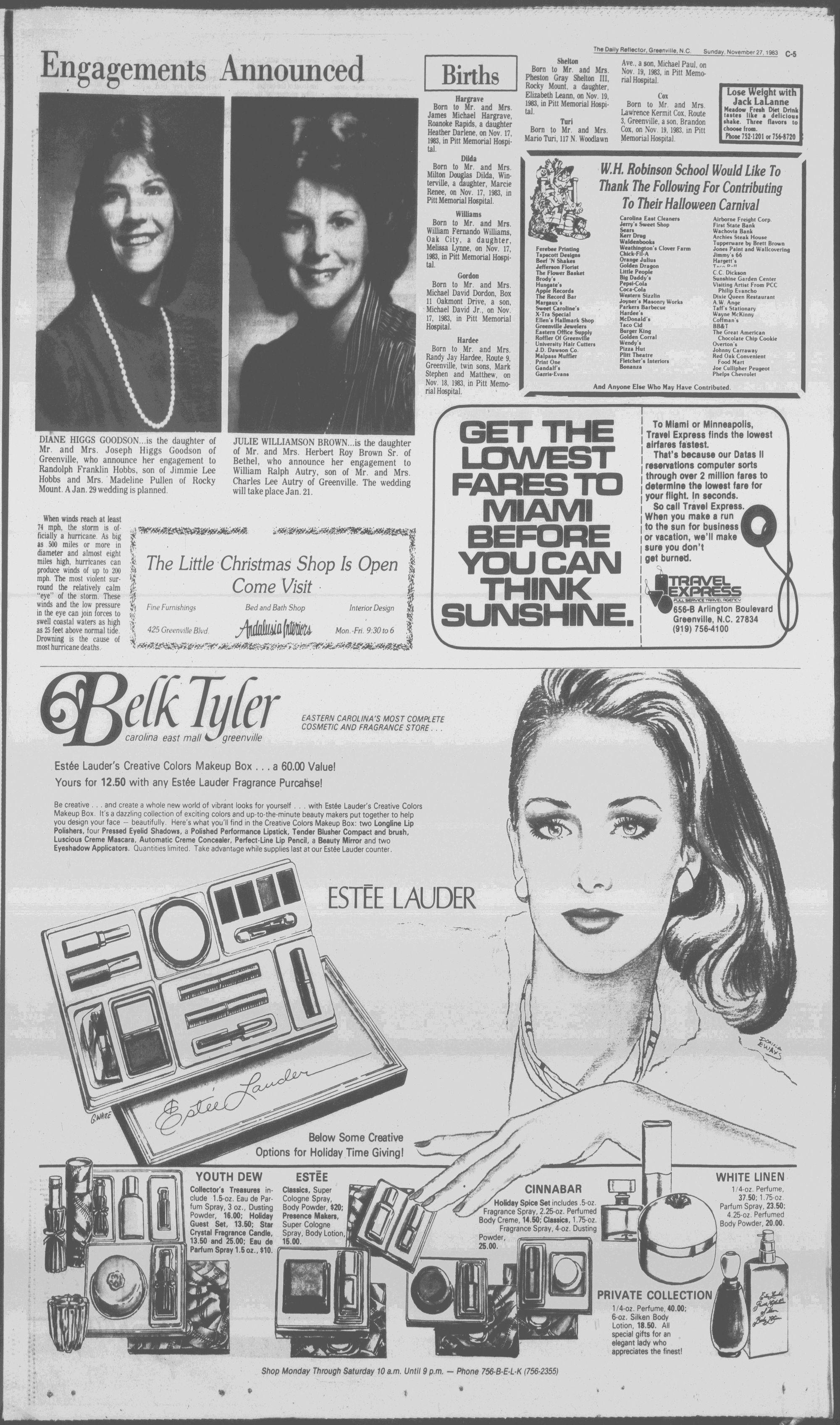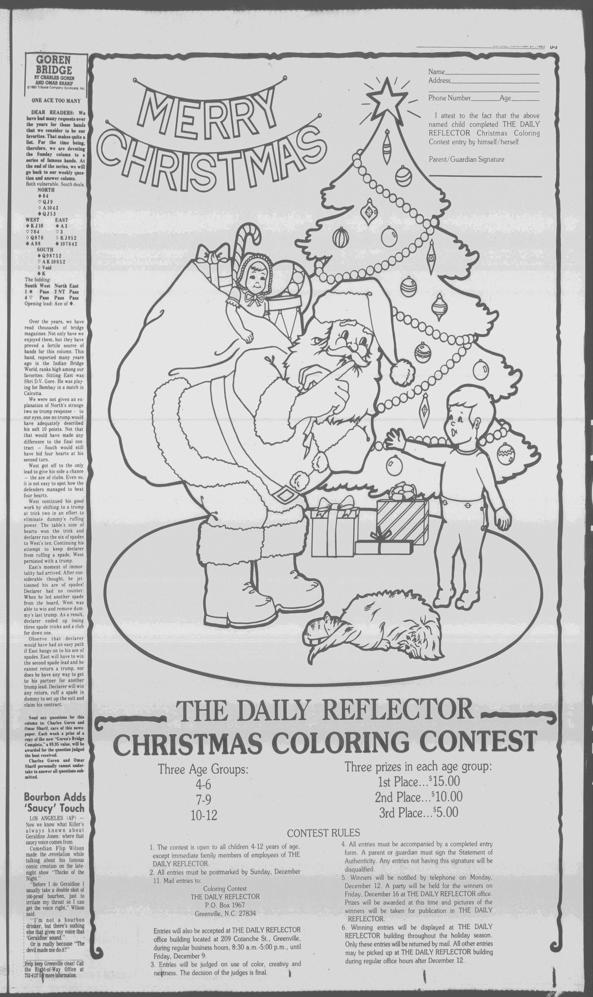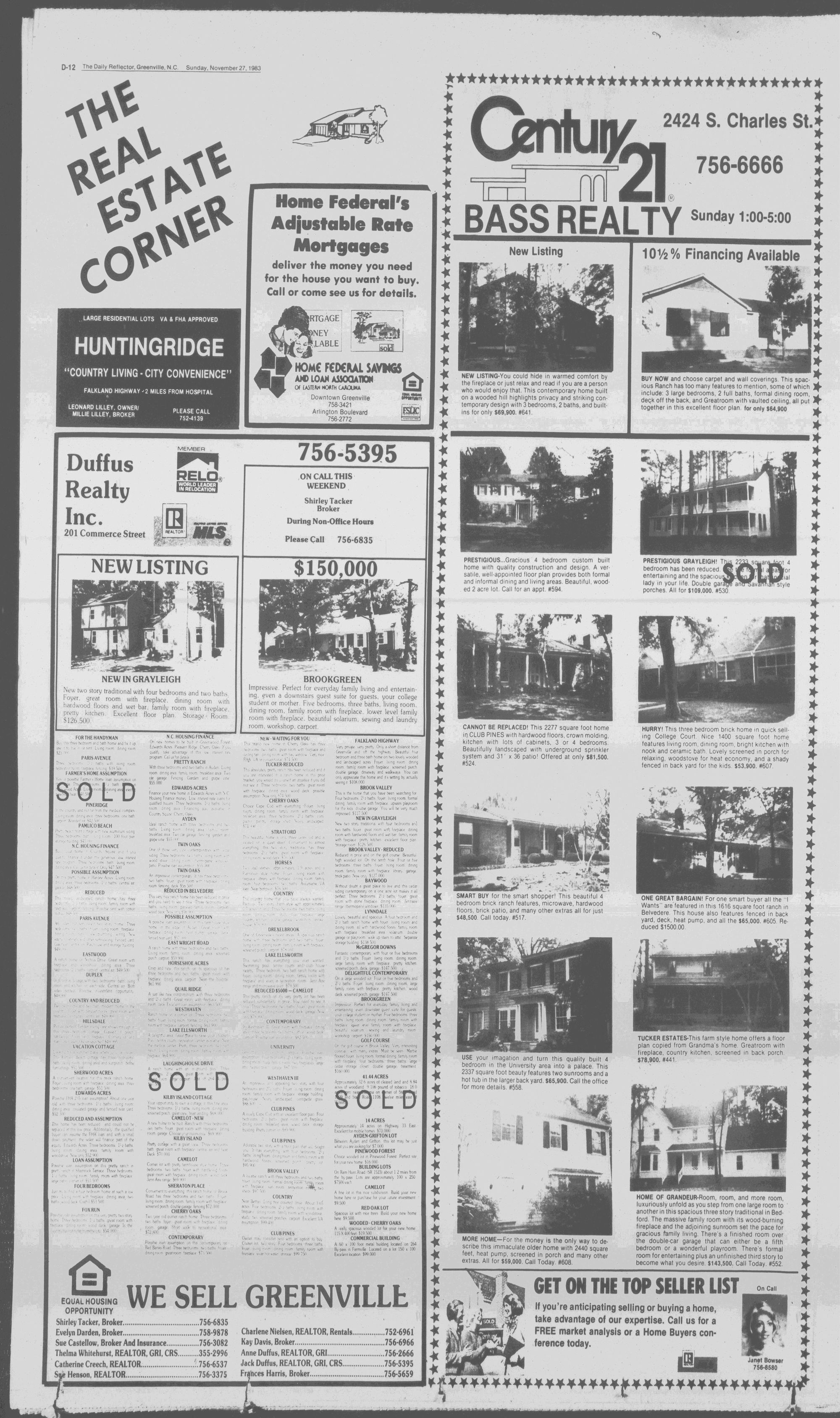 The newspaper was established in 1882, and was originally named the Eastern Reflector. It was founded by Julian Whichard and David Jordan with equipment they purchased from The Greenville Express. On December 10, 1894, it adopted the name The Reflector and began publishing every day. Cox Newspapers acquired The Daily Reflector in 1996. Creator: Daily Reflector (Greenville, N.C.)