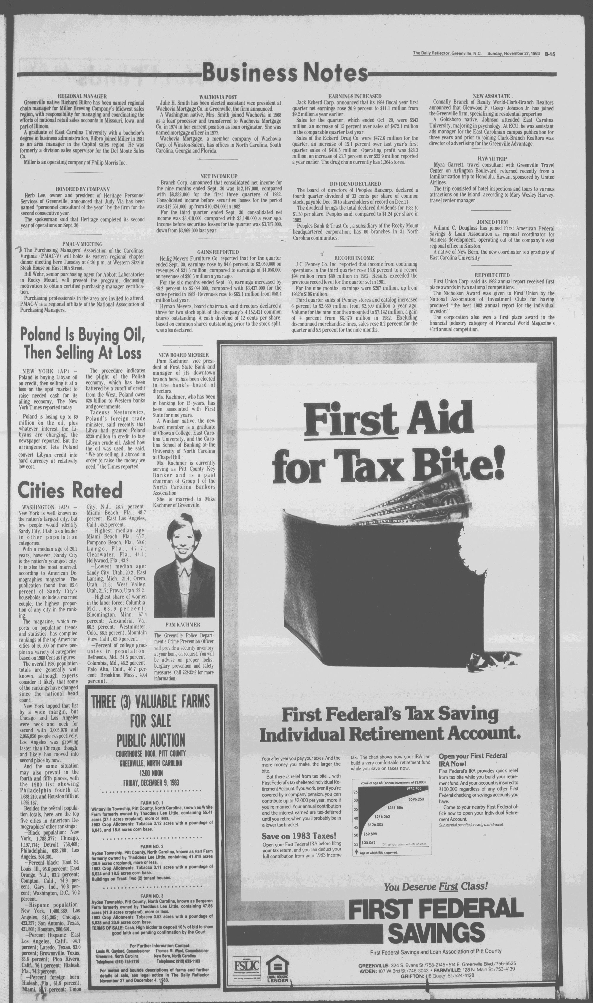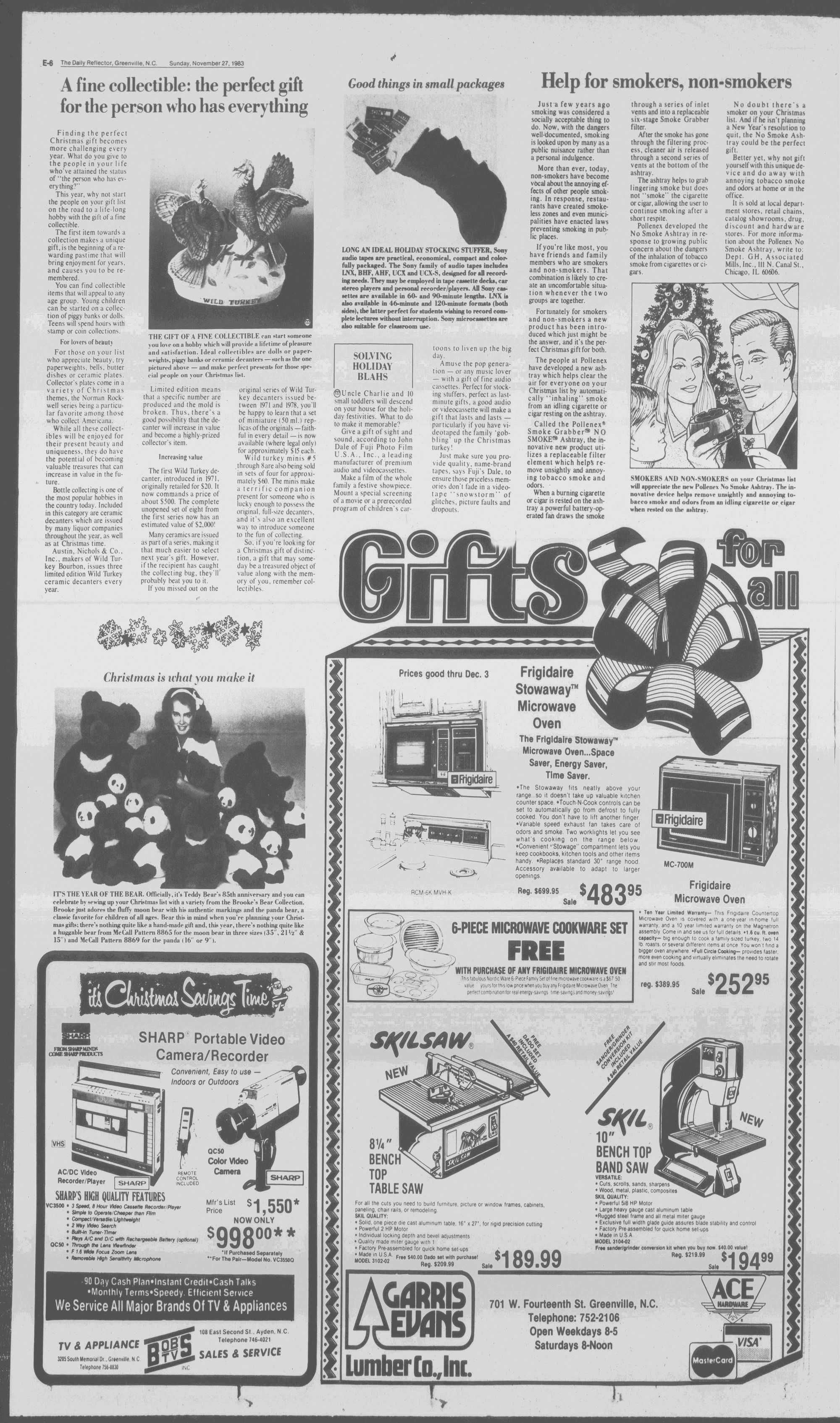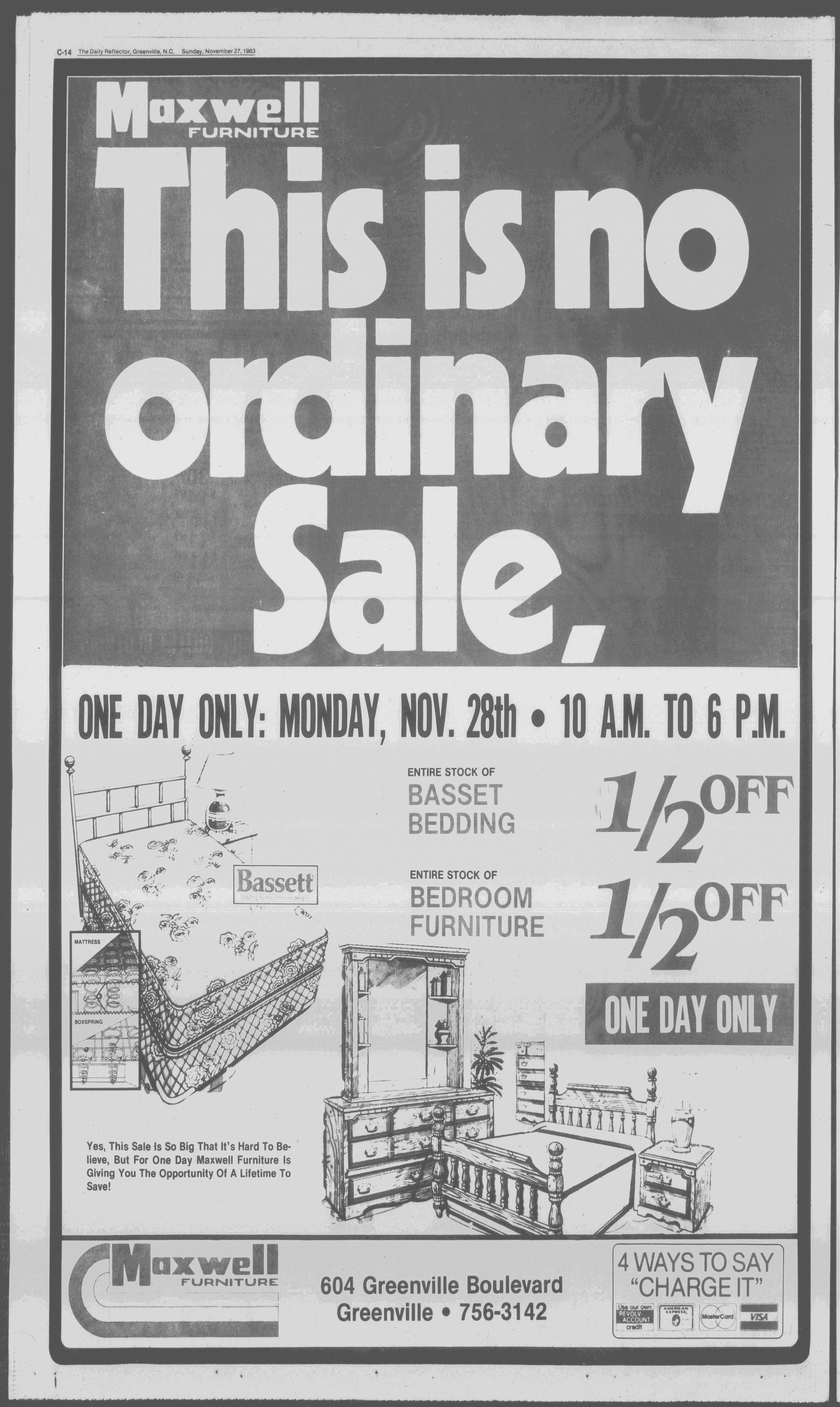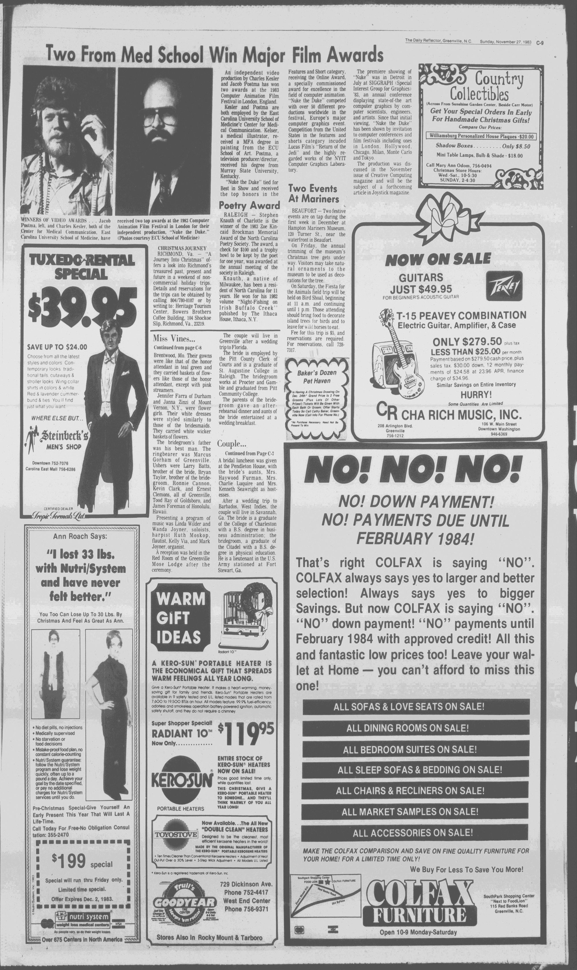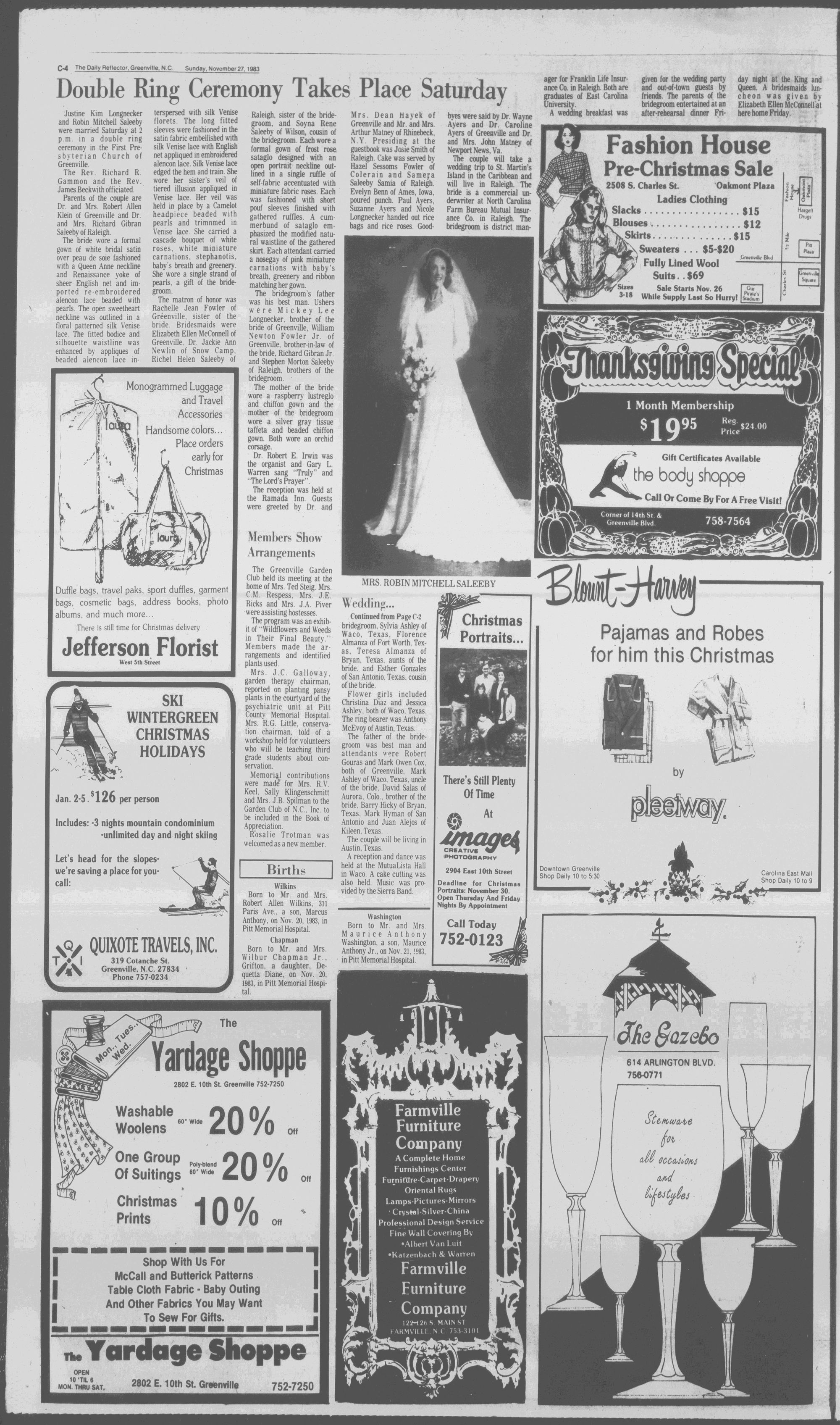 The newspaper was established in 1882, and was originally named the Eastern Reflector. It was founded by Julian Whichard and David Jordan with equipment they purchased from The Greenville Express. On December 10, 1894, it adopted the name The Reflector and began publishing every day. Cox Newspapers acquired The Daily Reflector in 1996. Creator: Daily Reflector (Greenville, N.C.)