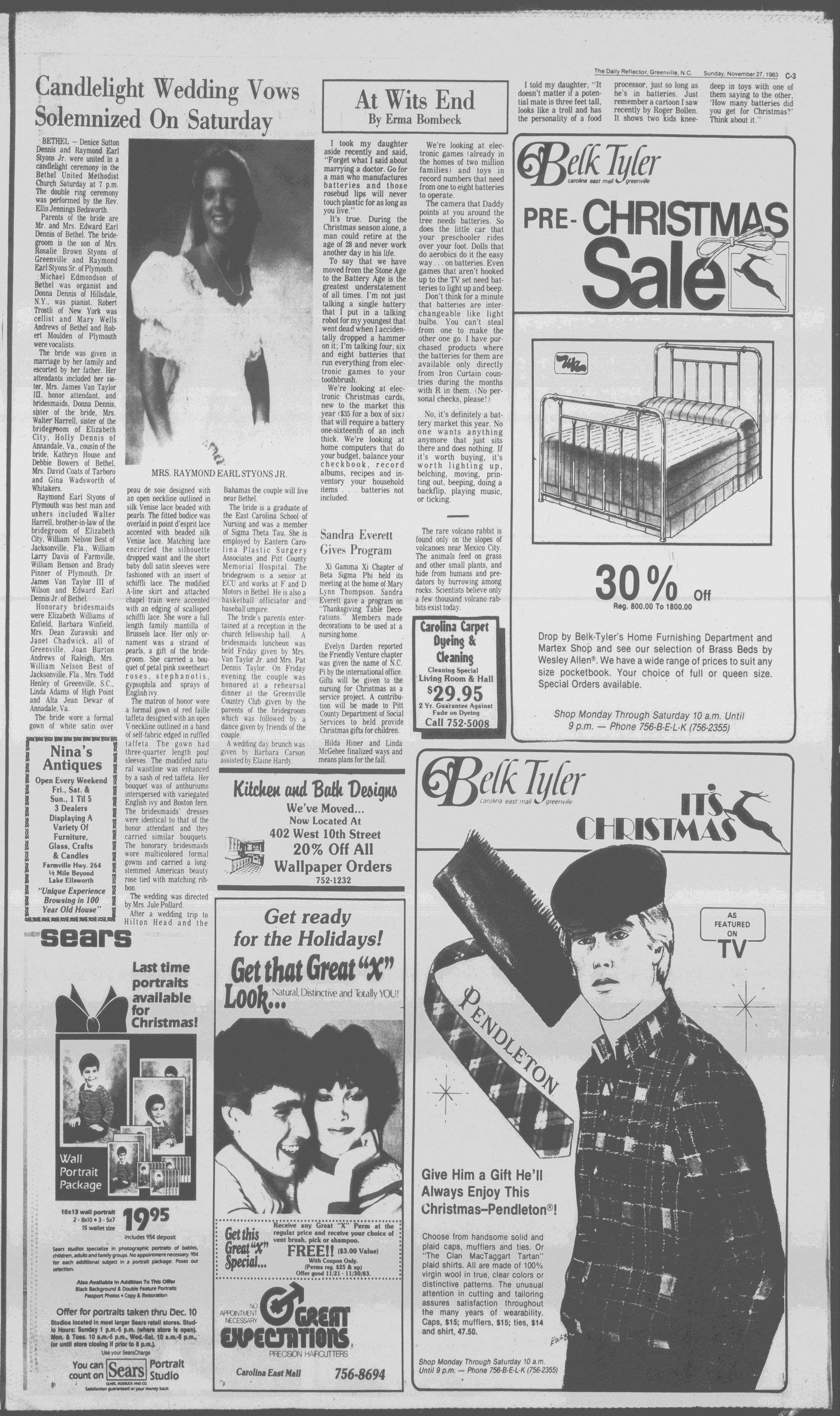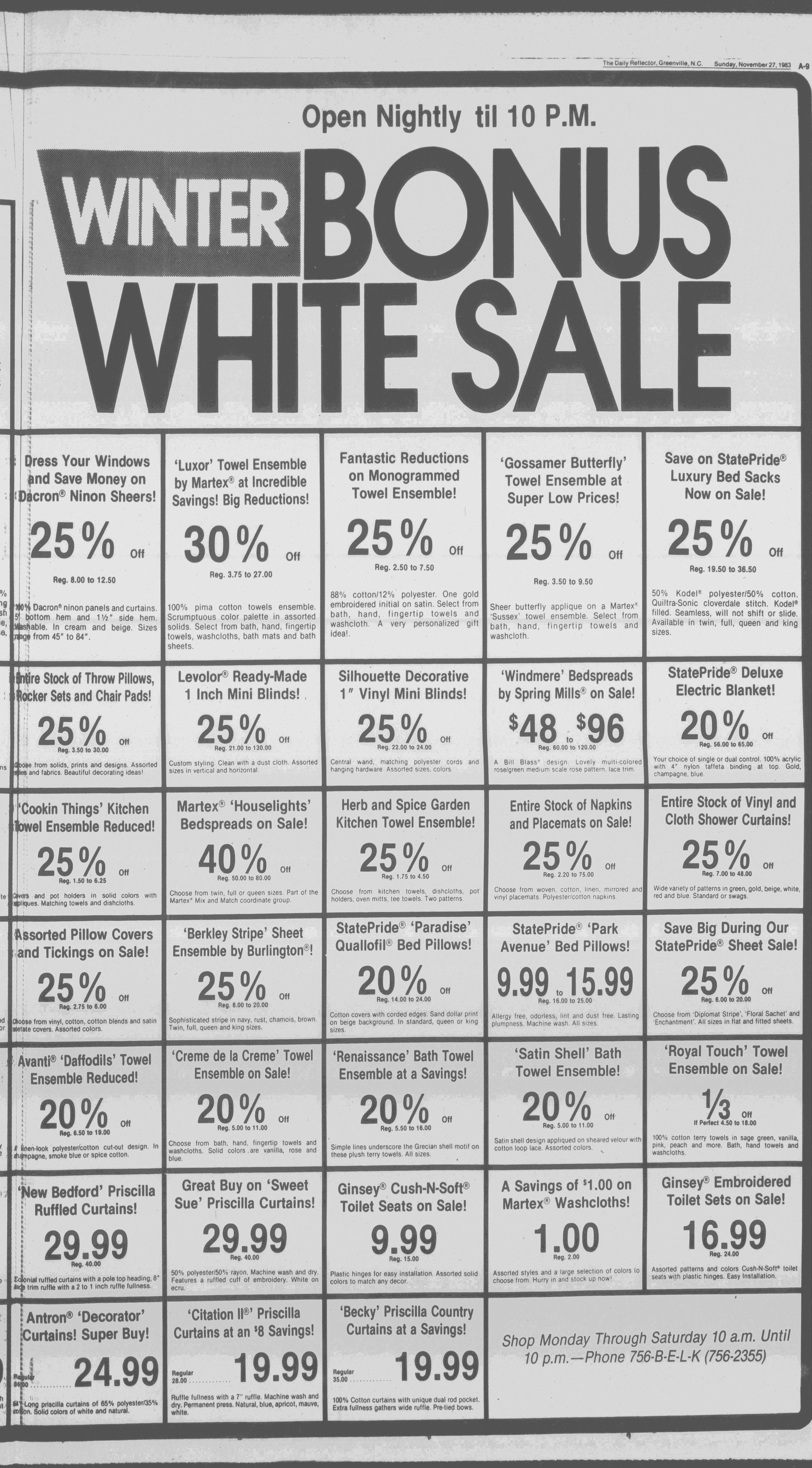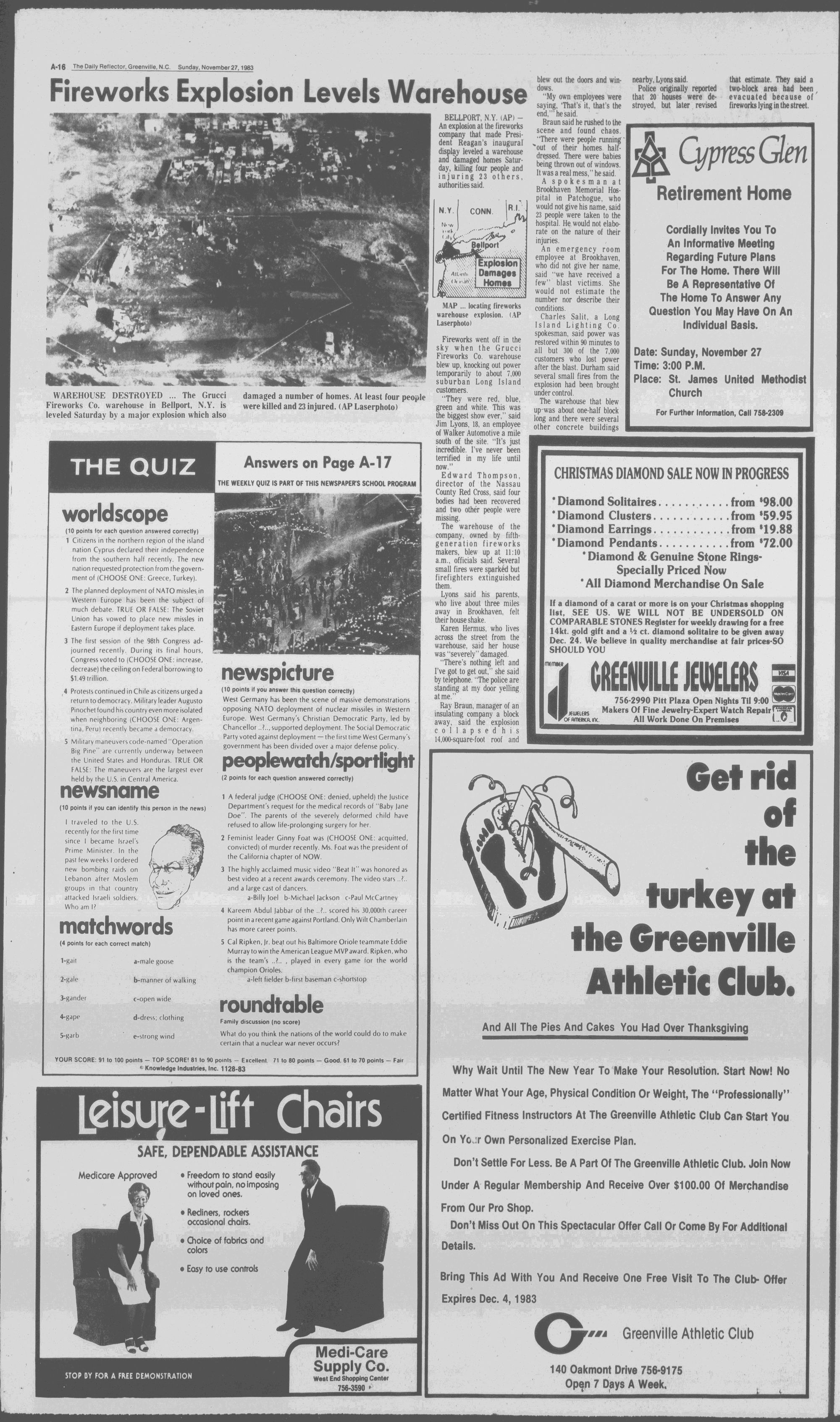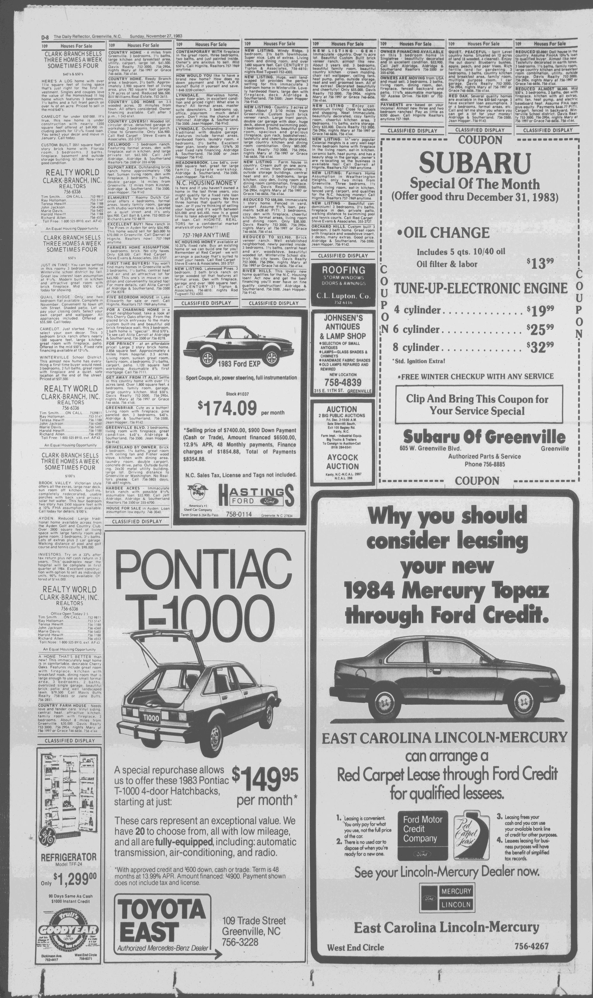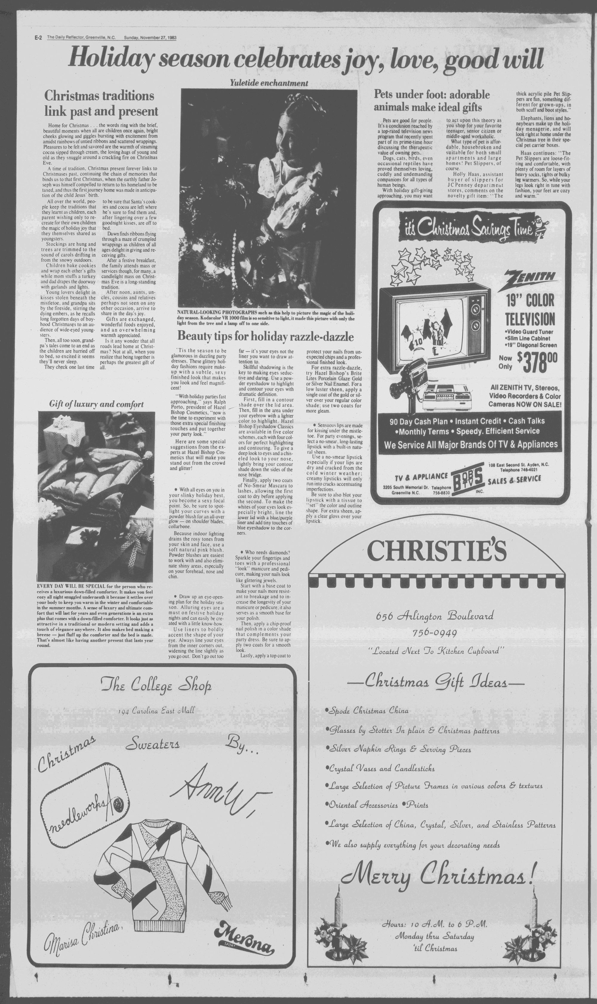 The newspaper was established in 1882, and was originally named the Eastern Reflector. It was founded by Julian Whichard and David Jordan with equipment they purchased from The Greenville Express. On December 10, 1894, it adopted the name The Reflector and began publishing every day. Cox Newspapers acquired The Daily Reflector in 1996. Creator: Daily Reflector (Greenville, N.C.)