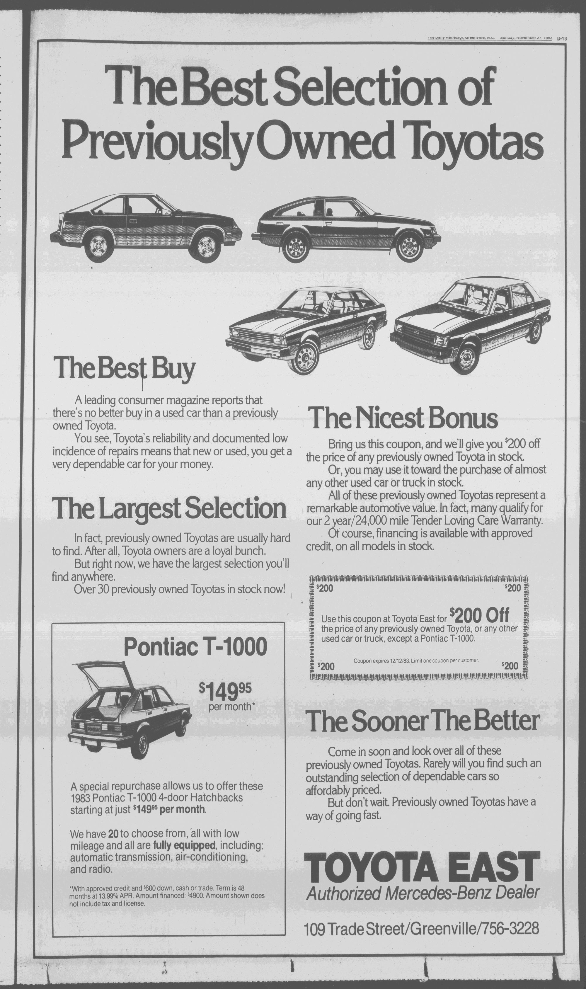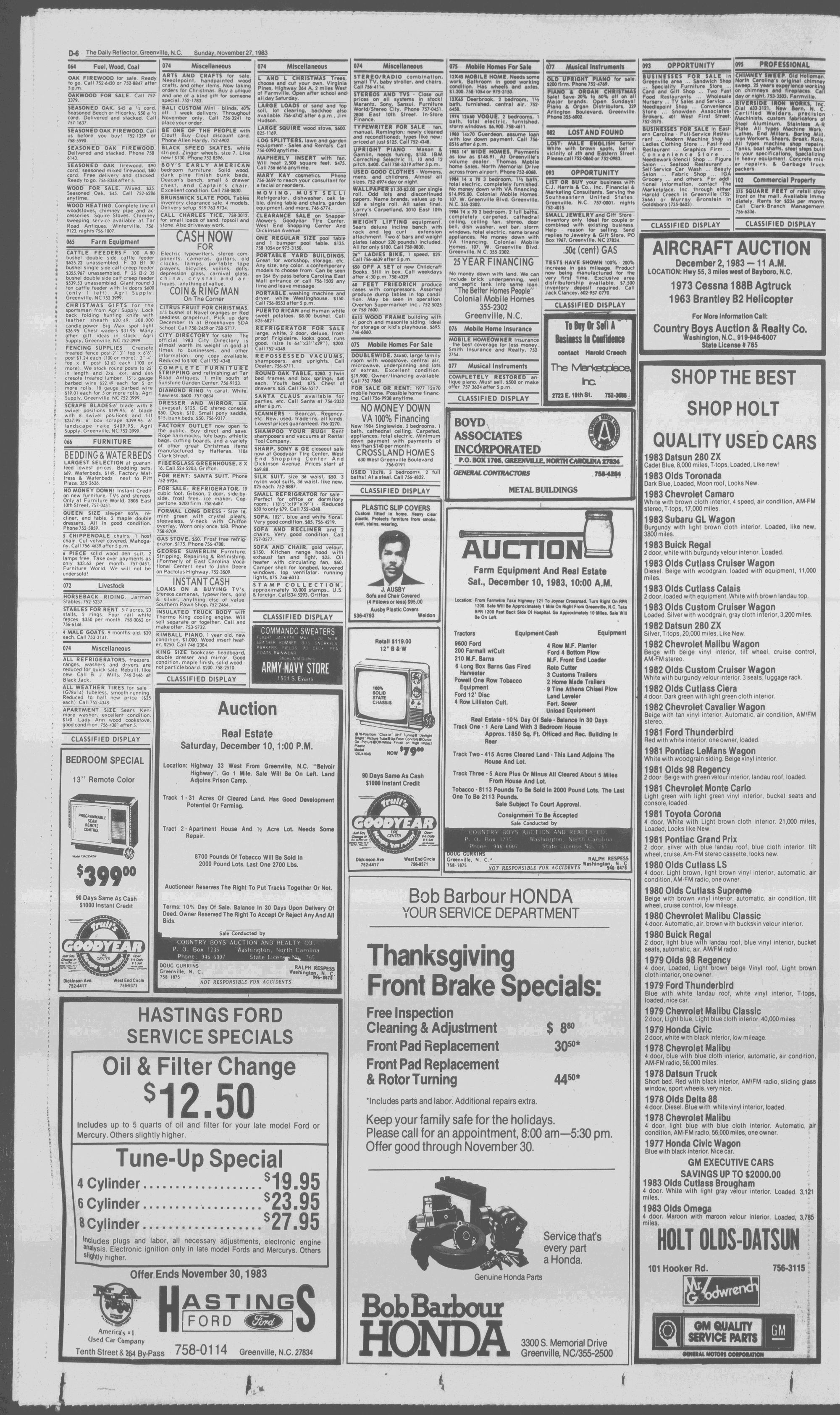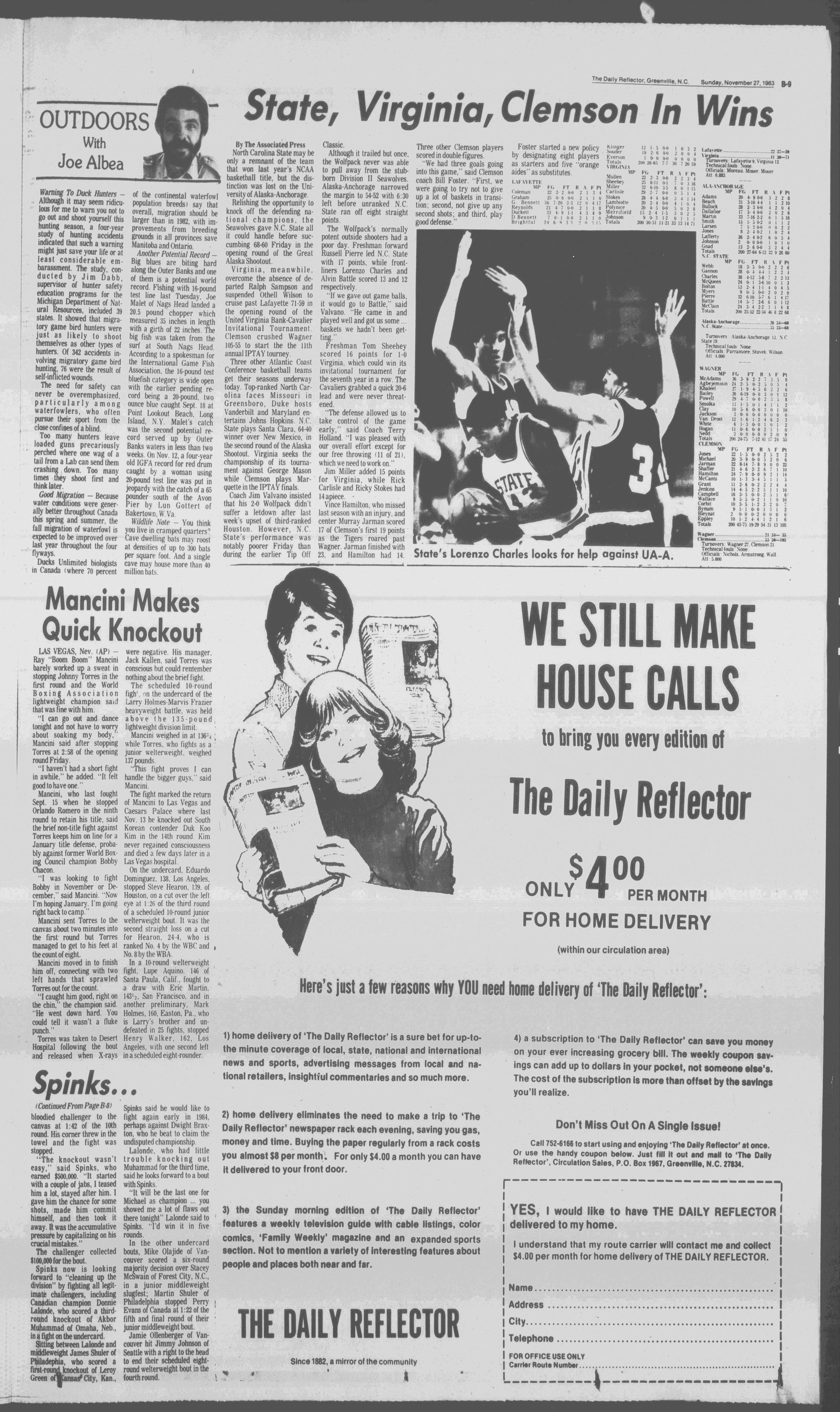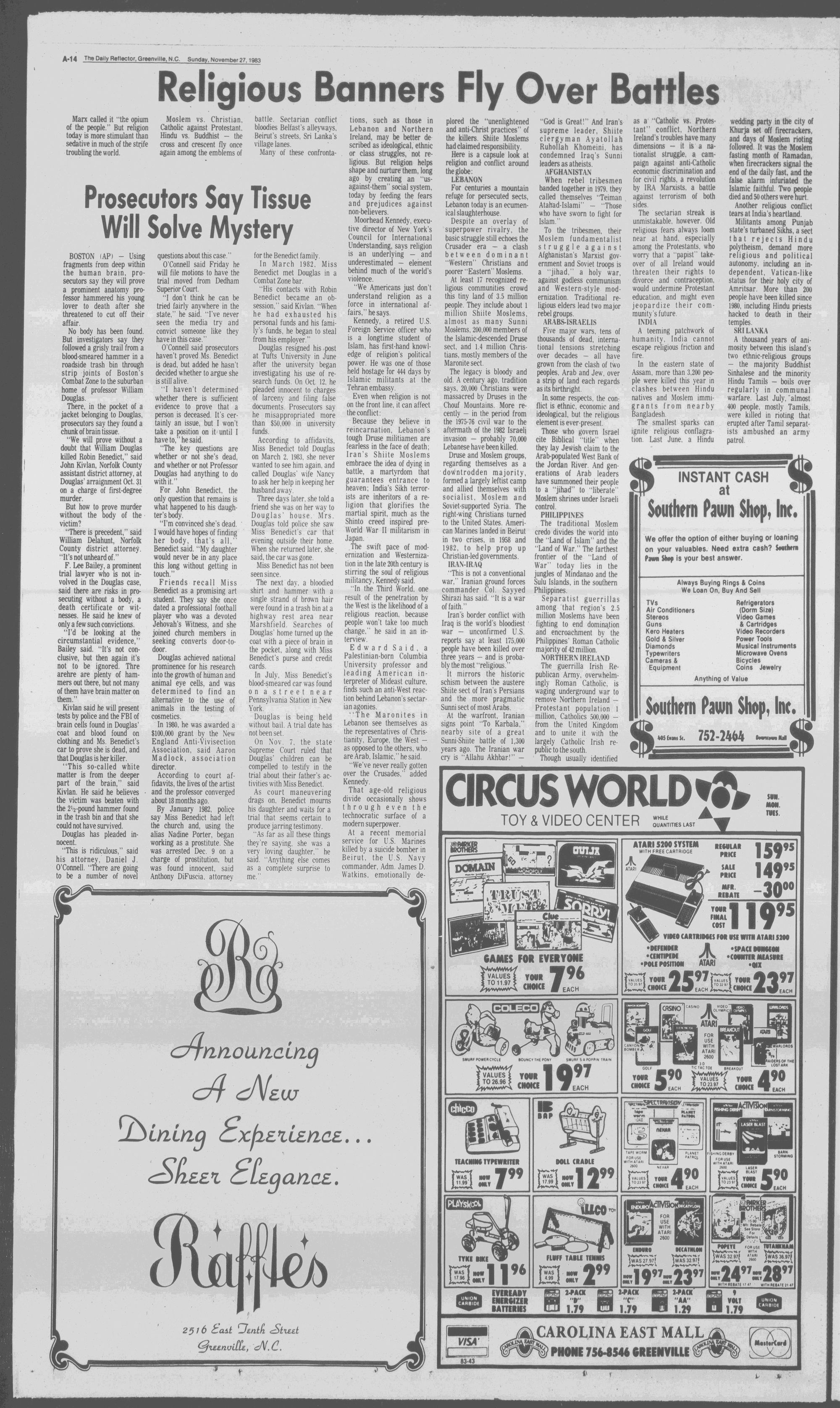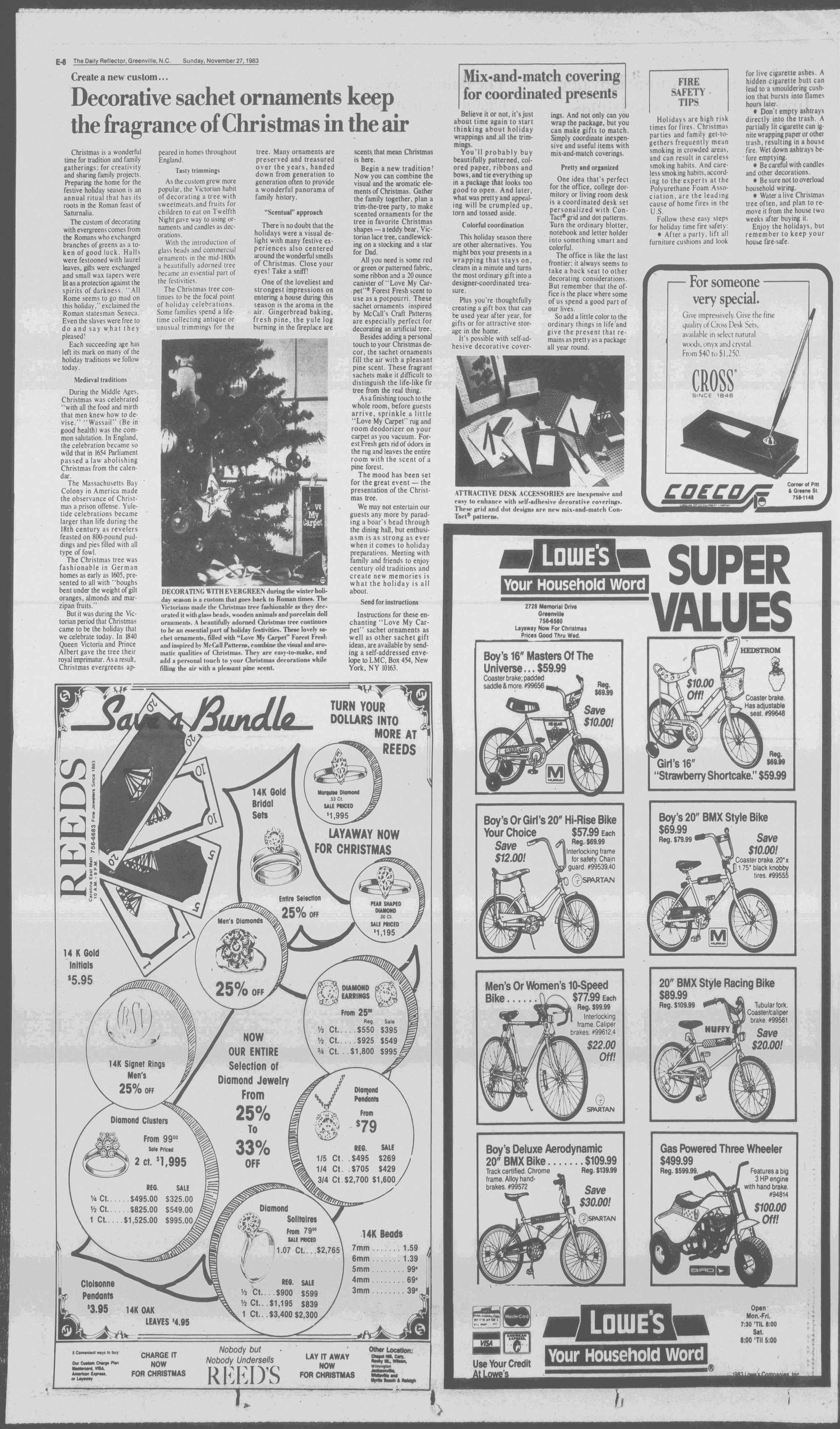 The newspaper was established in 1882, and was originally named the Eastern Reflector. It was founded by Julian Whichard and David Jordan with equipment they purchased from The Greenville Express. On December 10, 1894, it adopted the name The Reflector and began publishing every day. Cox Newspapers acquired The Daily Reflector in 1996. Creator: Daily Reflector (Greenville, N.C.)