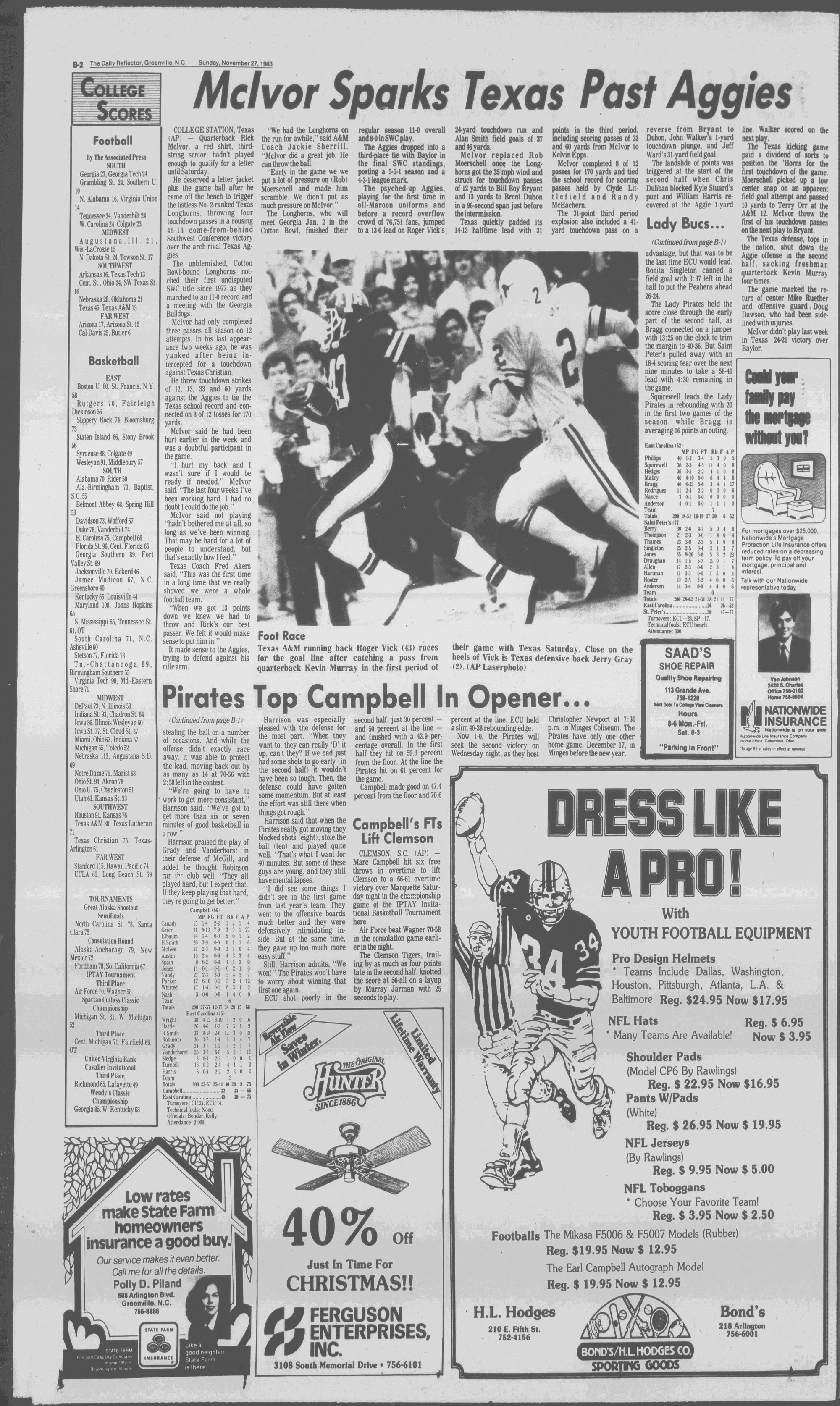 East Carolina cruised to a 75*66 victory over Campbell University, in the 1983*84 opener for Both schools. (Page B-1)
