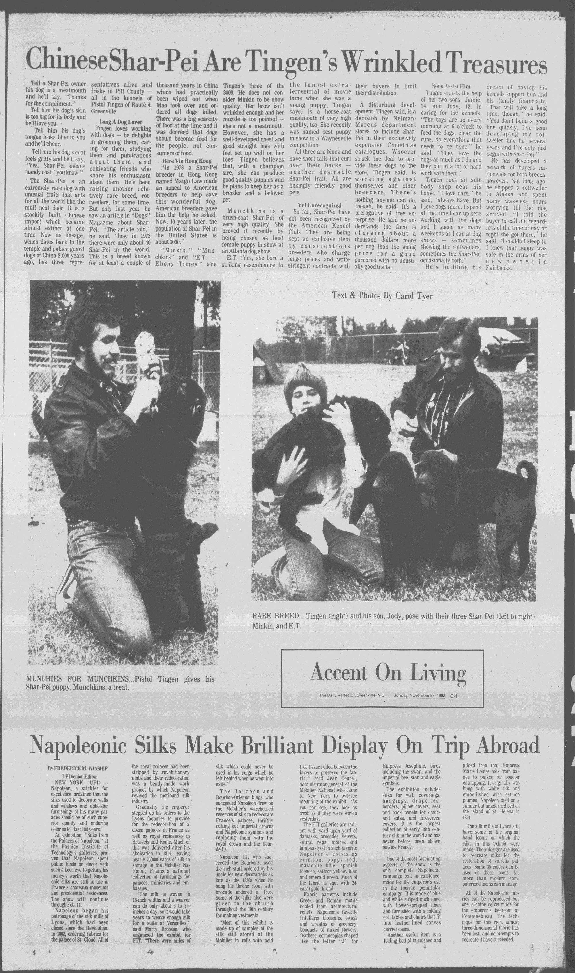 Wrinkled Chinese dogs are treasured by local owner. Carol Tyer has story and pictures. Page C-1.ECU WINS OPENER