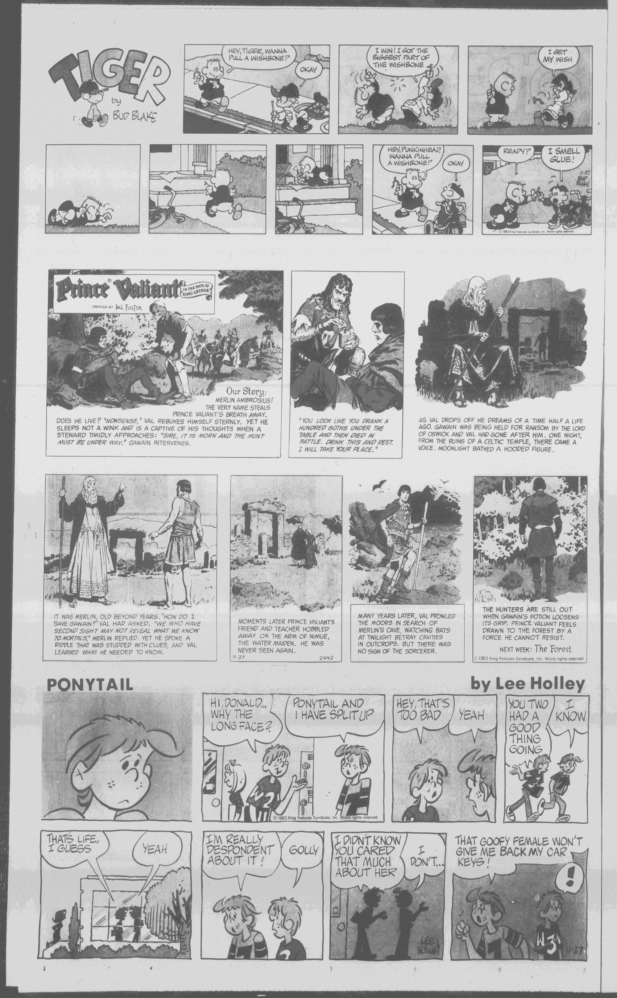 MERLIN AMBROSIUS/ THE VERY NAME STEALS PRINCE VALIANT'S BREATH AWAY. POES HE LIVEf WOVSfA/S^/ VAL REBUKES HIMSELF STERNLY. YET HE SLEEPS NOT A IVINK ANP 15 A CAPTIVE OF HIS THOUSHTS WHEN A STEWARP TIMIPLY APPROACHES: "5/R, IT tS MORN AN!? THE HUNT MUST ffE UNPER MAY." SAWAIN INTERVENES.