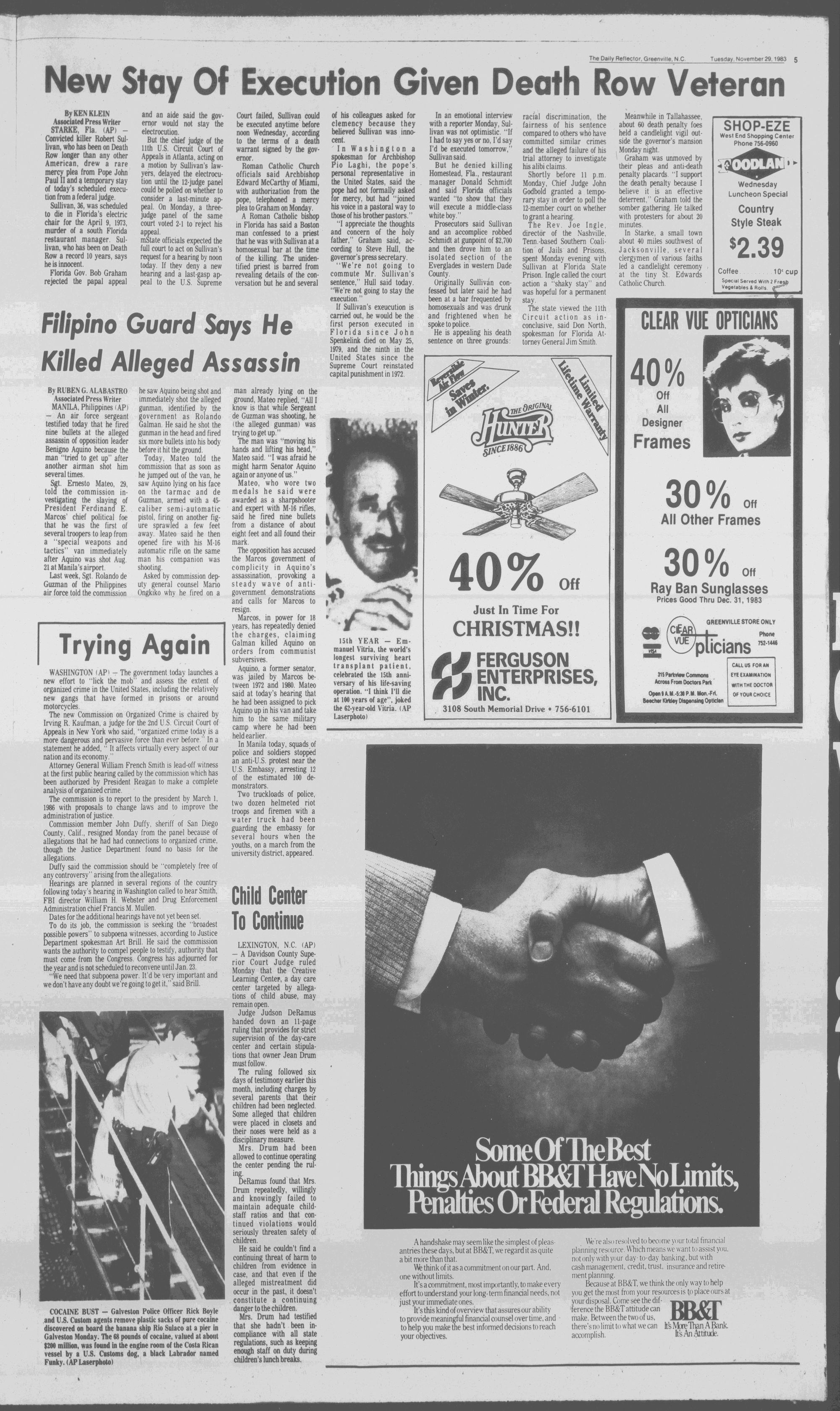 Another temporary stay of execution for convicted Fiorida kiiler Robert Suiiivan, who has been on Death Row ionger than any other American in history. (Page 5)