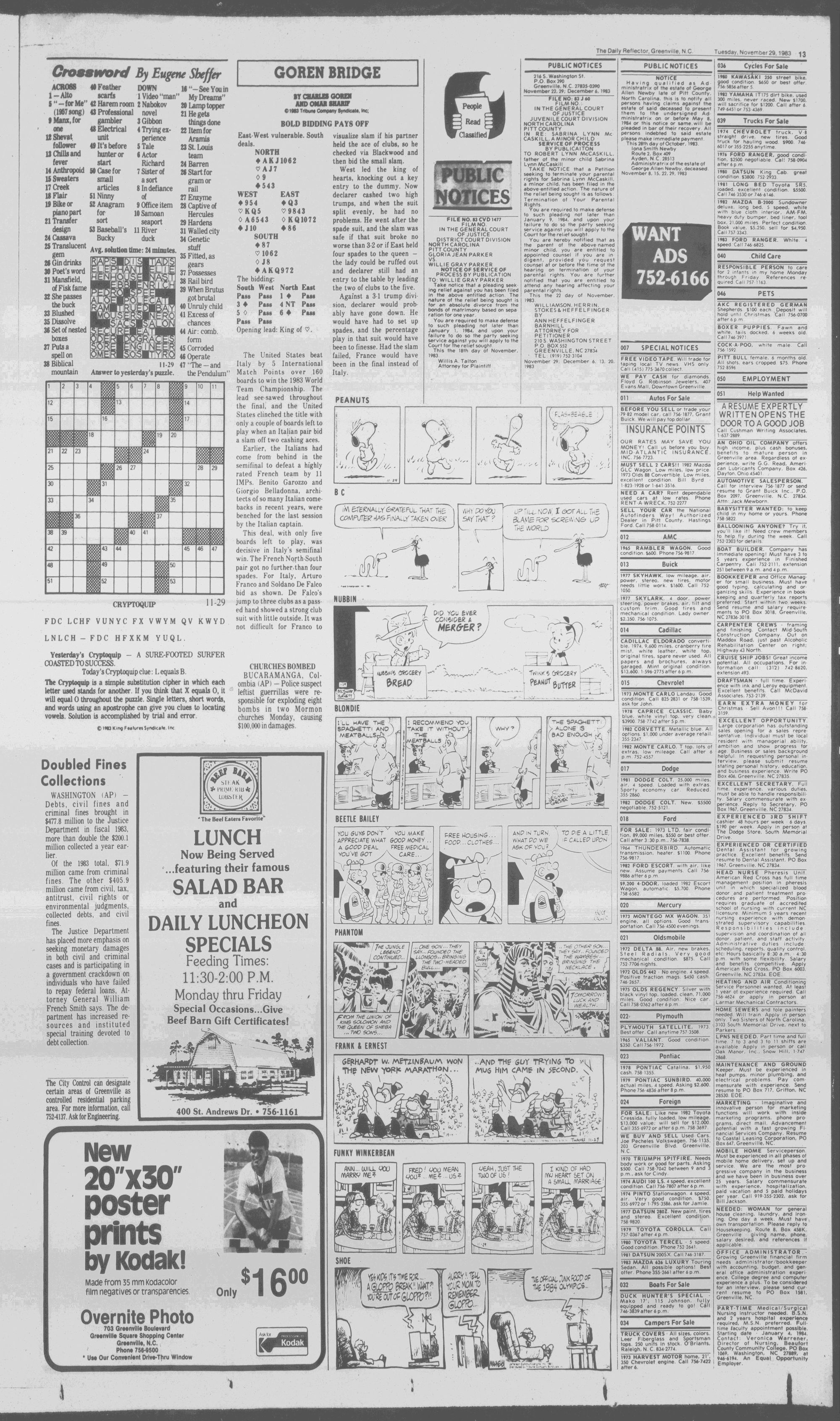 GREENVILLE, N.C. TUESDAY AFTERNOON, NOVEMBER 29, 1983
