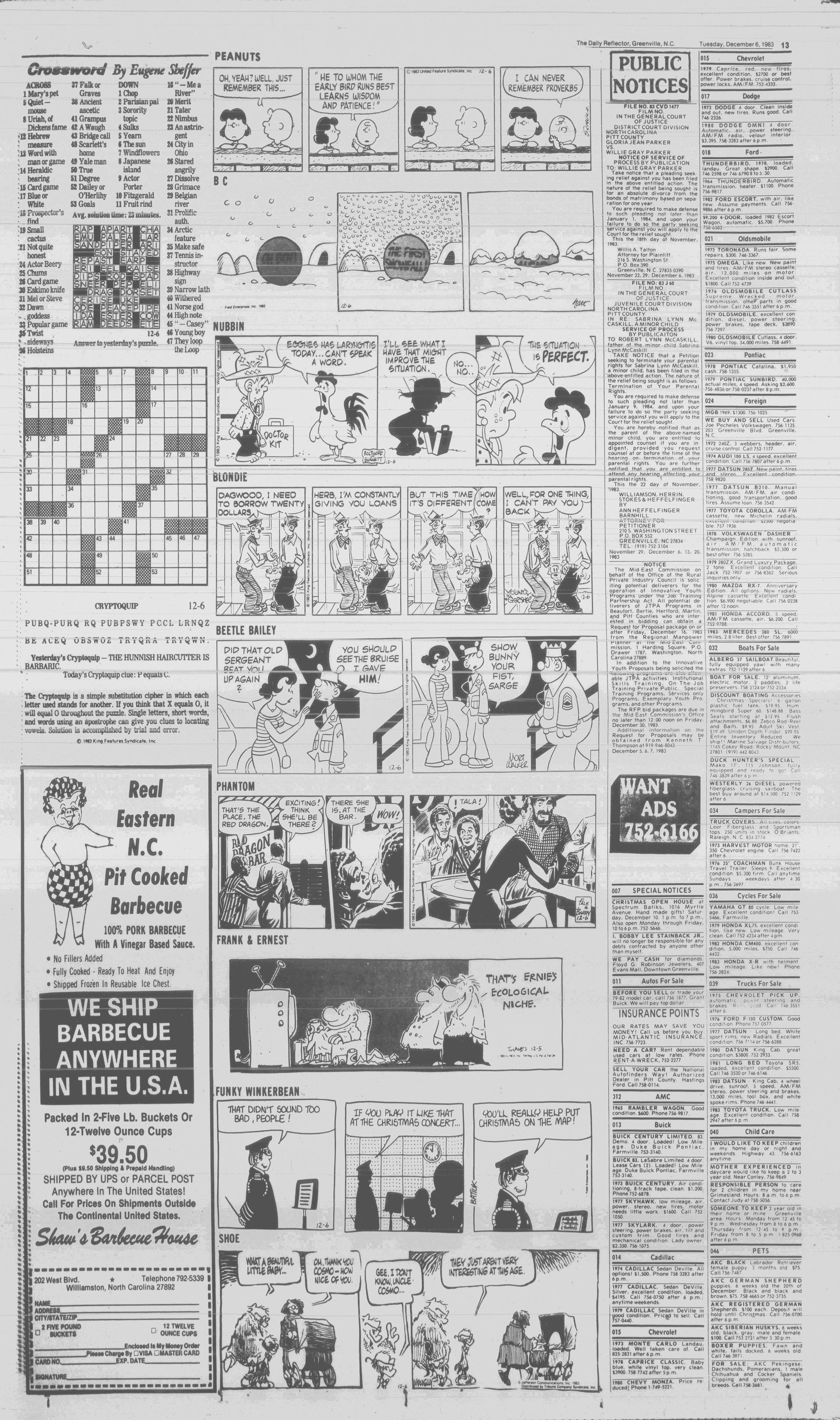 GREENVILLE, N.C. TUESDAY AFTERNOON, DECEMBER 6, 1983