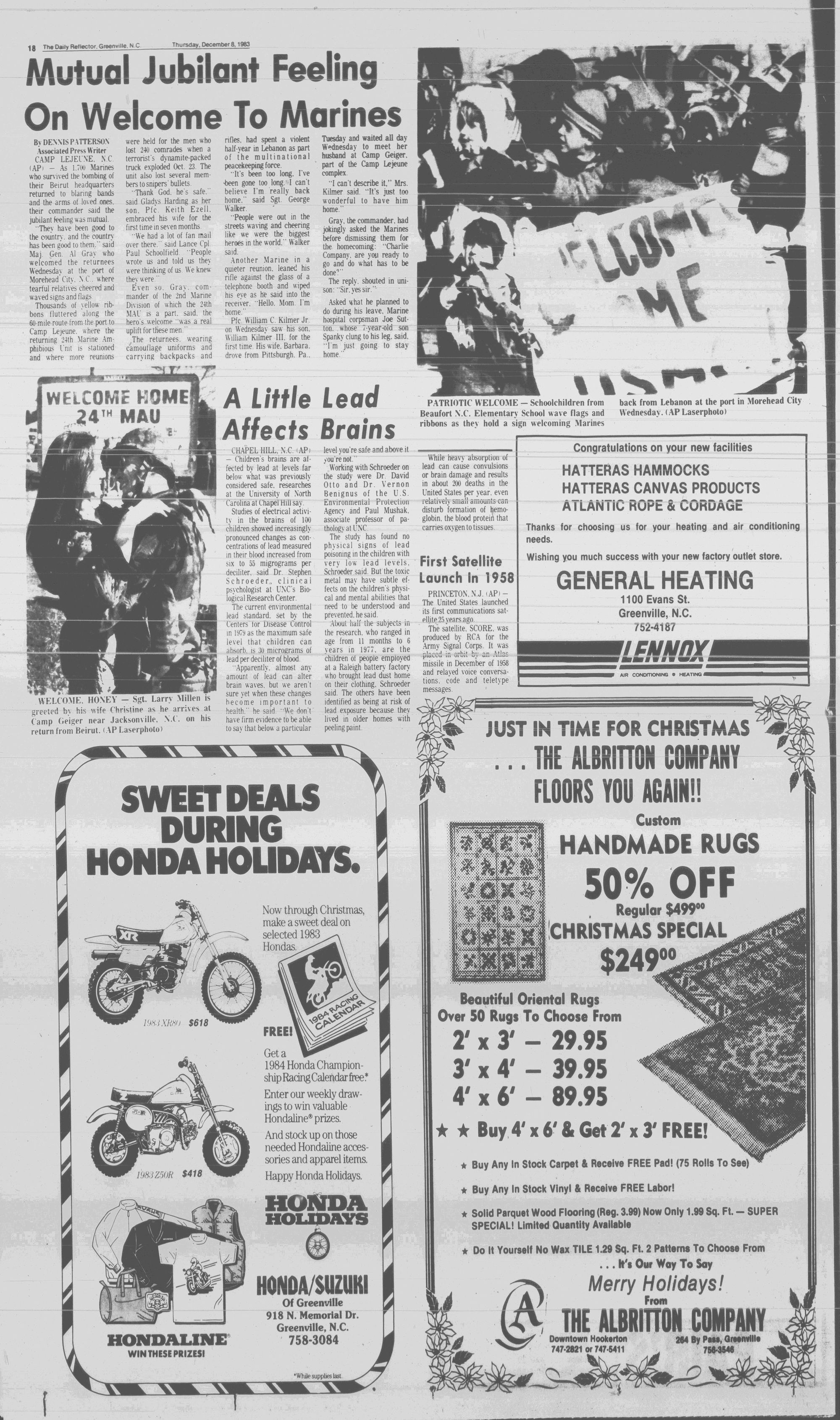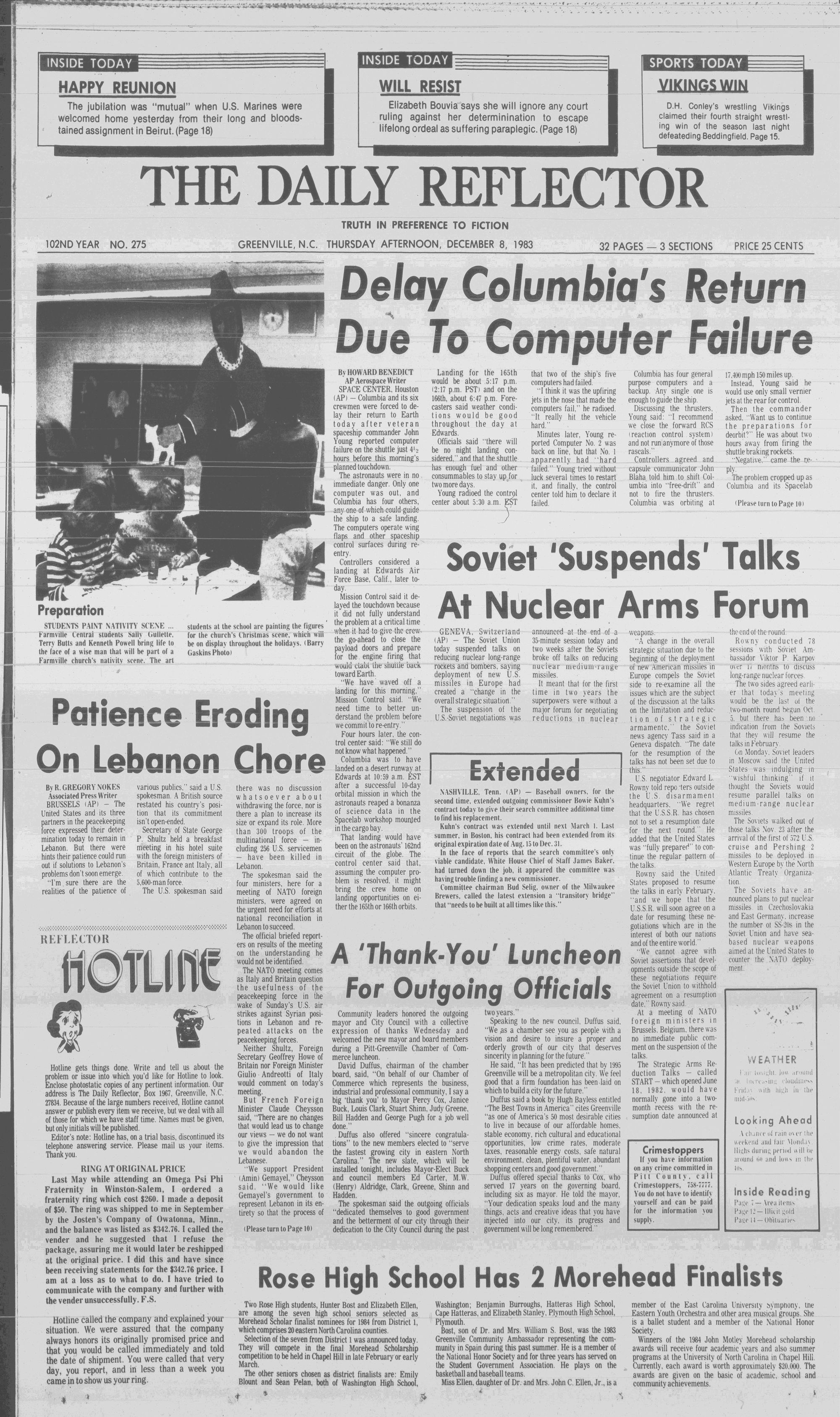 INSIDE TODAYHAPPY REUNIONThe jubilation was mutuai when U.S. Marines were weicomed home yesterday from their long and bloodstained assignment in Beirut. (Page 18)WILL RESISTElizabeth Bouvia says she will ignore any court ruling against her determinination to escape lifelong ordeal as suffering paraplegic. (Page 18)