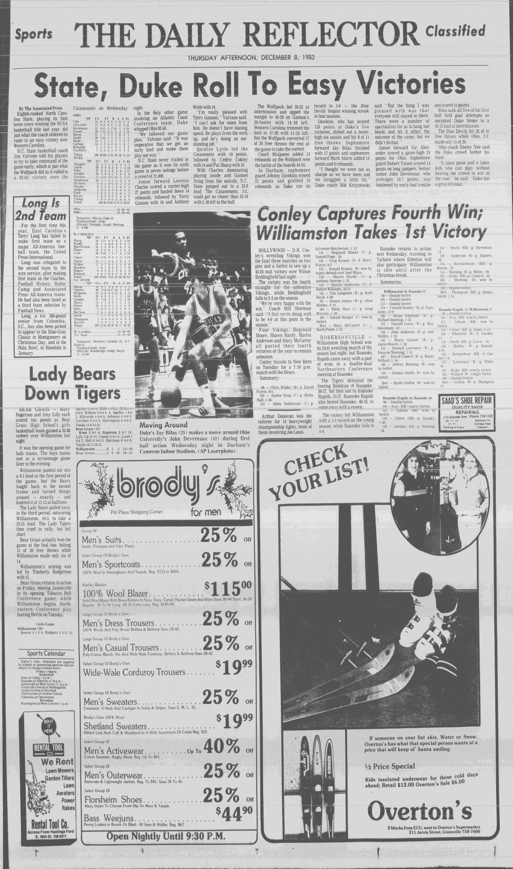 D.H. Conleys wrestling Vikings claimed their fourth straight wrestling win of the season last night defeateding Beddingfield. Page 15.THE DAILY REFLECTOR