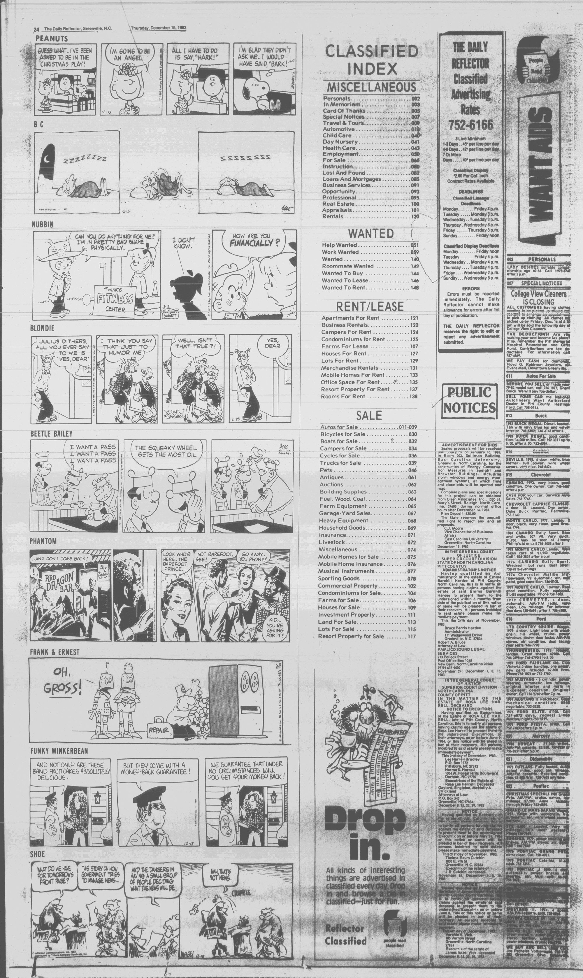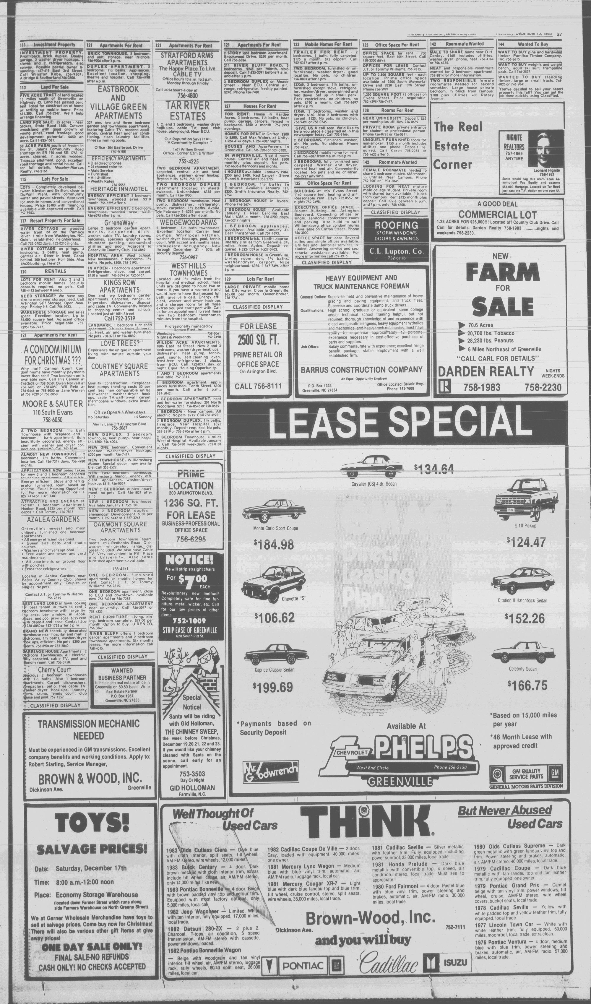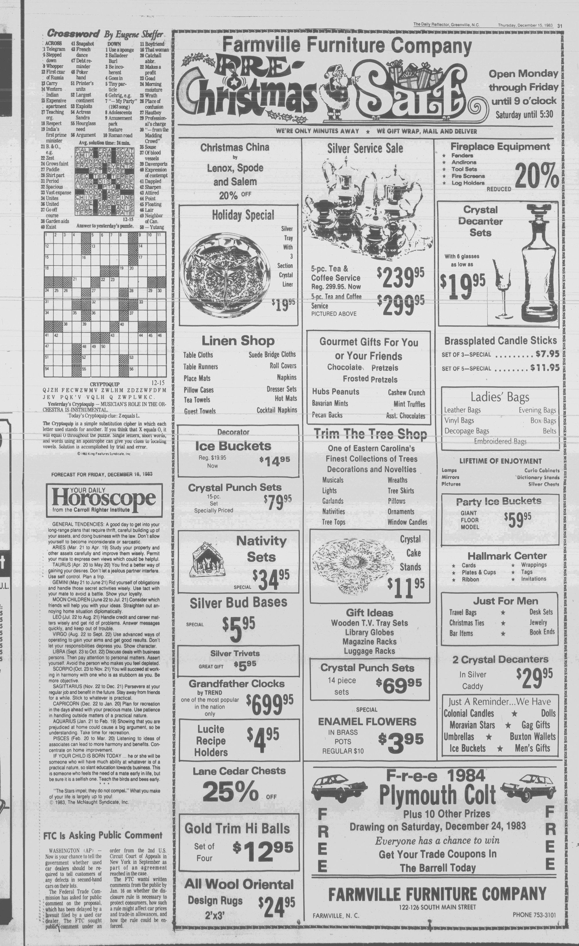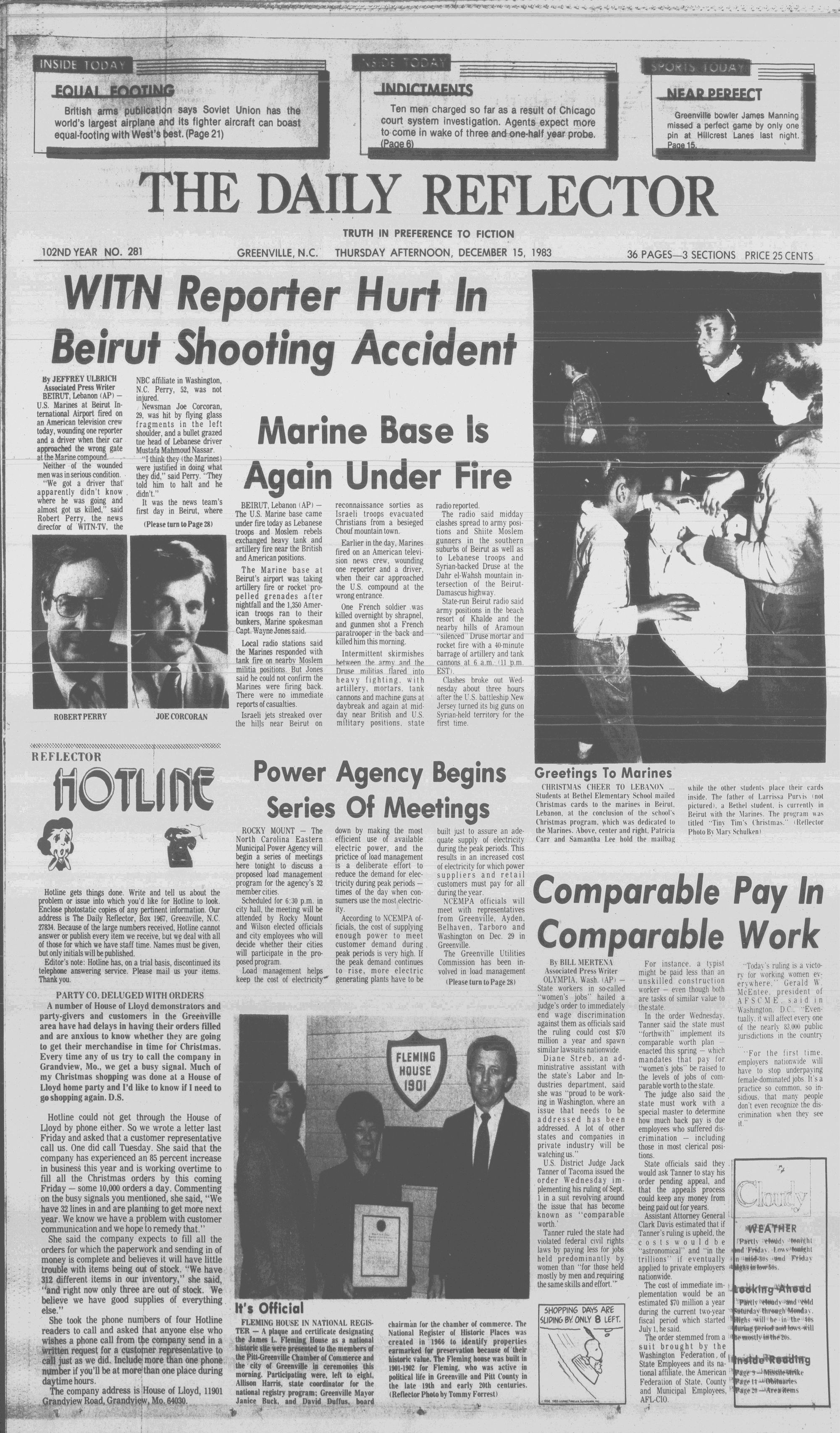 102NDYEAR NO. 281TRUTH IN PREFERENCE TO FICTIONGREENVILLE, N.C. THURSDAY AFTERNOON, DECEMBER 15, 1983