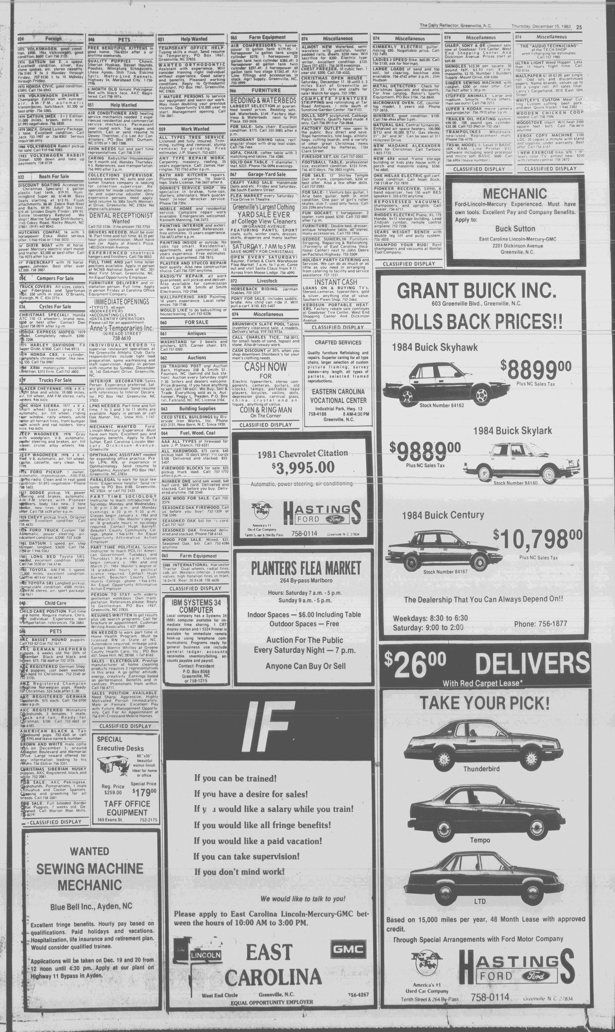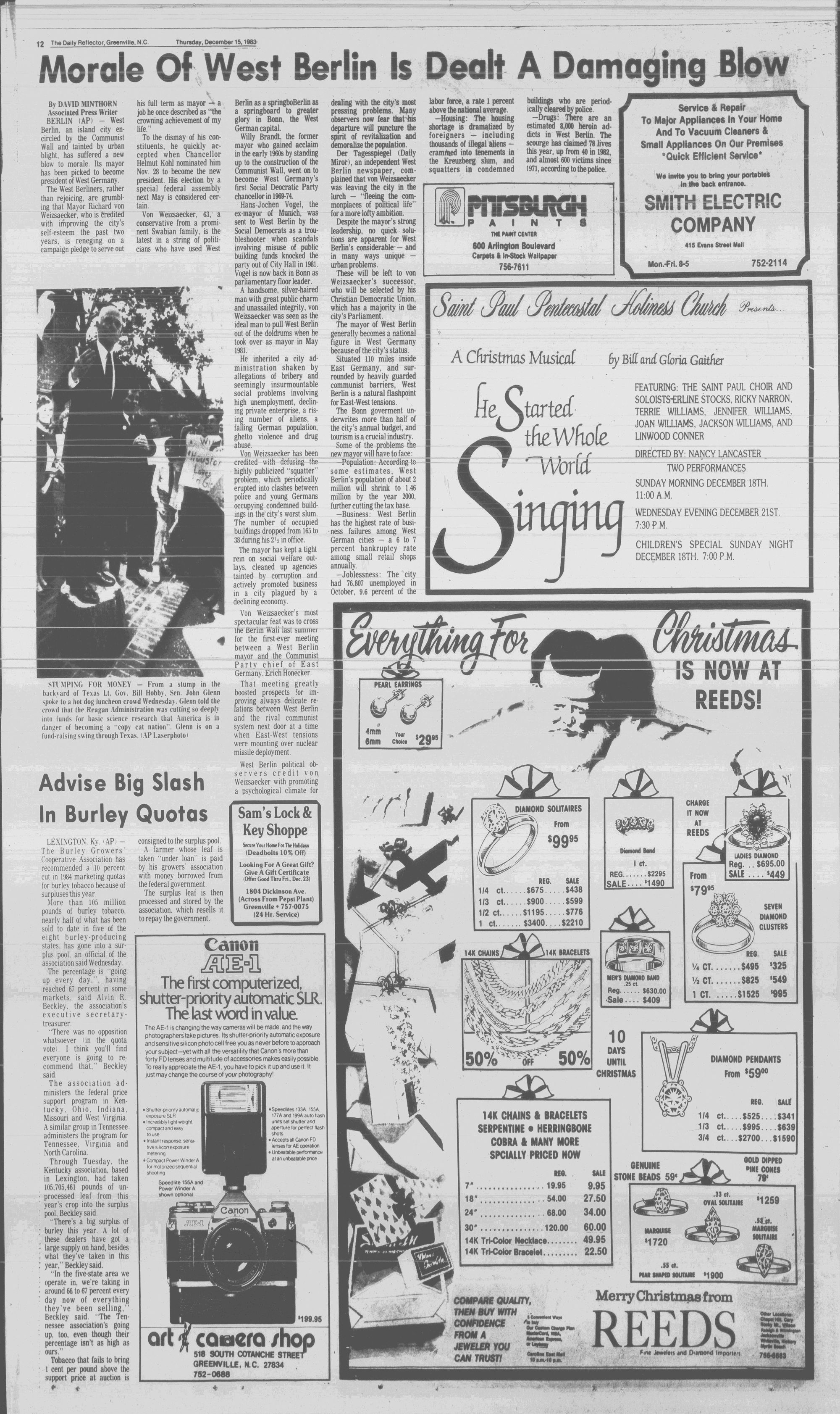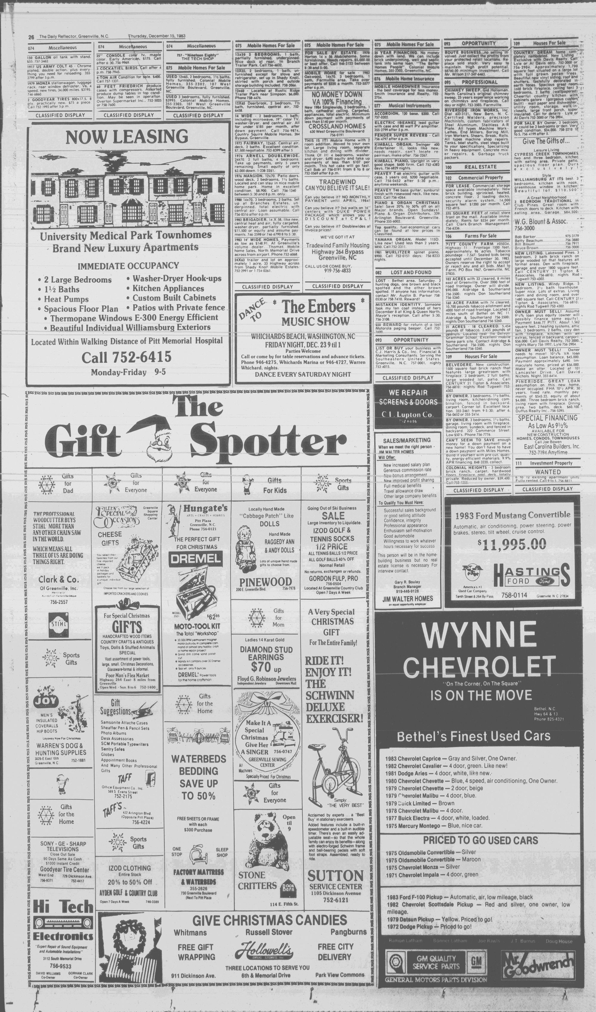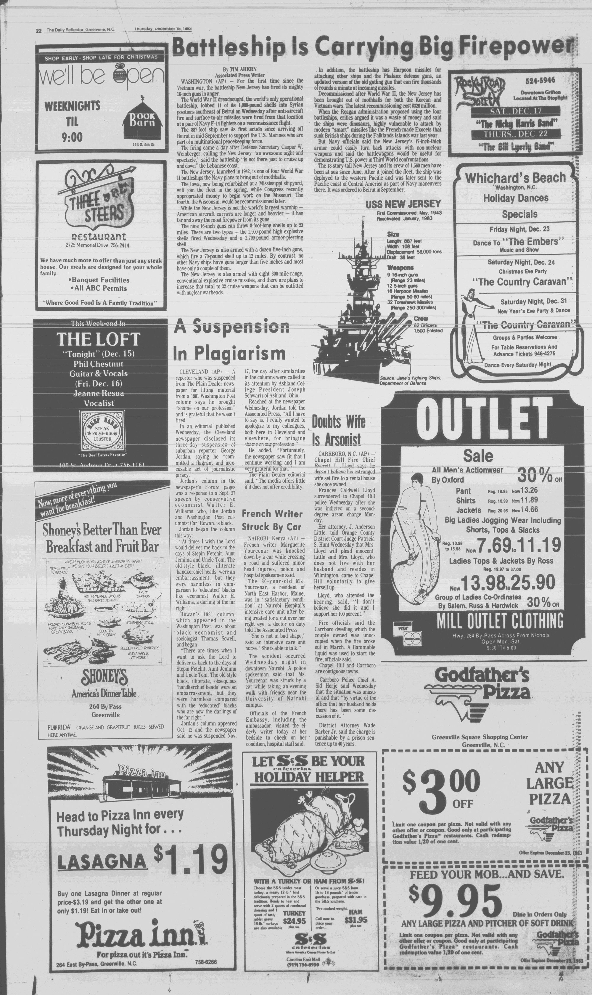 102NDYEAR NO. 281TRUTH IN PREFERENCE TO FICTIONGREENVILLE, N.C. THURSDAY AFTERNOON, DECEMBER 15, 1983