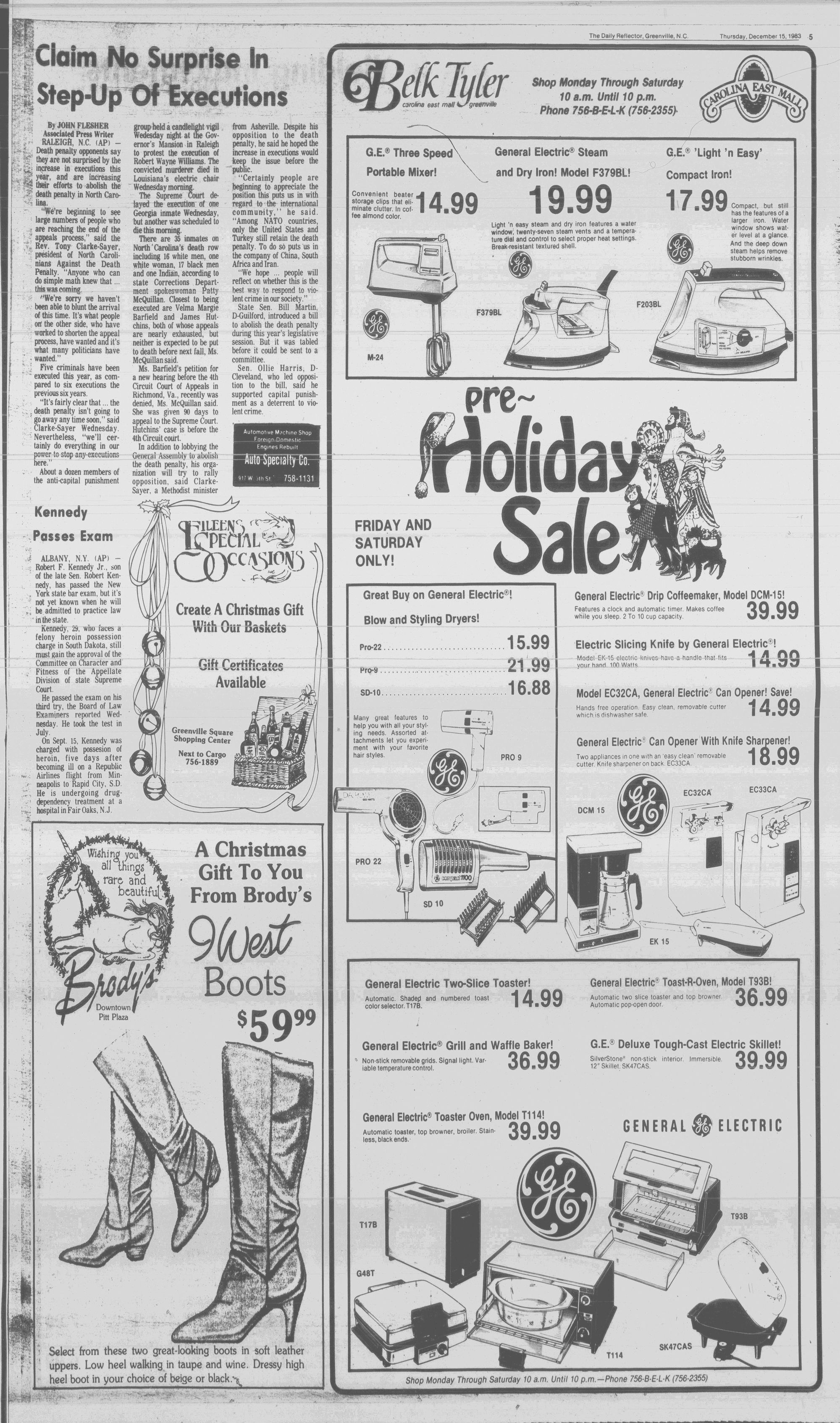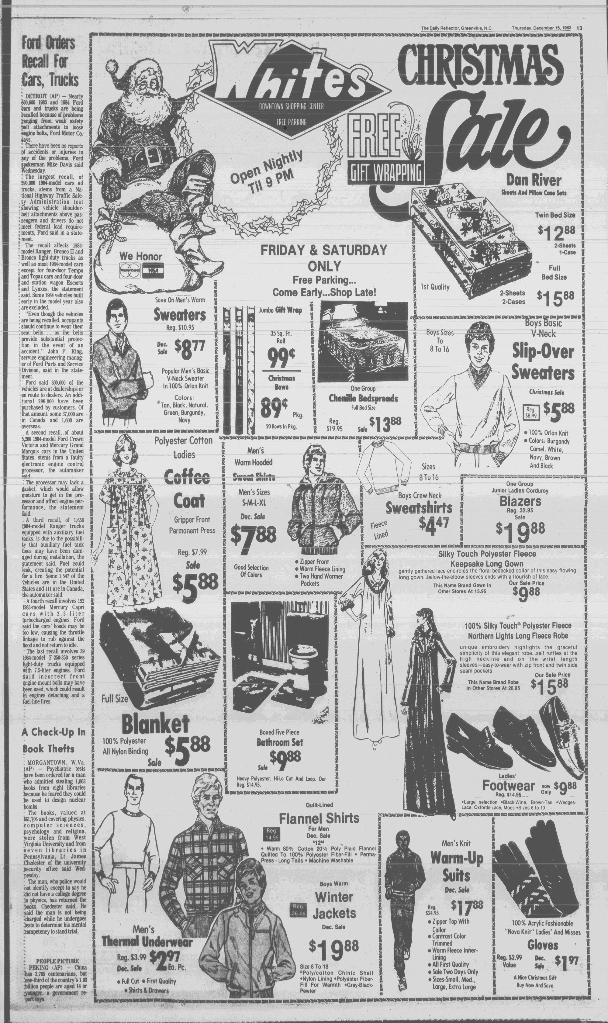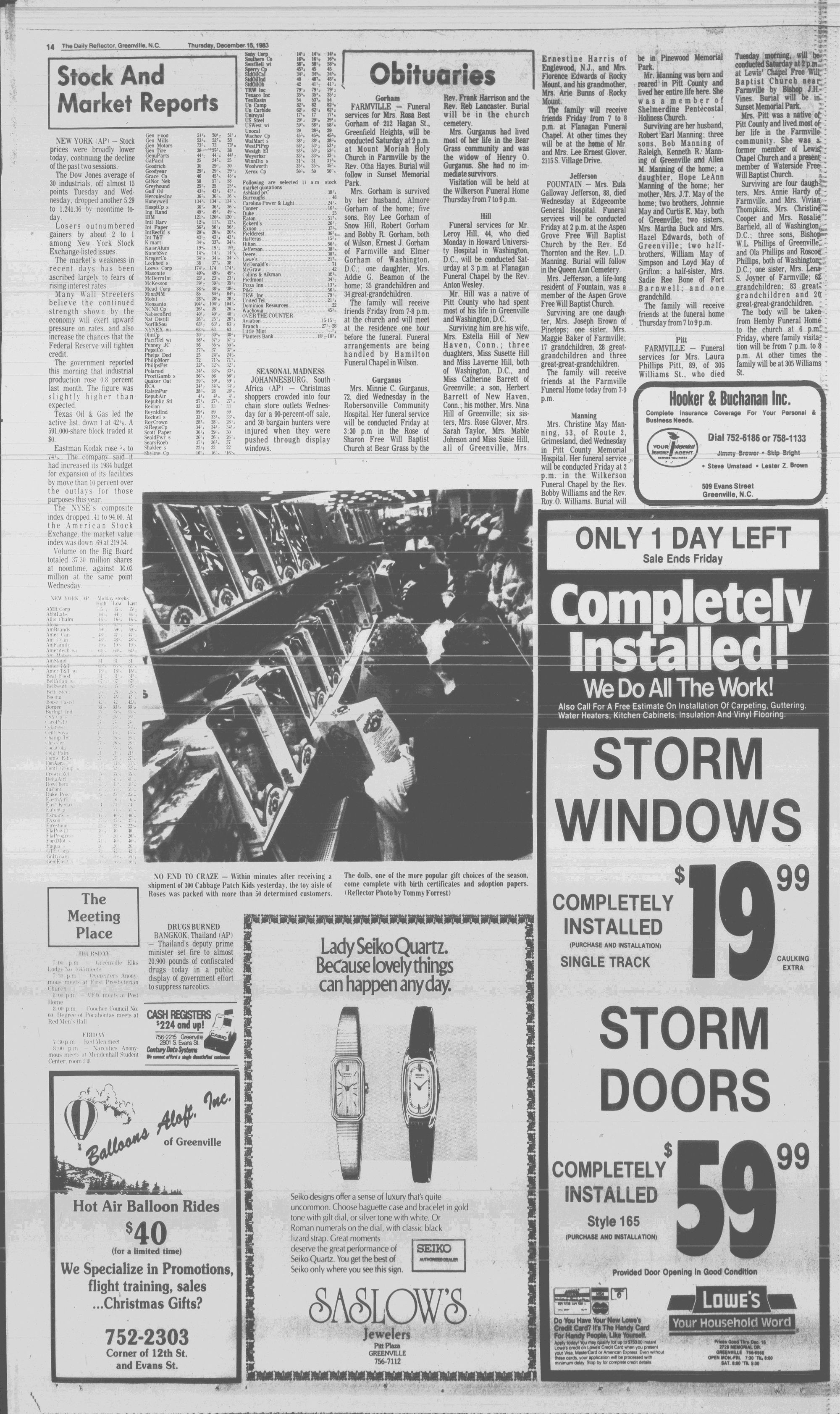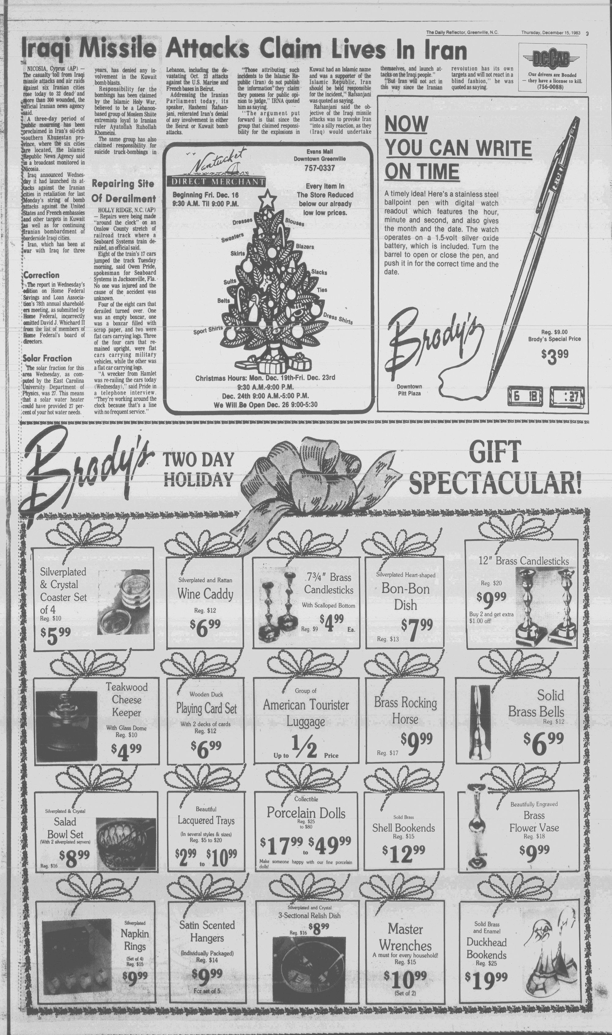 102NDYEAR NO. 281TRUTH IN PREFERENCE TO FICTIONGREENVILLE, N.C. THURSDAY AFTERNOON, DECEMBER 15, 1983
