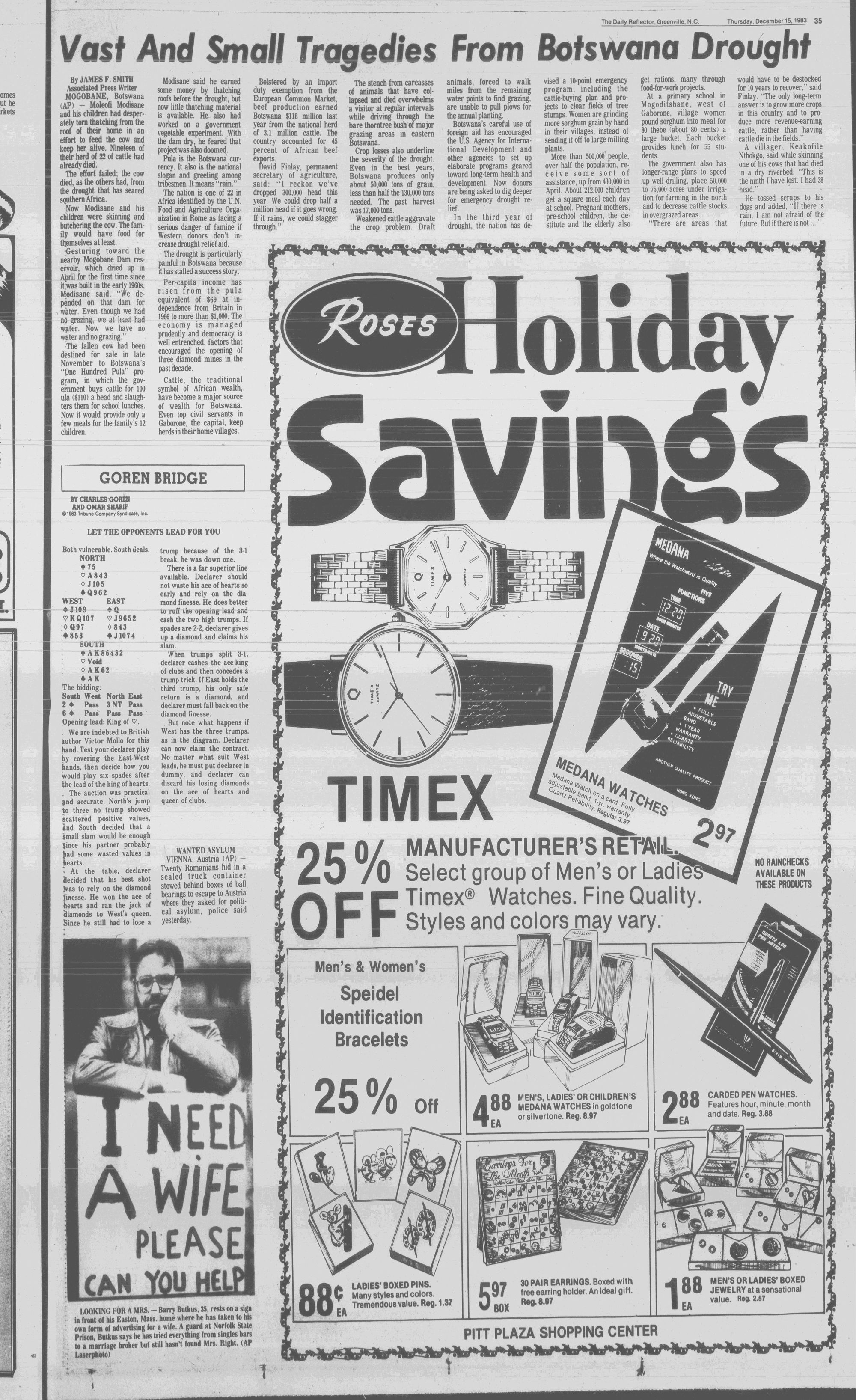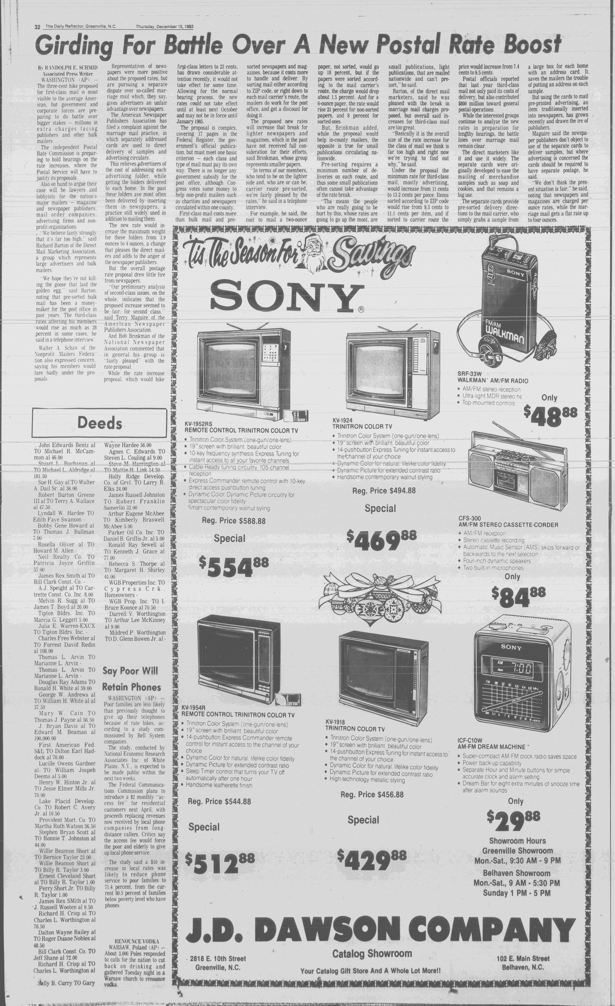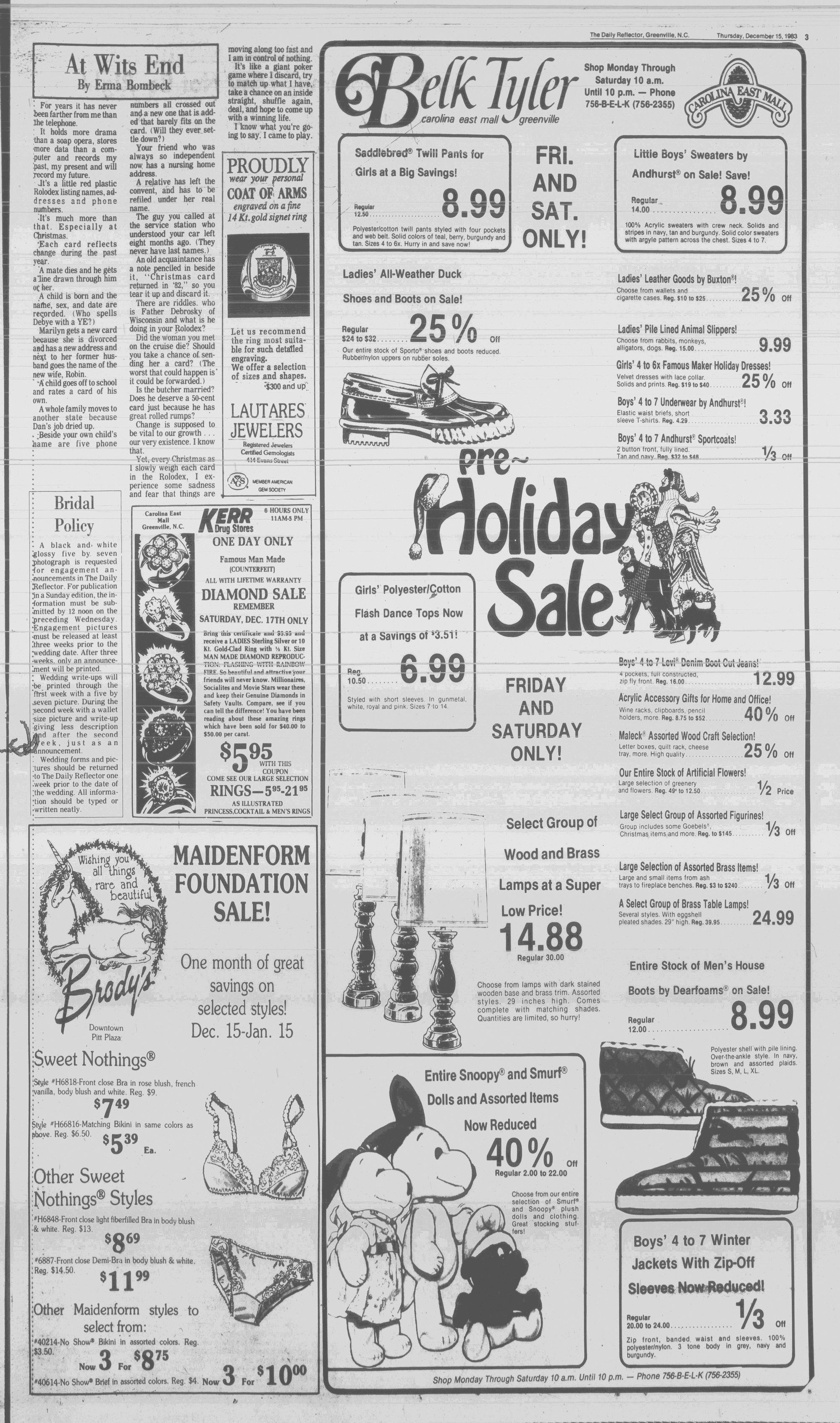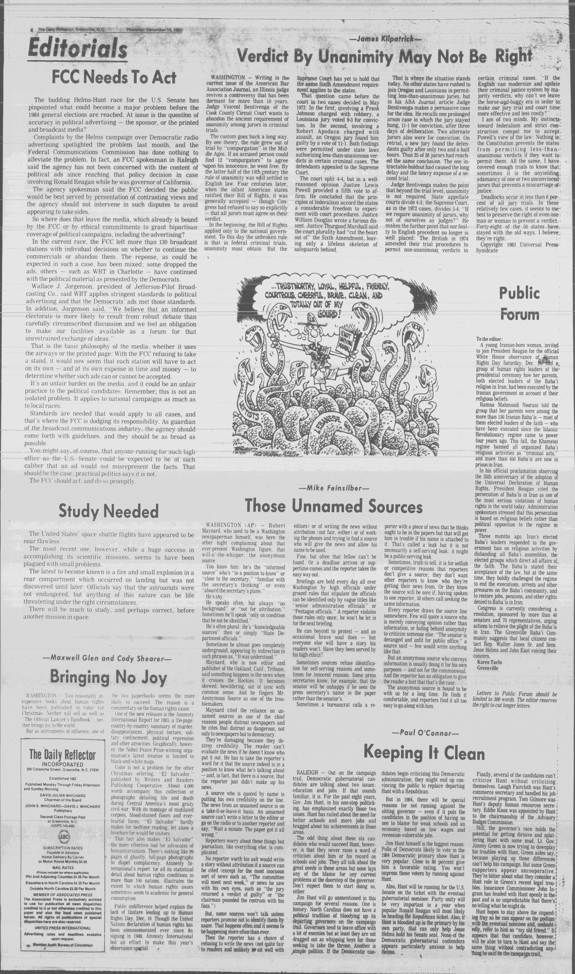 102NDYEAR NO. 281TRUTH IN PREFERENCE TO FICTIONGREENVILLE, N.C. THURSDAY AFTERNOON, DECEMBER 15, 1983