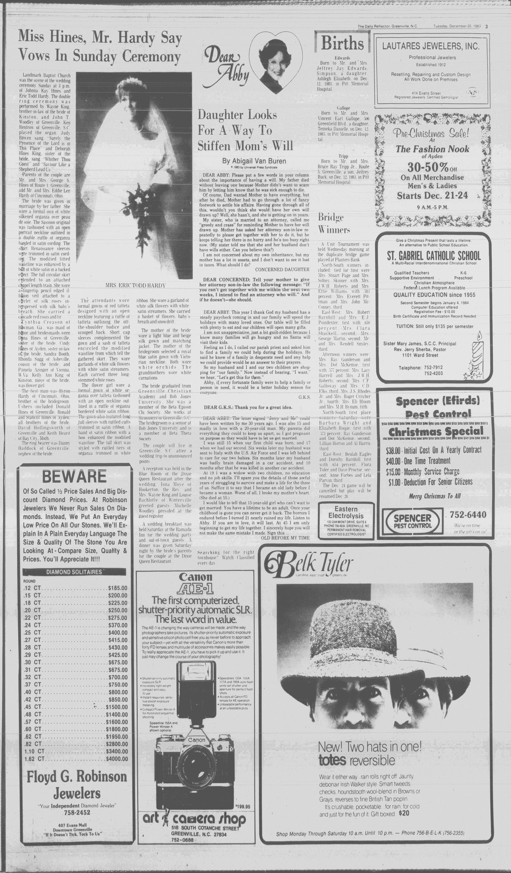 address is The Daily Reflector, Box 1967, Greenville, N.C. 27834. Because of the large numters received. Hotline cannot answer or publish every item we receive, but we deal with all of those for which we have staff time. Names must be given, but only initials will be published.