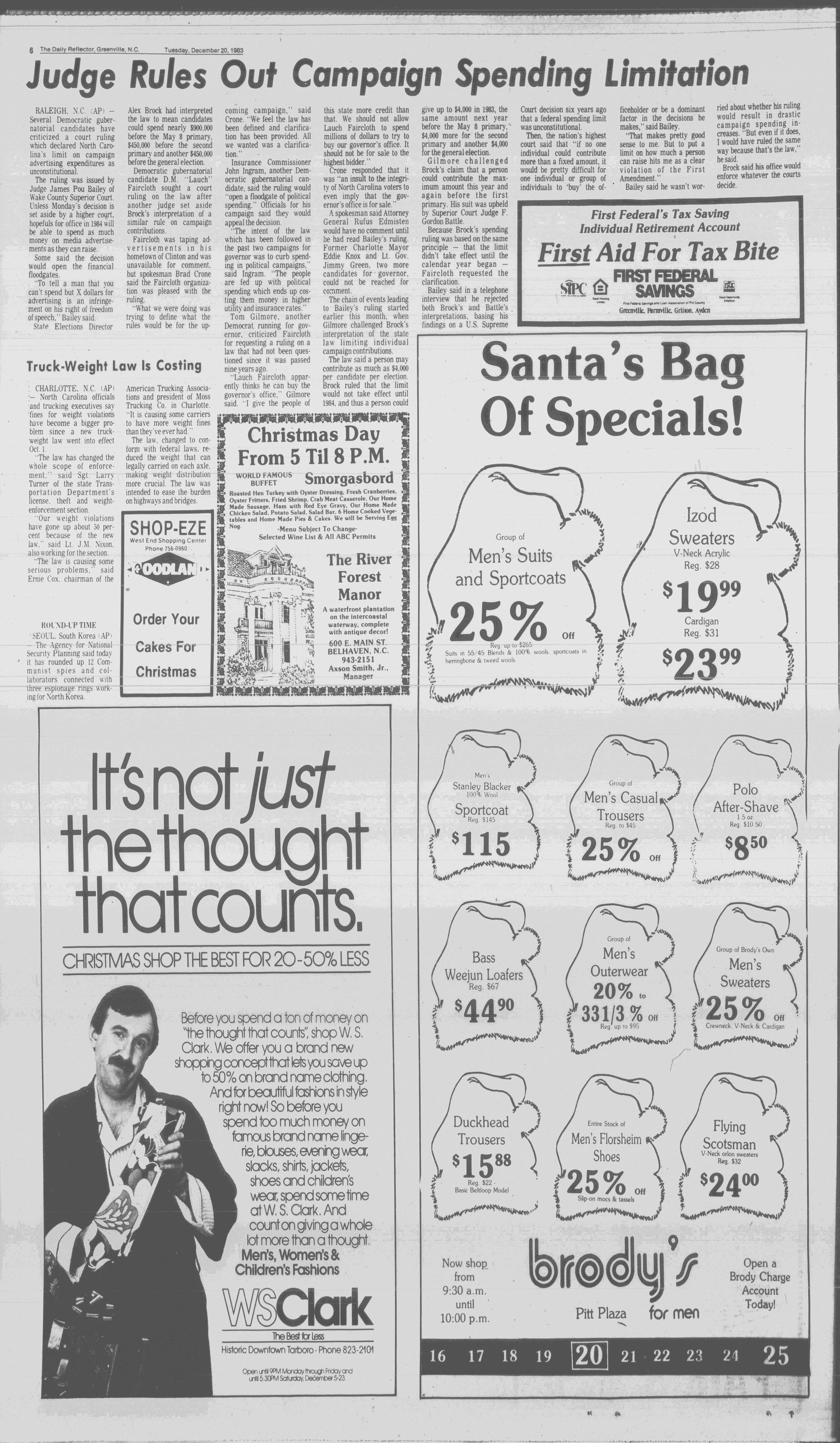 Judge rules North Carolina limit on campaign advertising expenditures as unconstitutional. Some say decision will open the floodgates. (Page 6)