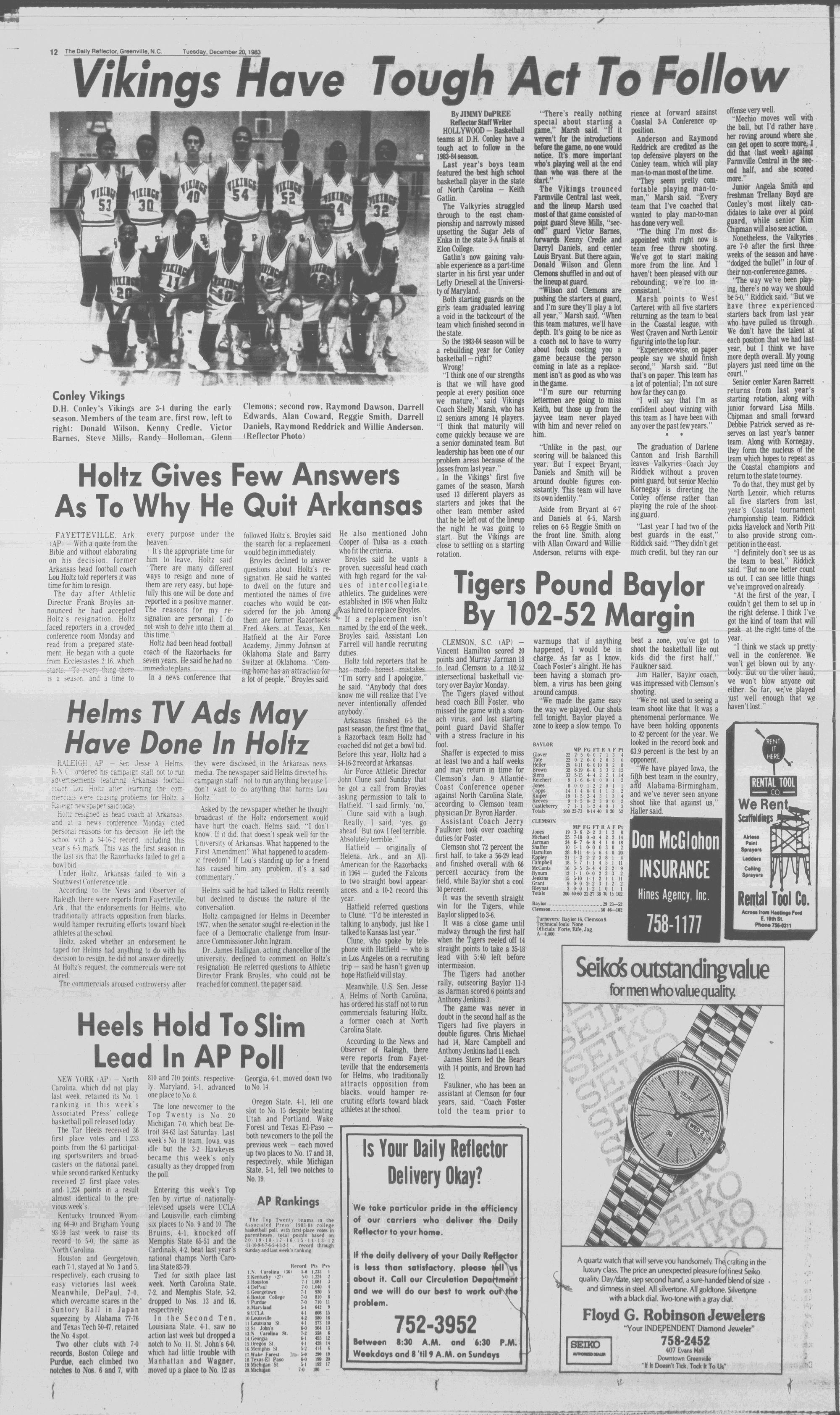 Ex-Arkansas coach Lou Holtz was mum as to why he quit, but some say it was due to his endorsements of Jesse Helms. Page 12.THE DAILY REFLECTOR